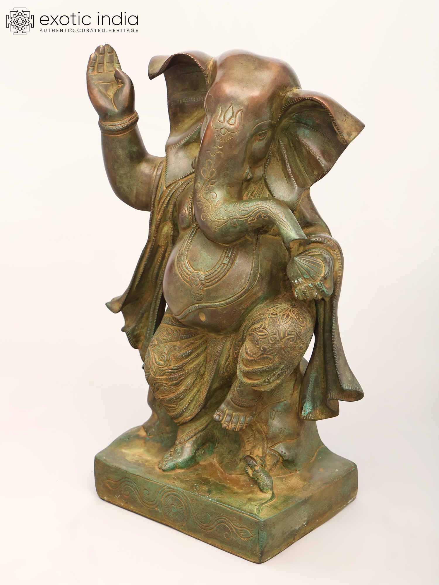 Thus Ganesha is also known as the remover of obstacles who helps his believers pave their way through to their desired destination. Ganesha in this superfine sculpture can be seen dancing and swaying in joy, exuding sensuous grace and honor.