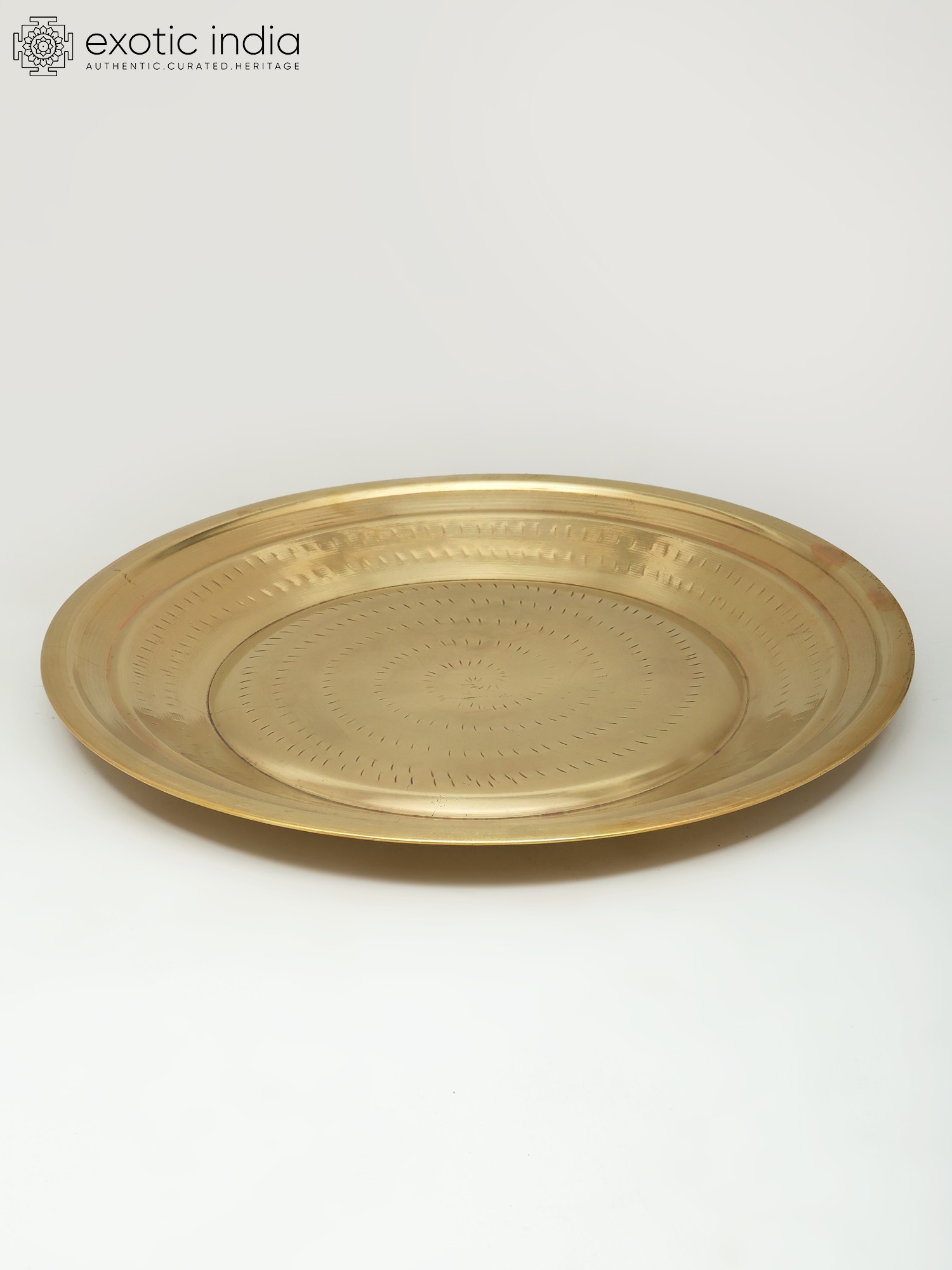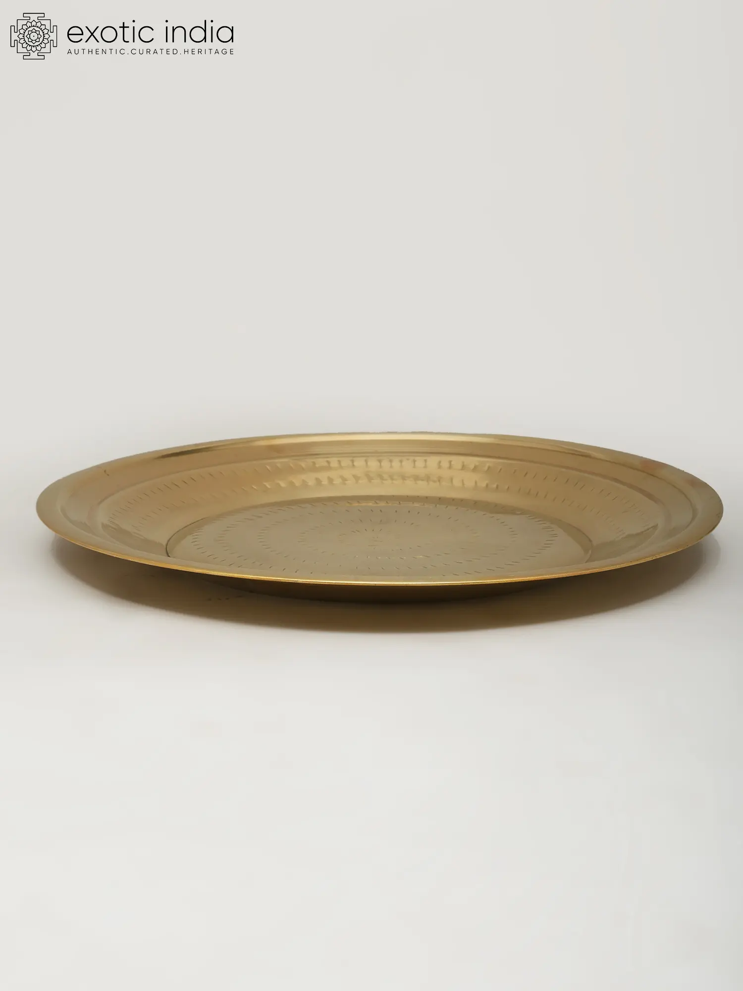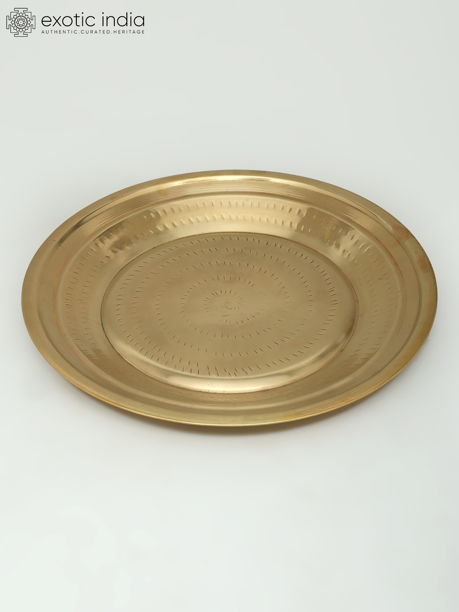 Brass Puja Thali with Haldi and Kumkum Bowl, Incense Stand and Diya