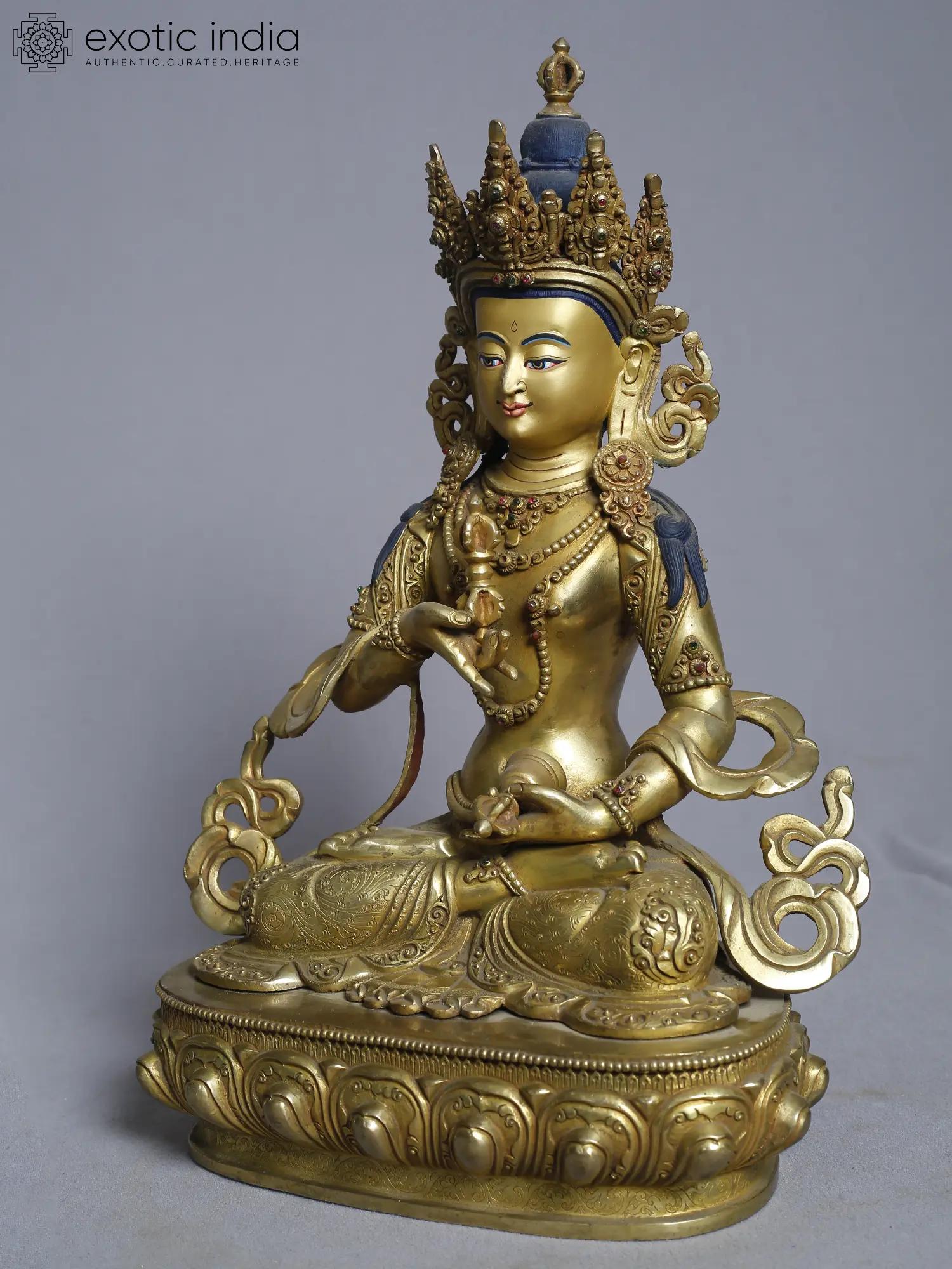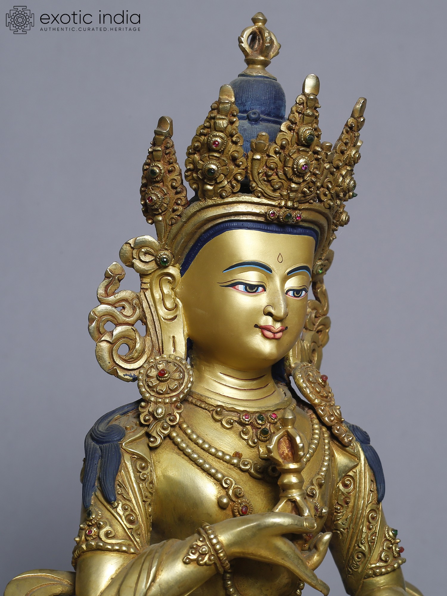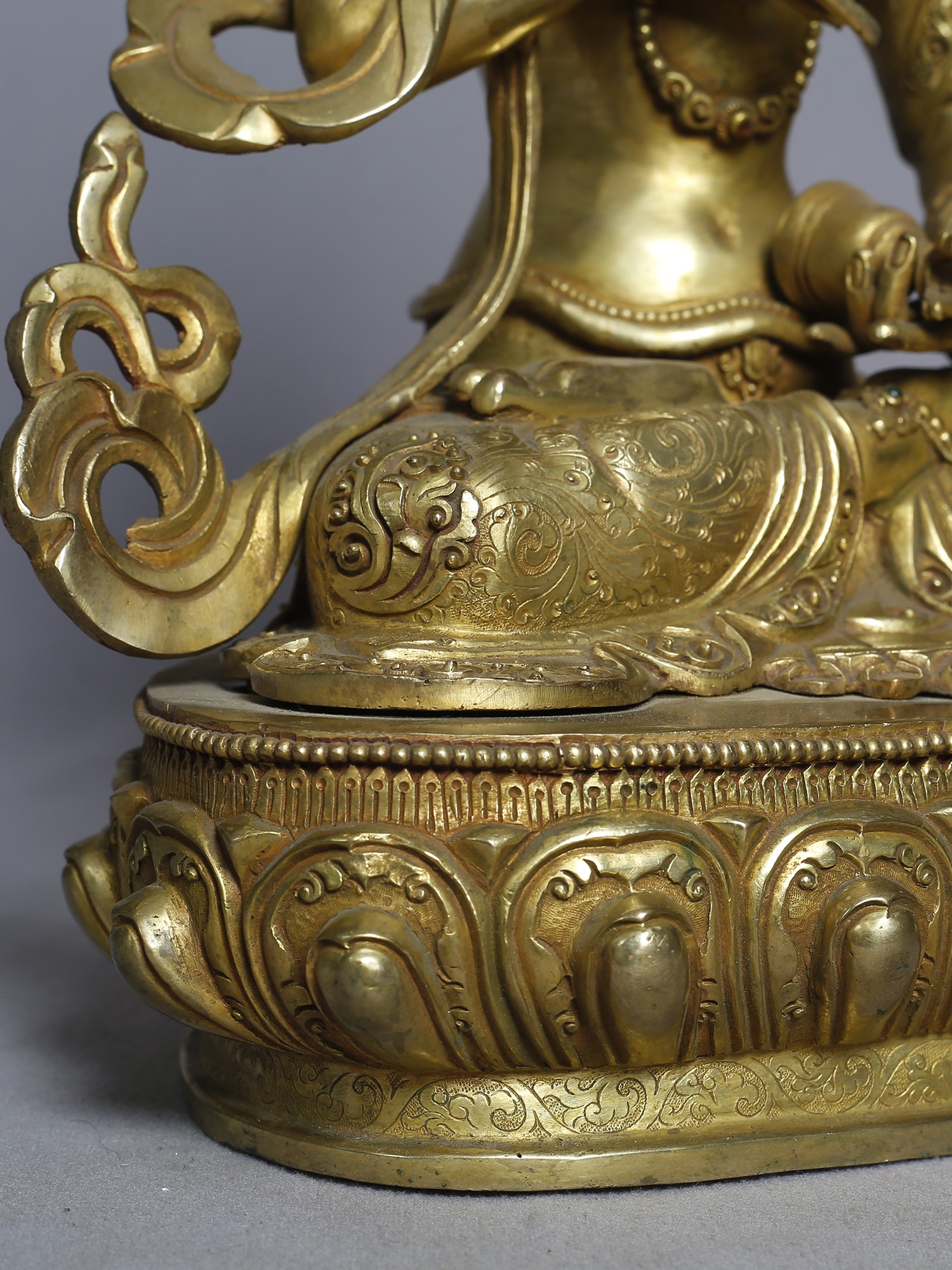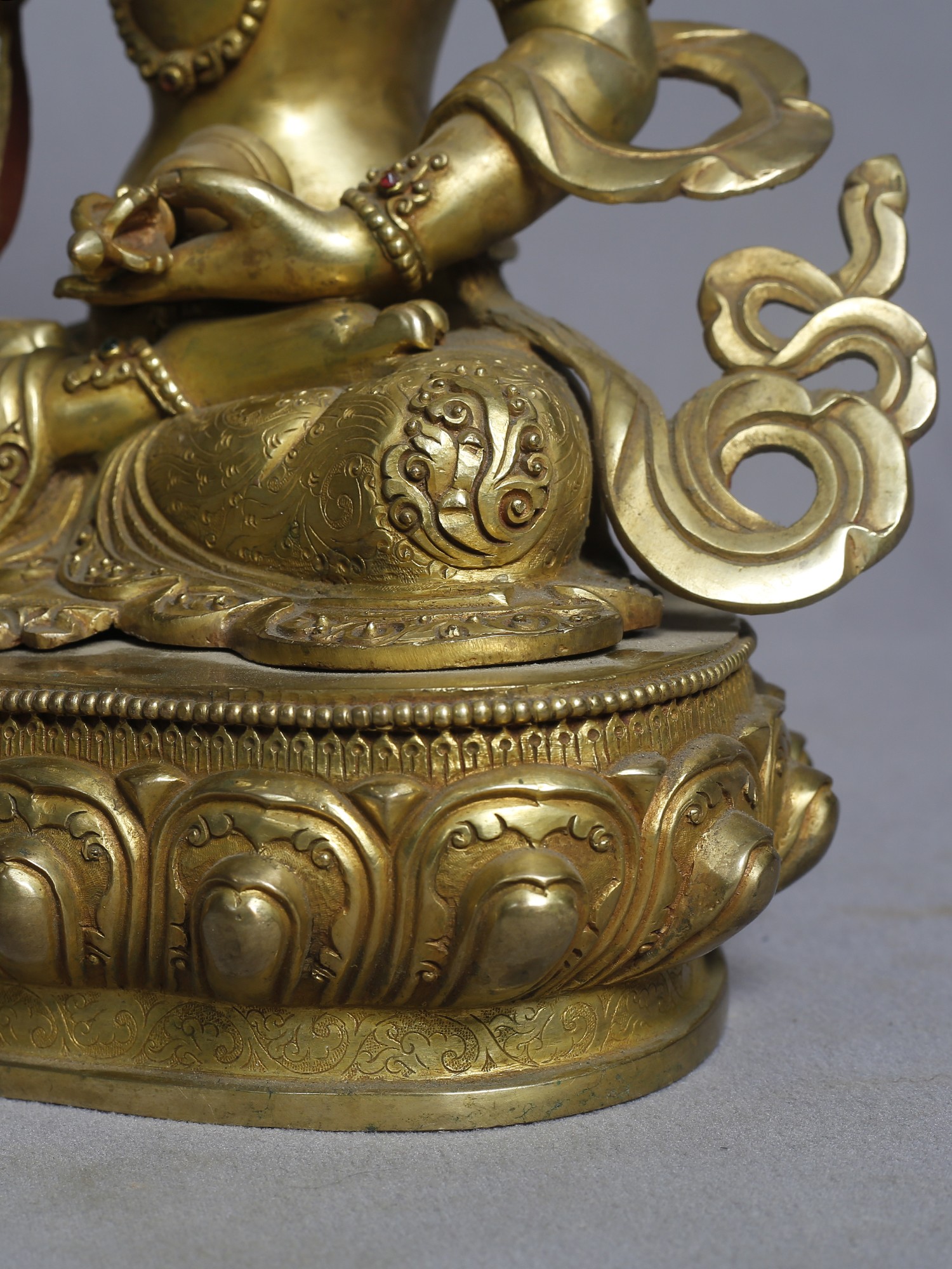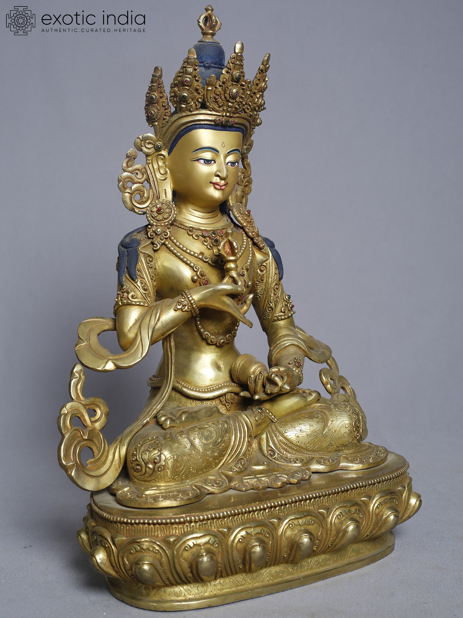 13" Goddess Green Tara Idol | Gilded Copper Nepalese Statue