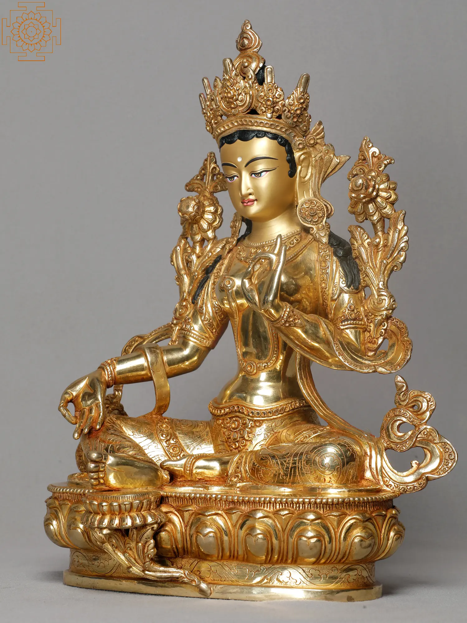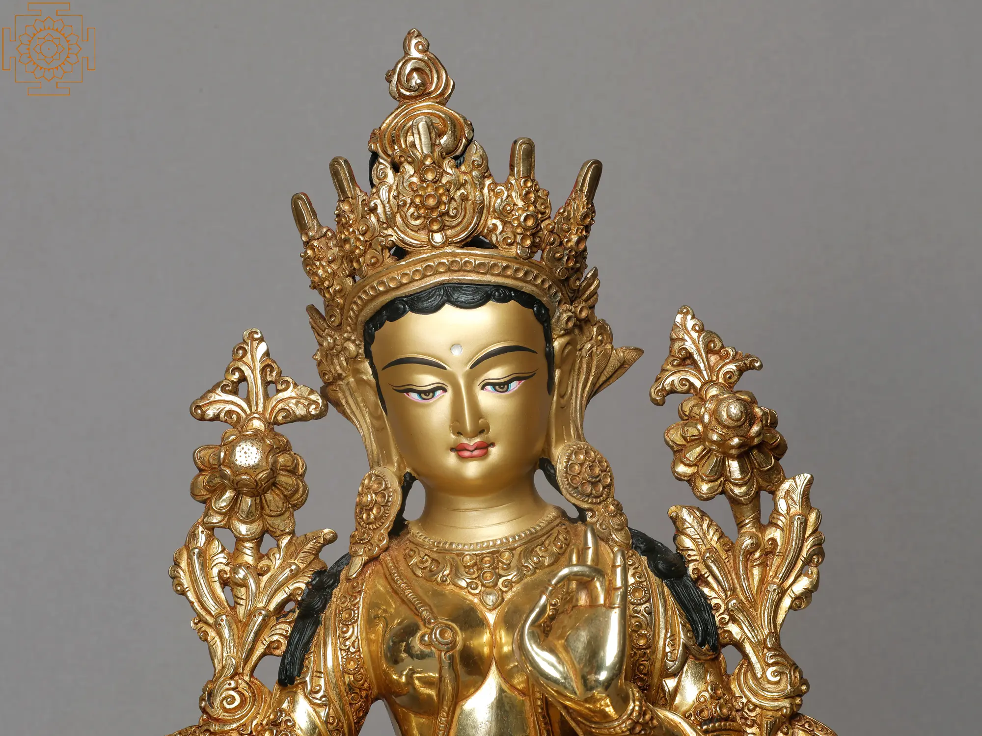 5" Tibetan Buddhist Deities: Green Tara, White Tara, Vajradhara, Amitabha, Vajrasattva and Chenrezig (Set of 6 Sculptures) In Brass | Handmade | Made In India