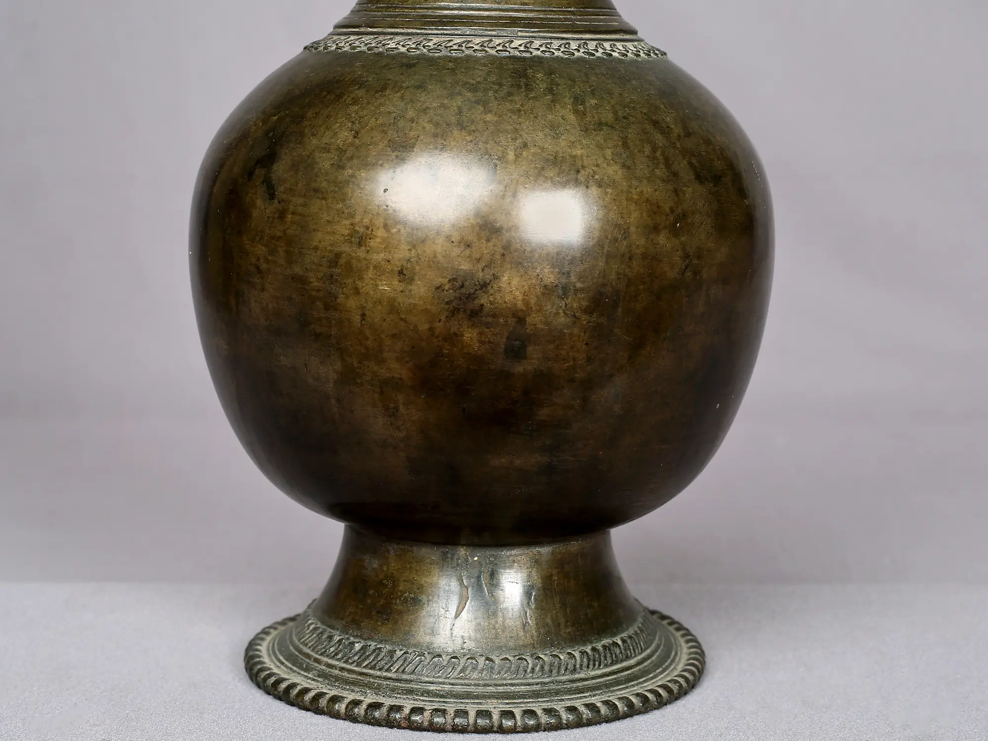 This vintage surahi is a perfect addition for collectors of antiquities, lovers of global art, or anyone seeking to infuse their living space with a touch of history and cultural depth. It serves as a striking decorative piece, capable of commanding attention on a mantelpiece, bookshelf, or as a centerpiece. Imagine it holding a single, elegant bloom, or simply displayed for its own inherent beauty, a constant reminder of the artistry and spirit of Nepal. This surahi is not just an item to be purchased; it is an heirloom to be treasured, passed down, and admired for its enduring charm and the stories it holds within its metallic form.