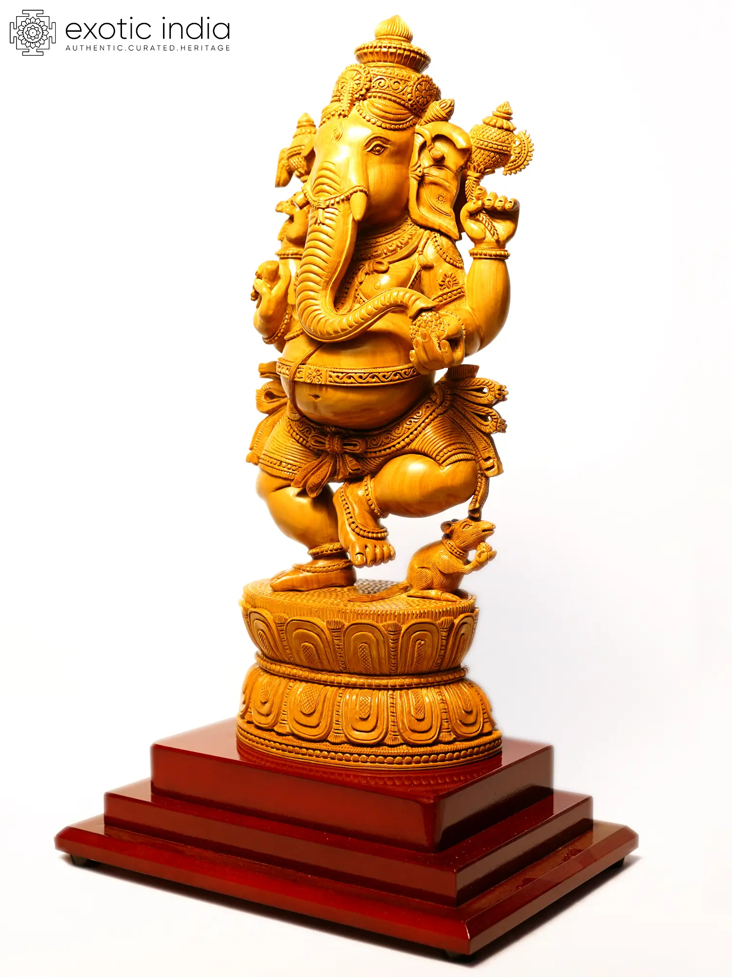 13" Dancing Lord Ganesha | Sandalwood Carved Statue