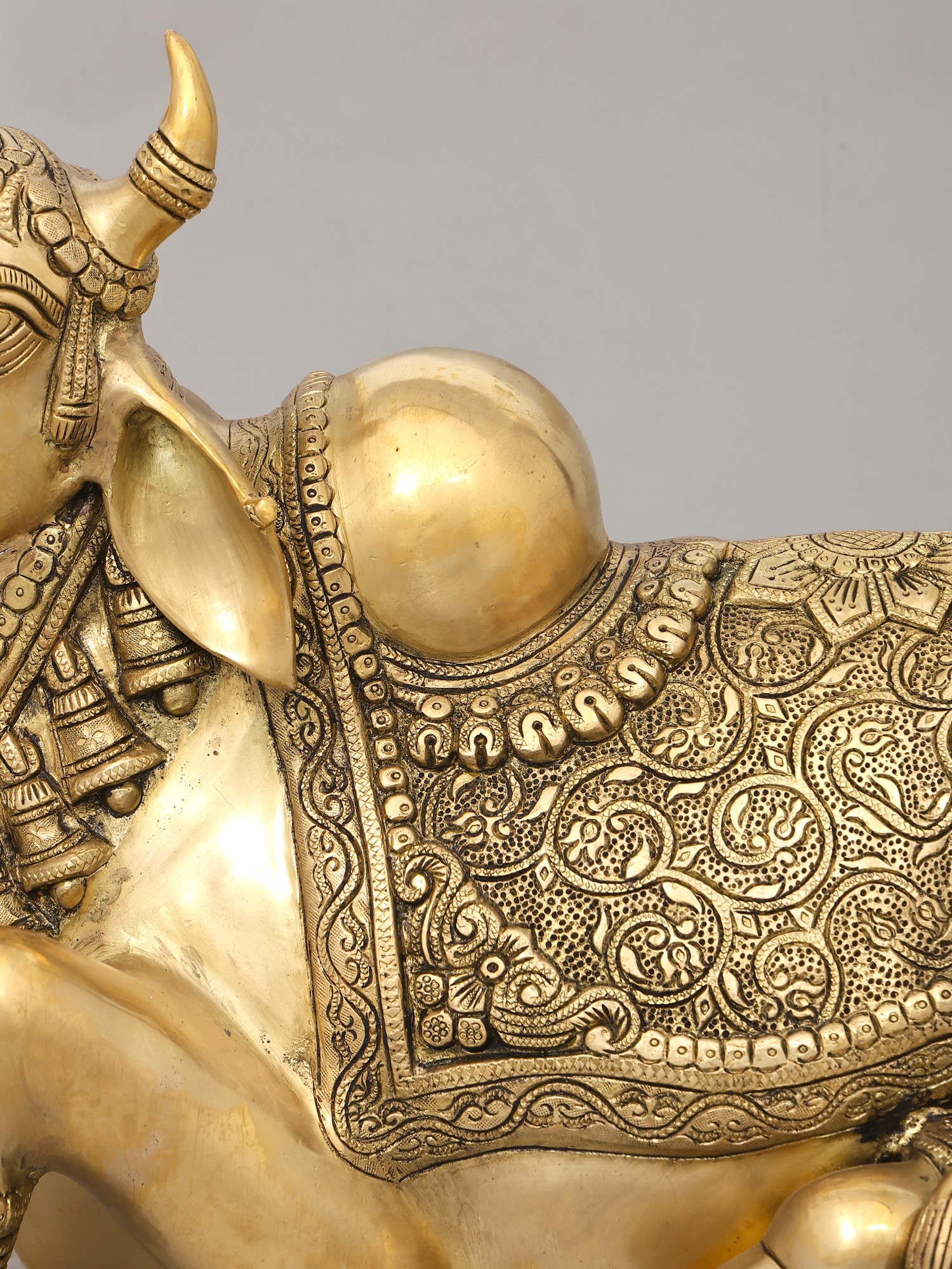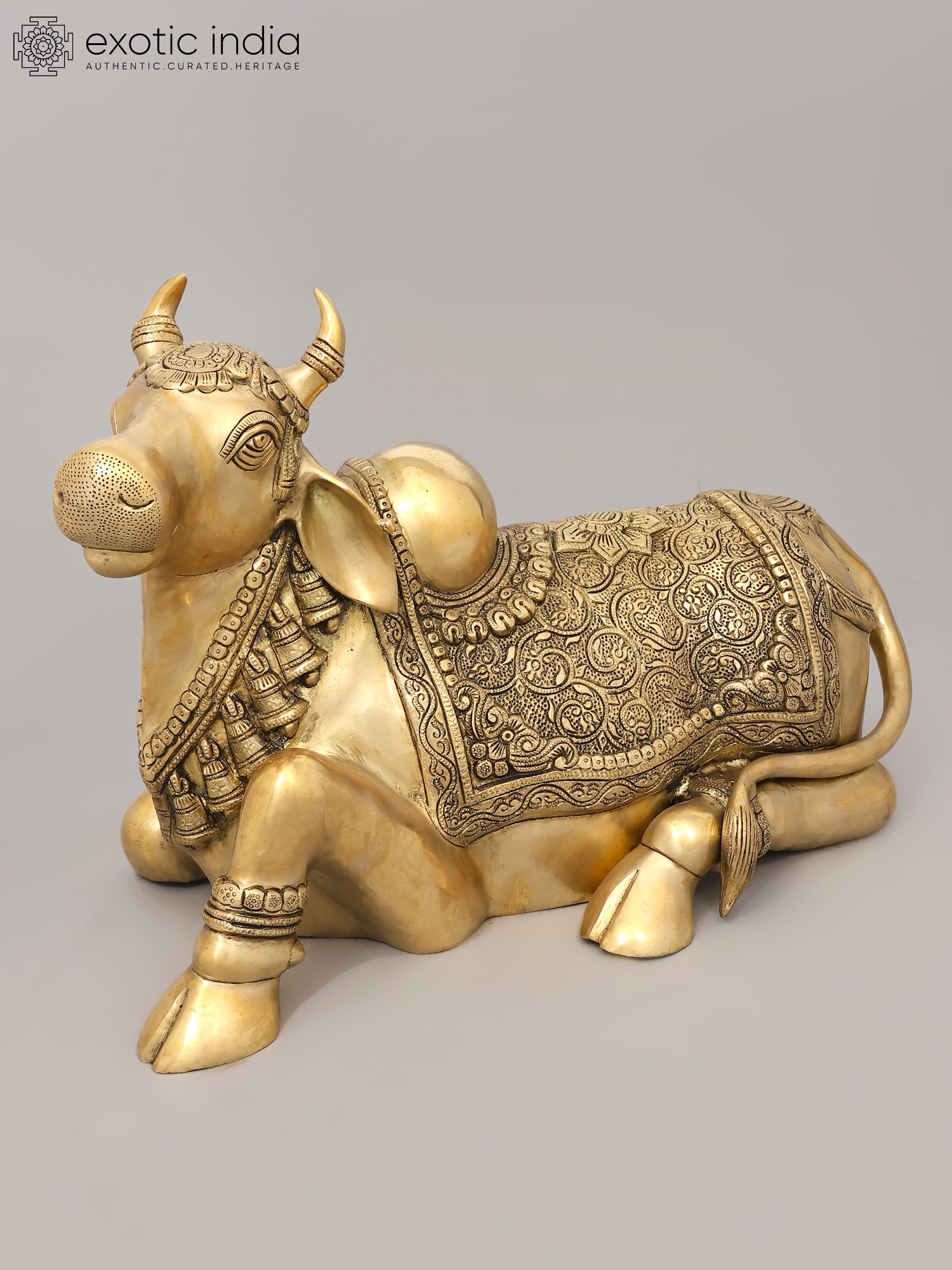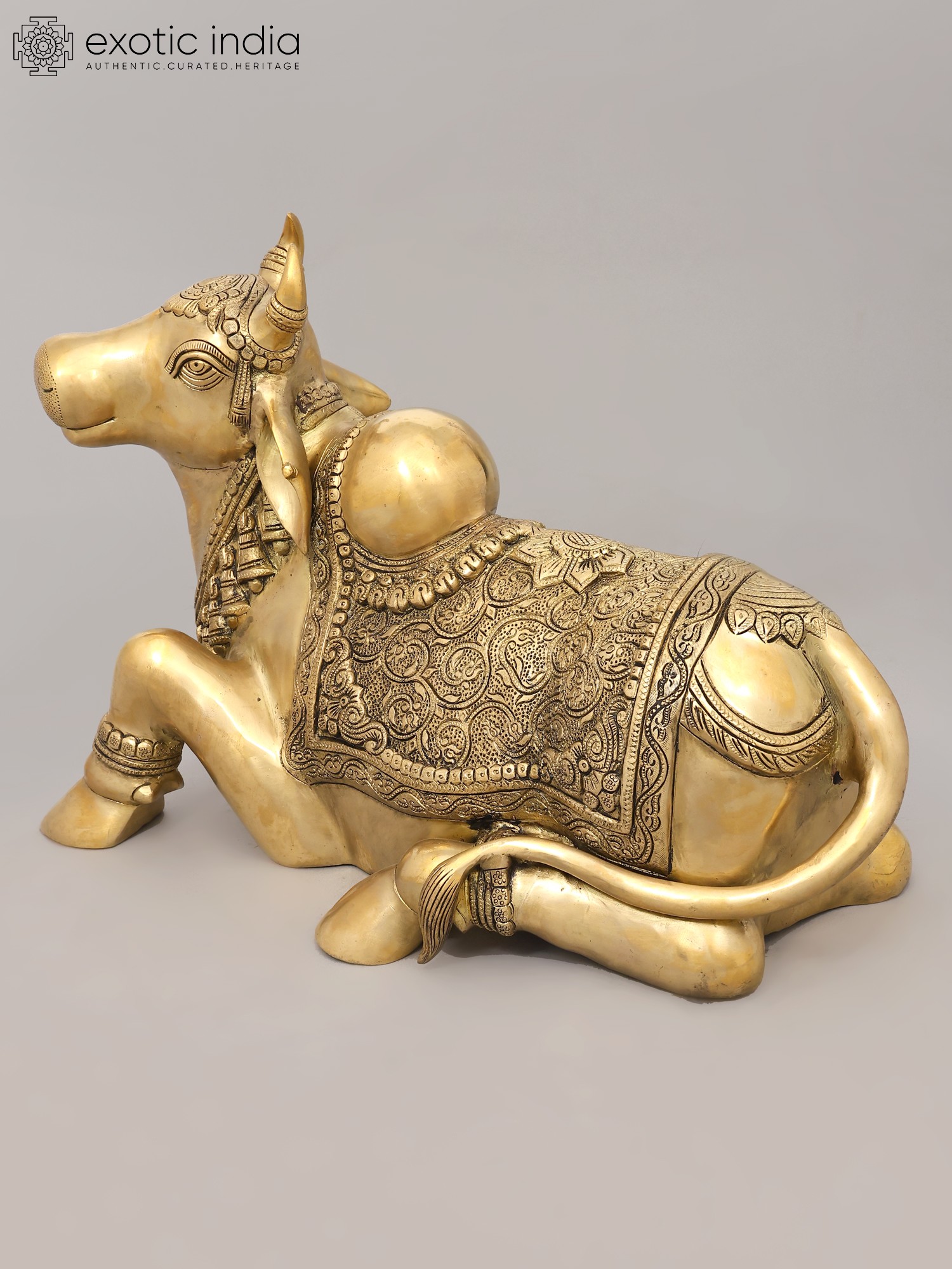 14" Fine Nandi - The Gate-guardian of Kailasagiri, The Abode of Shiva In Brass | Handmade | Made In India