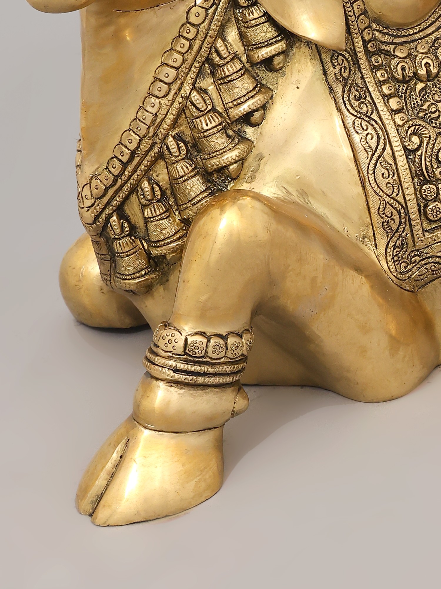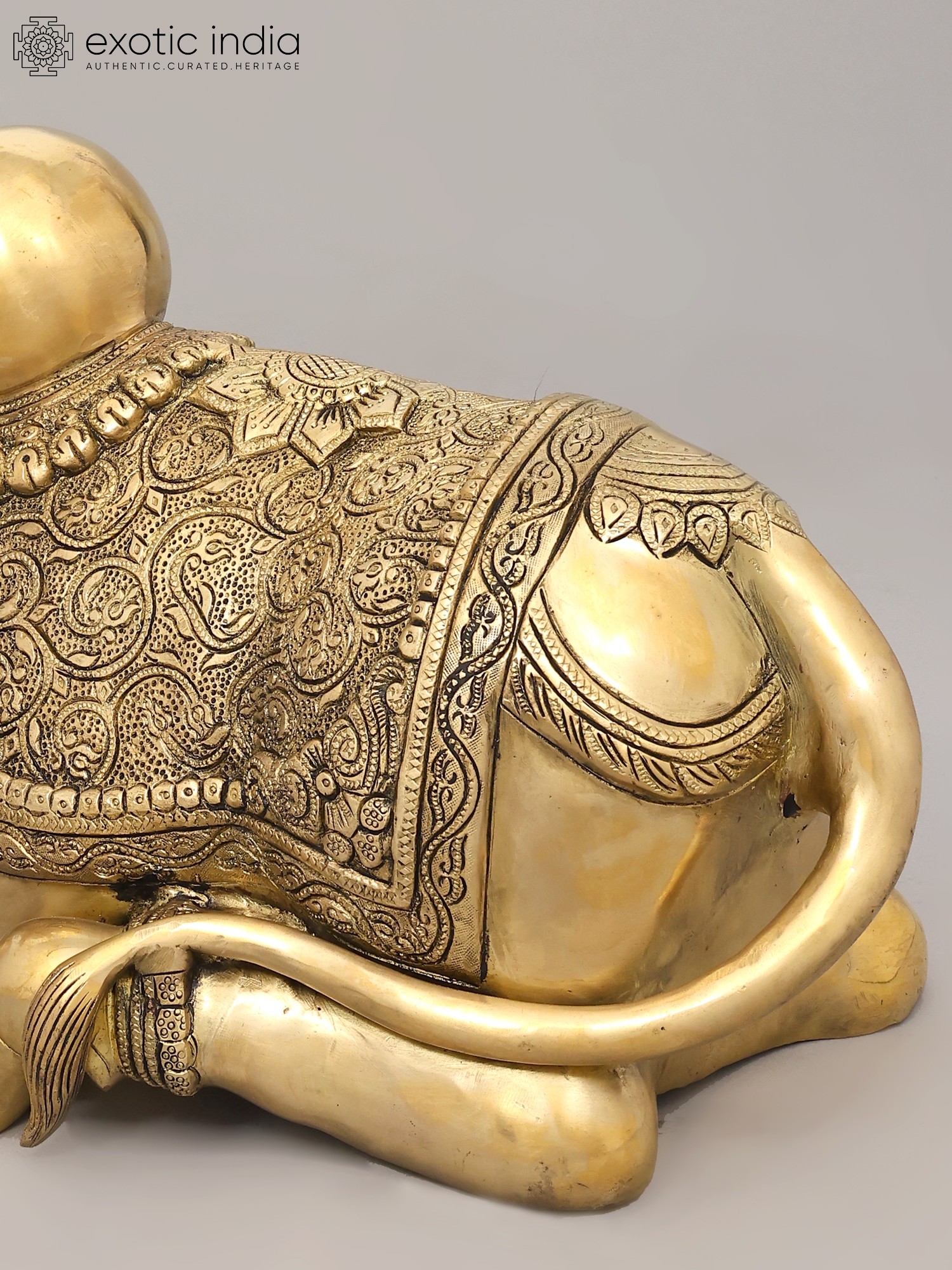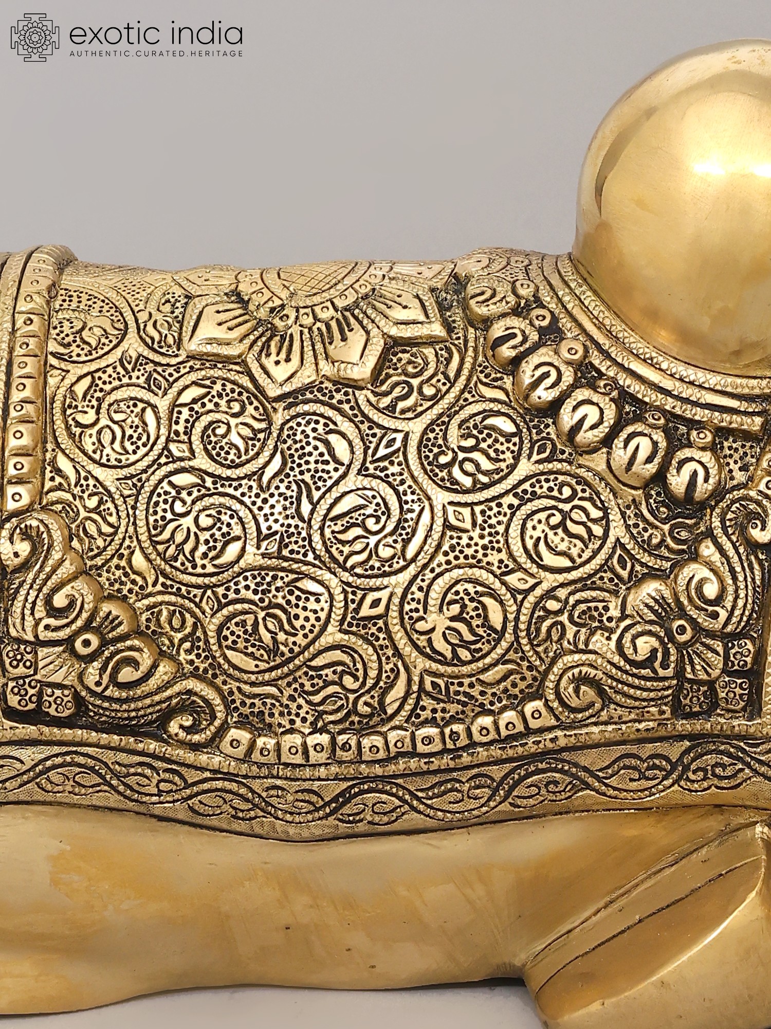 14" Fine Nandi - The Gate-guardian of Kailasagiri, The Abode of Shiva In Brass | Handmade | Made In India