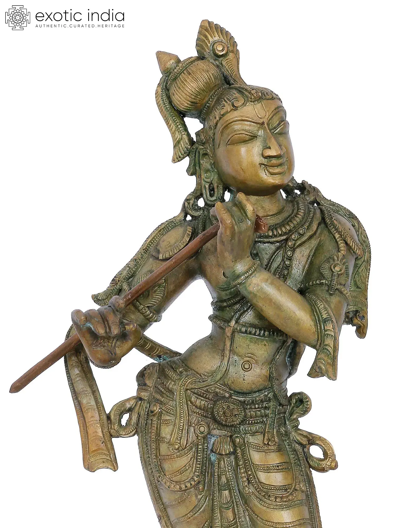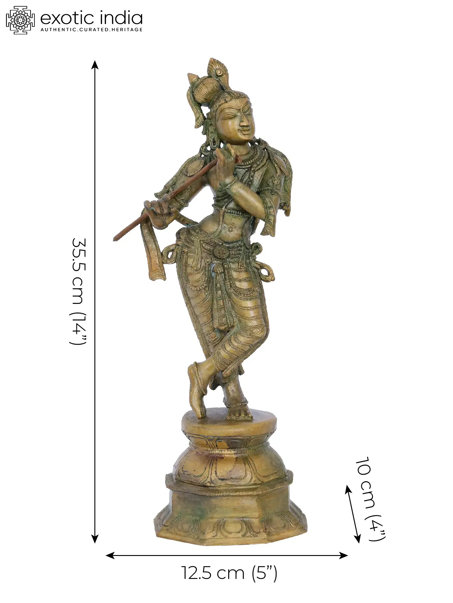 14'' Fluting Krishna Bronze Idol | Madhuchista Vidhana (Lost-Wax) | Panchaloha Bronze from Swamimalai