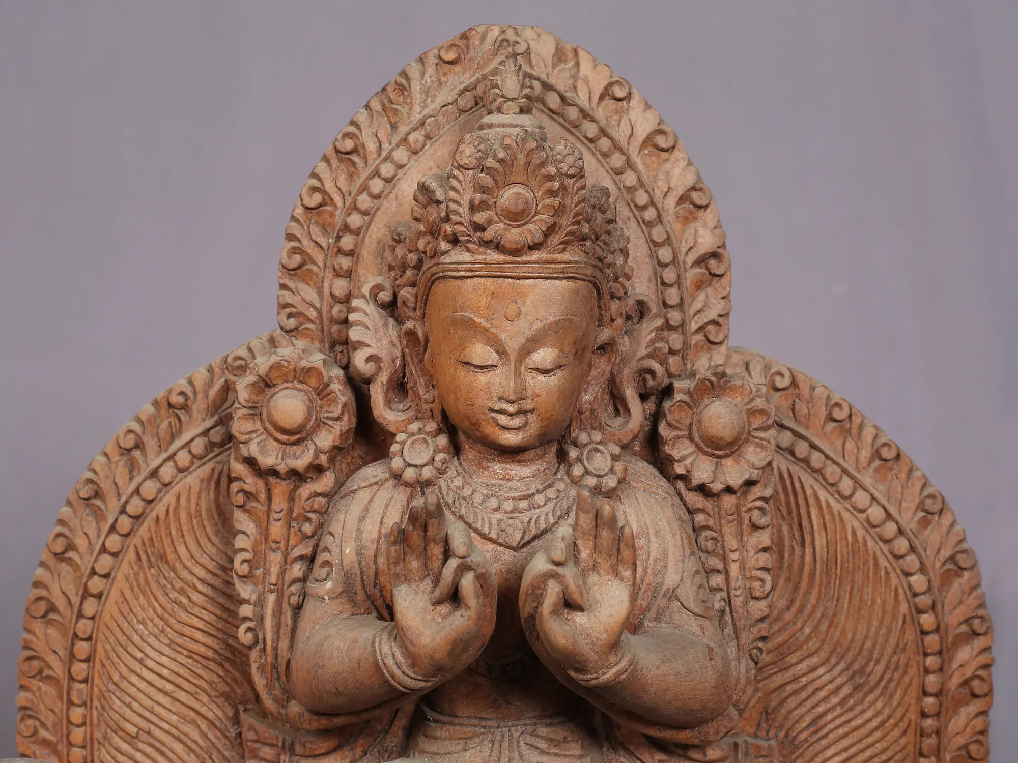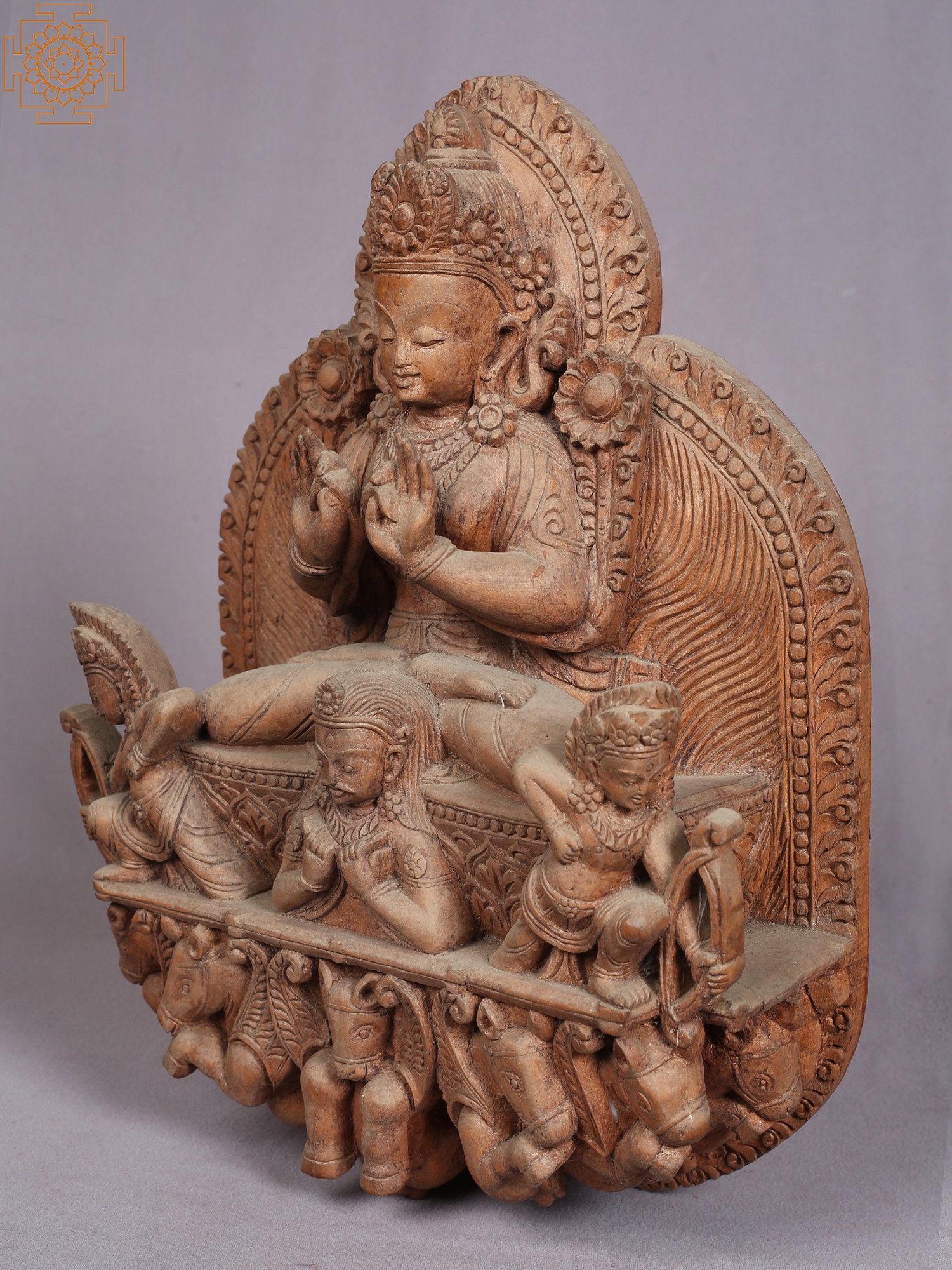 Shakyamuni Buddha with Amitayus Buddha and Chenrezig - Wall Hanging Plate with Dragons and Endless Knot Frame