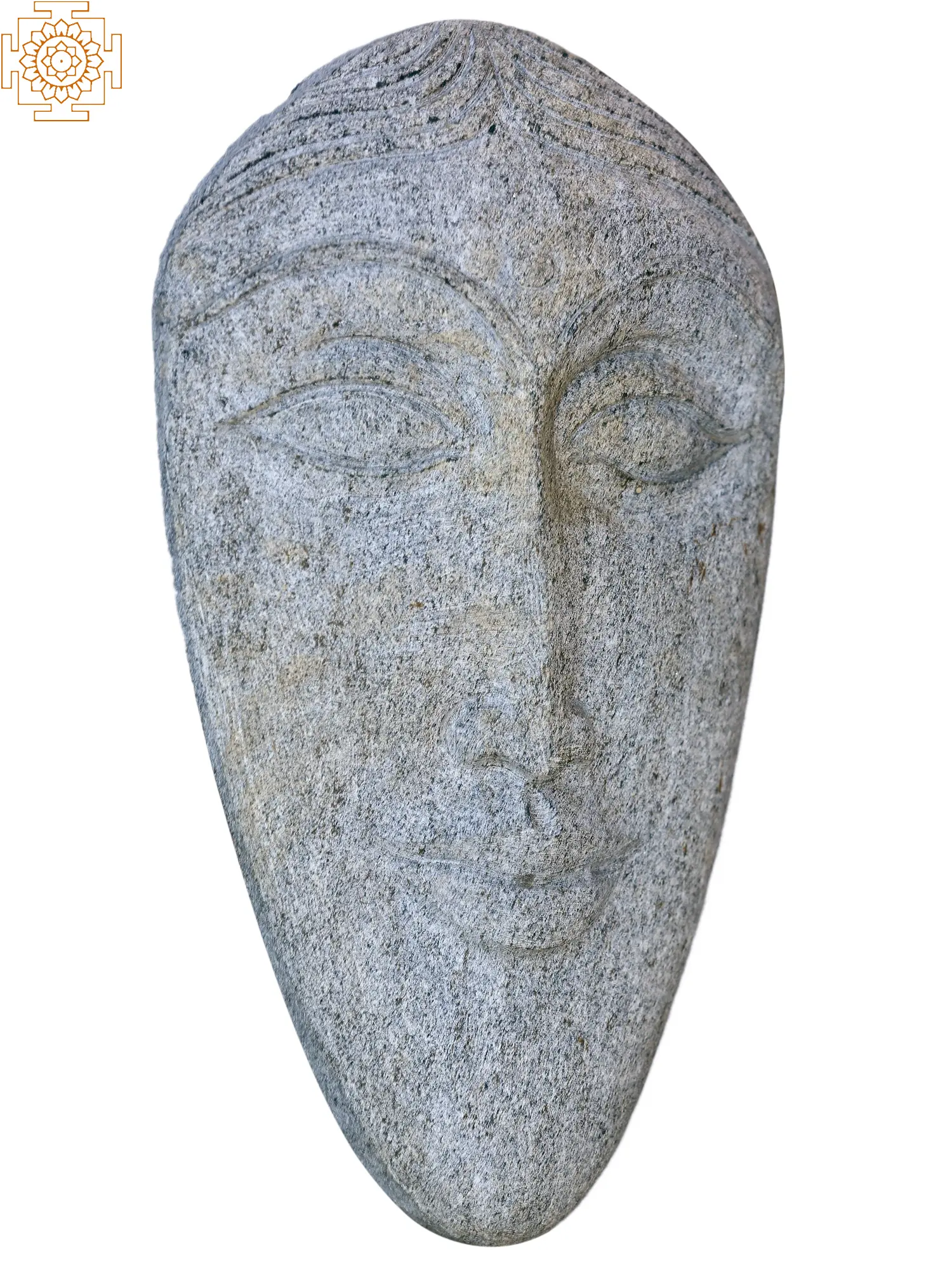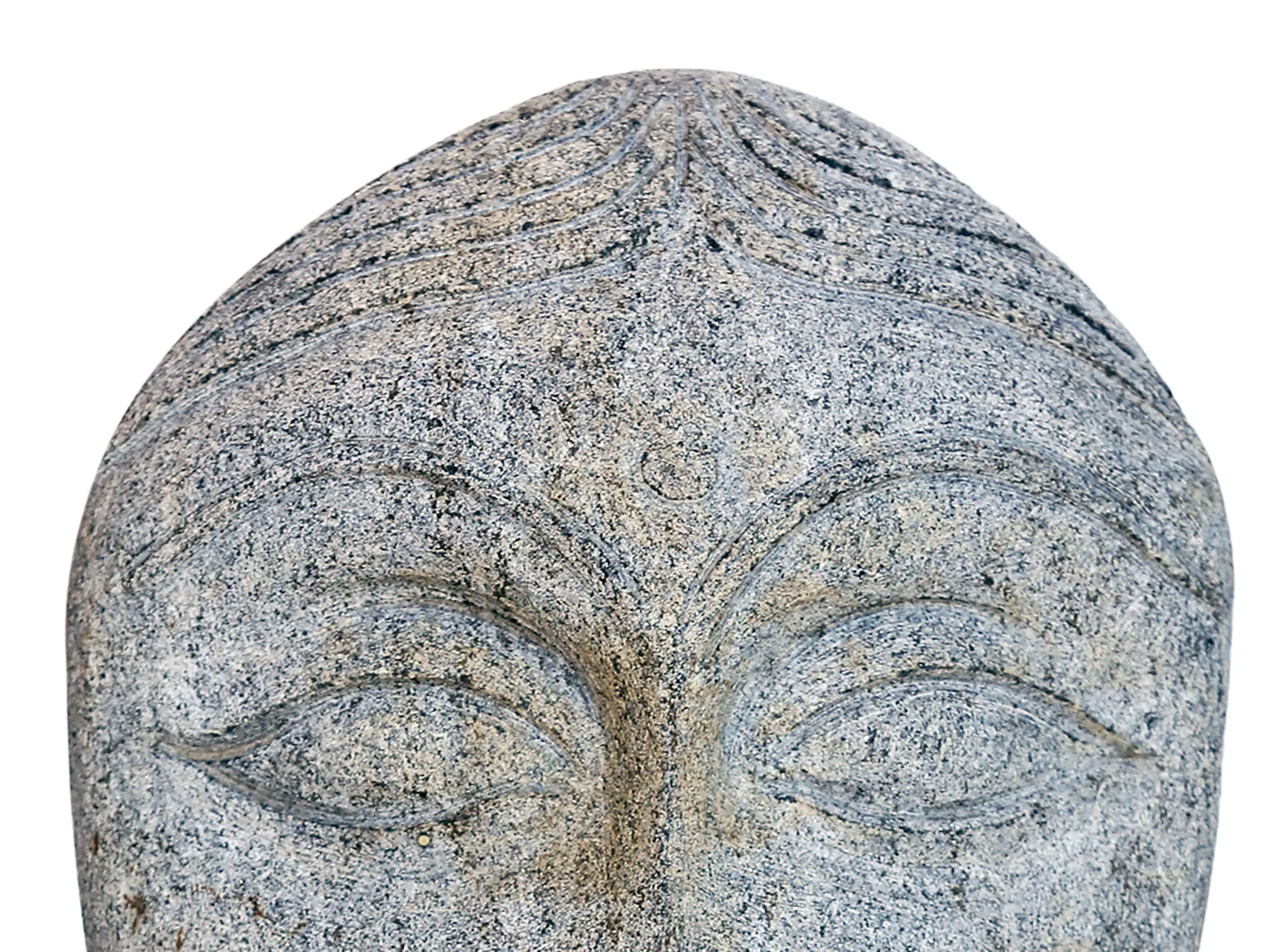 Expertly sculpted from granite, presents a striking and abstract interpretation of the human face.
