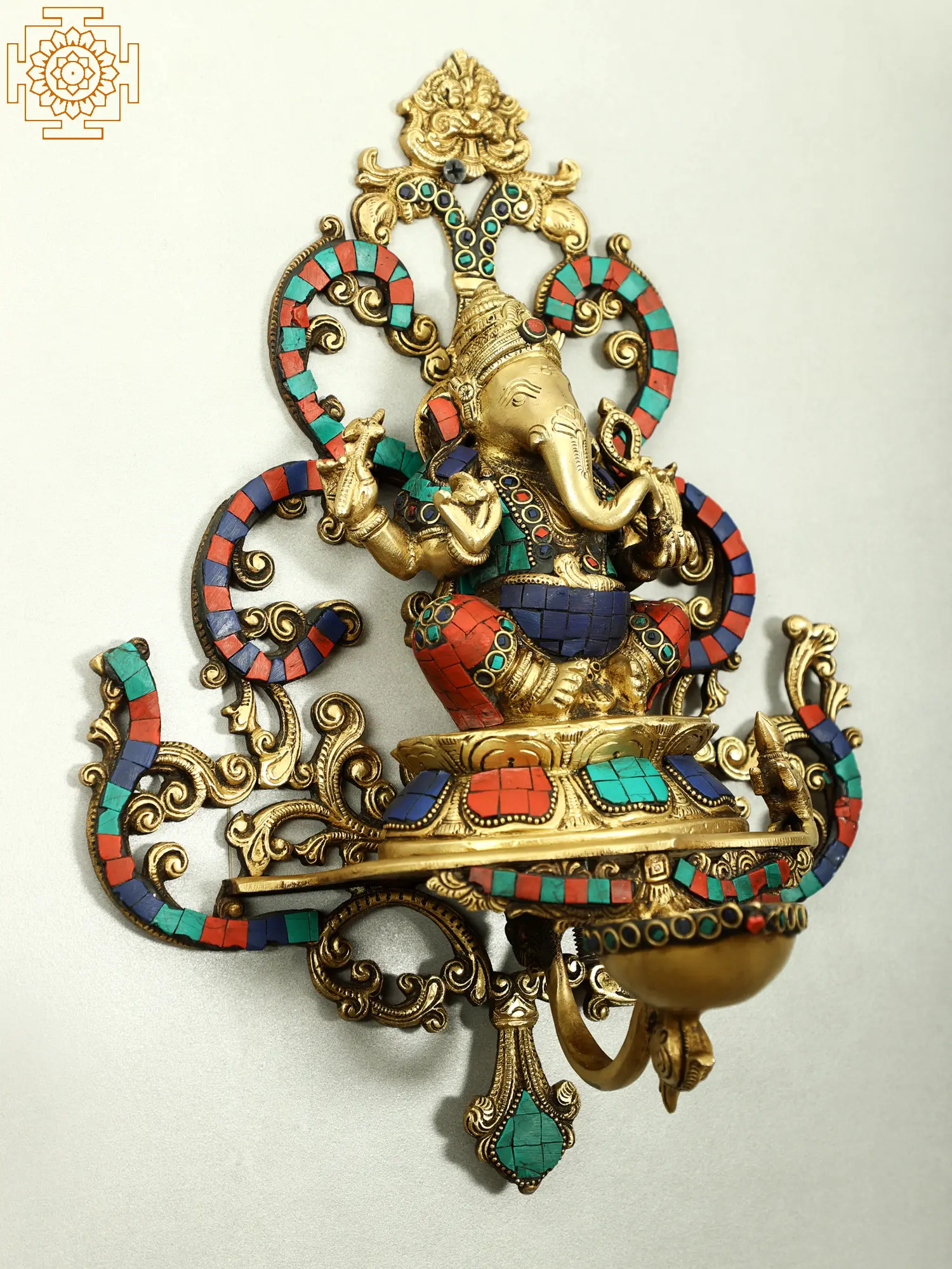 14" Inlay Work Ganesha Wall Hanging with Diya