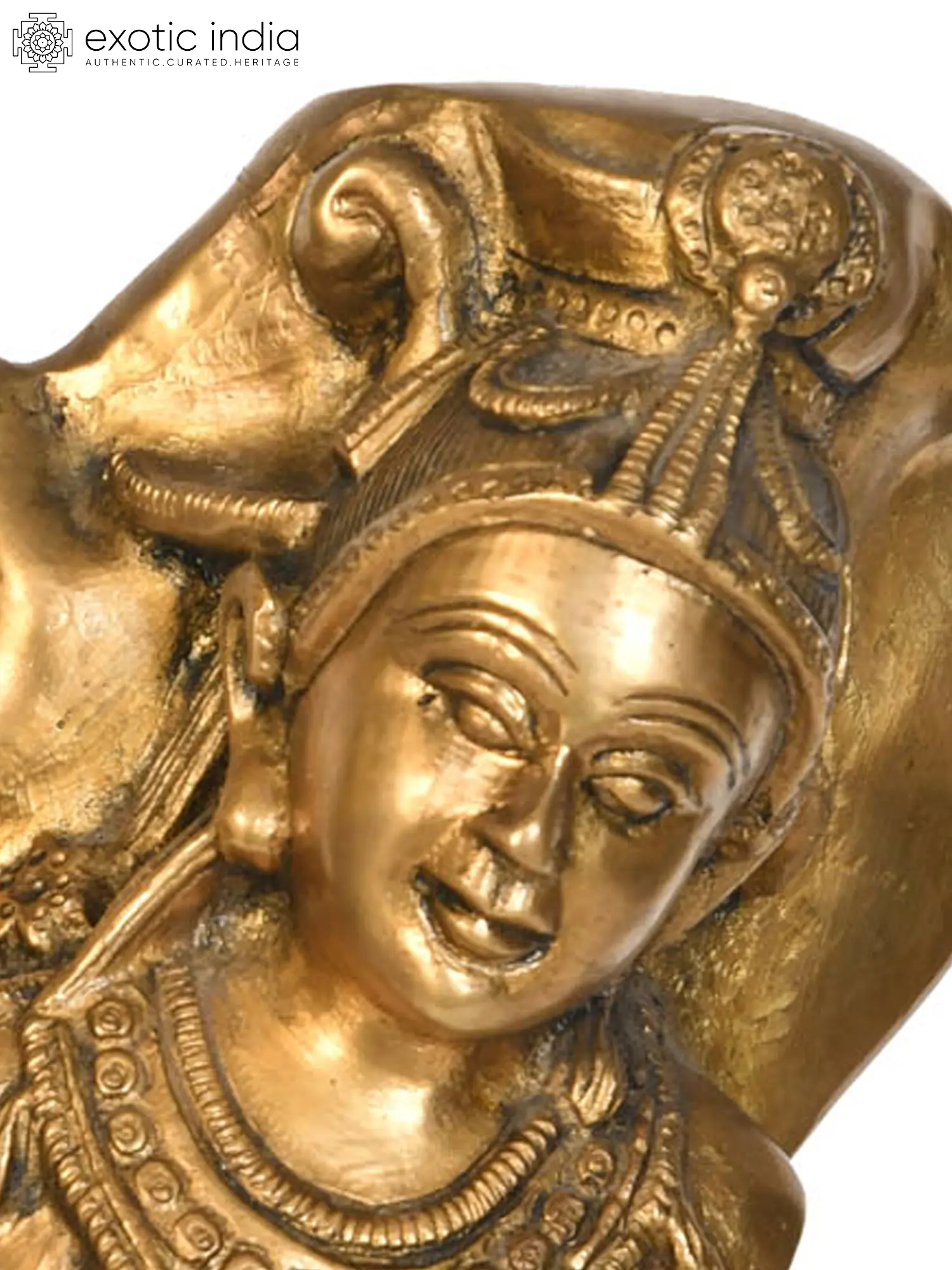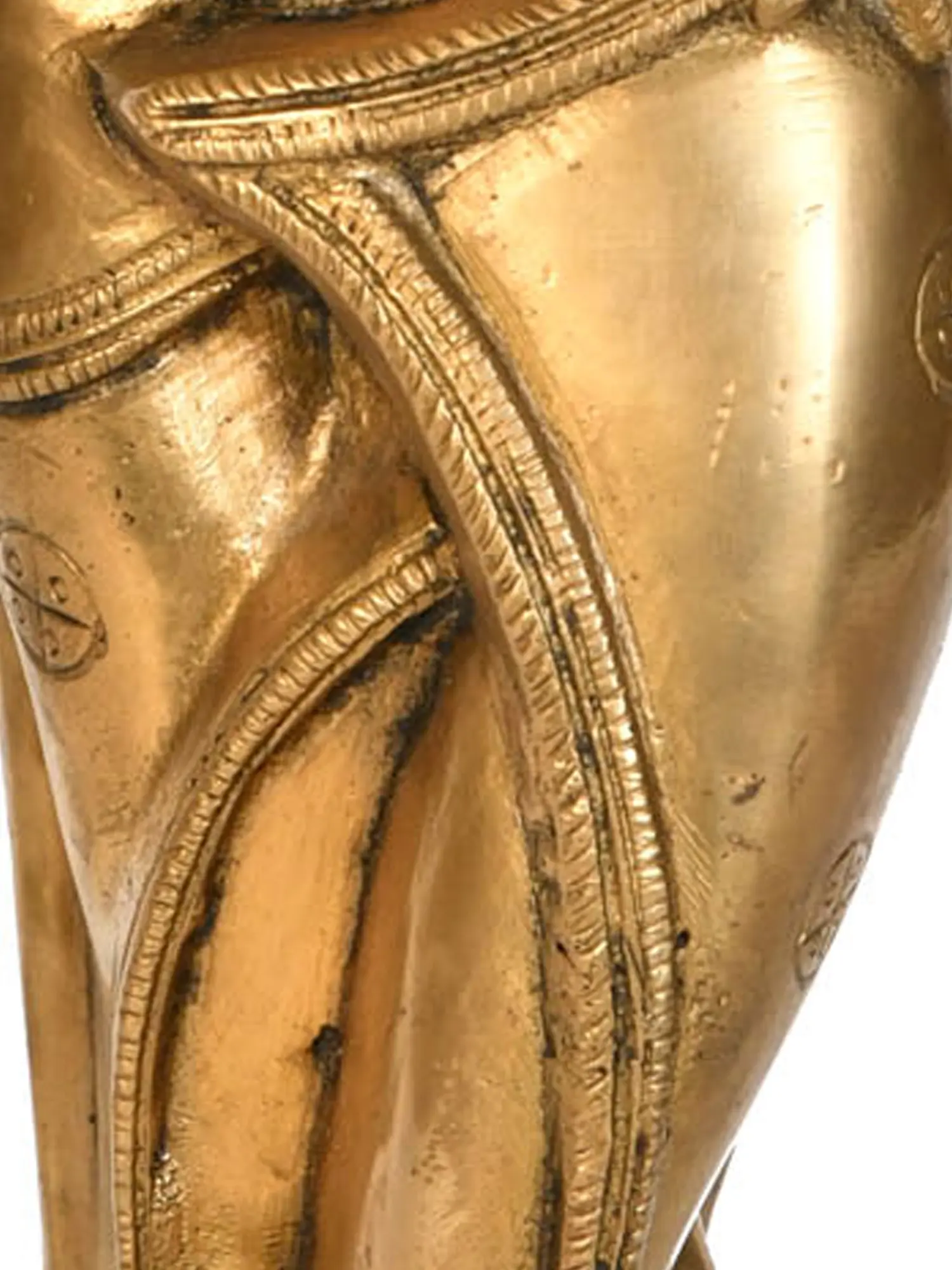 Each aspect of this sculpture speaks of dedicated craftsmanship. The subtle curves of the body, the delicate ornamentation adorning the neck and waist, and the intricate headdress are all rendered with remarkable precision. The choice of brass, a metal deeply ingrained in Indian artisanal traditions, lends the piece a timeless quality. It is not merely an object of beauty but a piece of history, a tangible connection to the skills and artistic vision of Indian artisans. This sculpture is a perfect addition to any collection seeking to embrace the beauty and cultural depth of Indian art, bringing an aura of sacred artistry and timeless elegance to any setting.