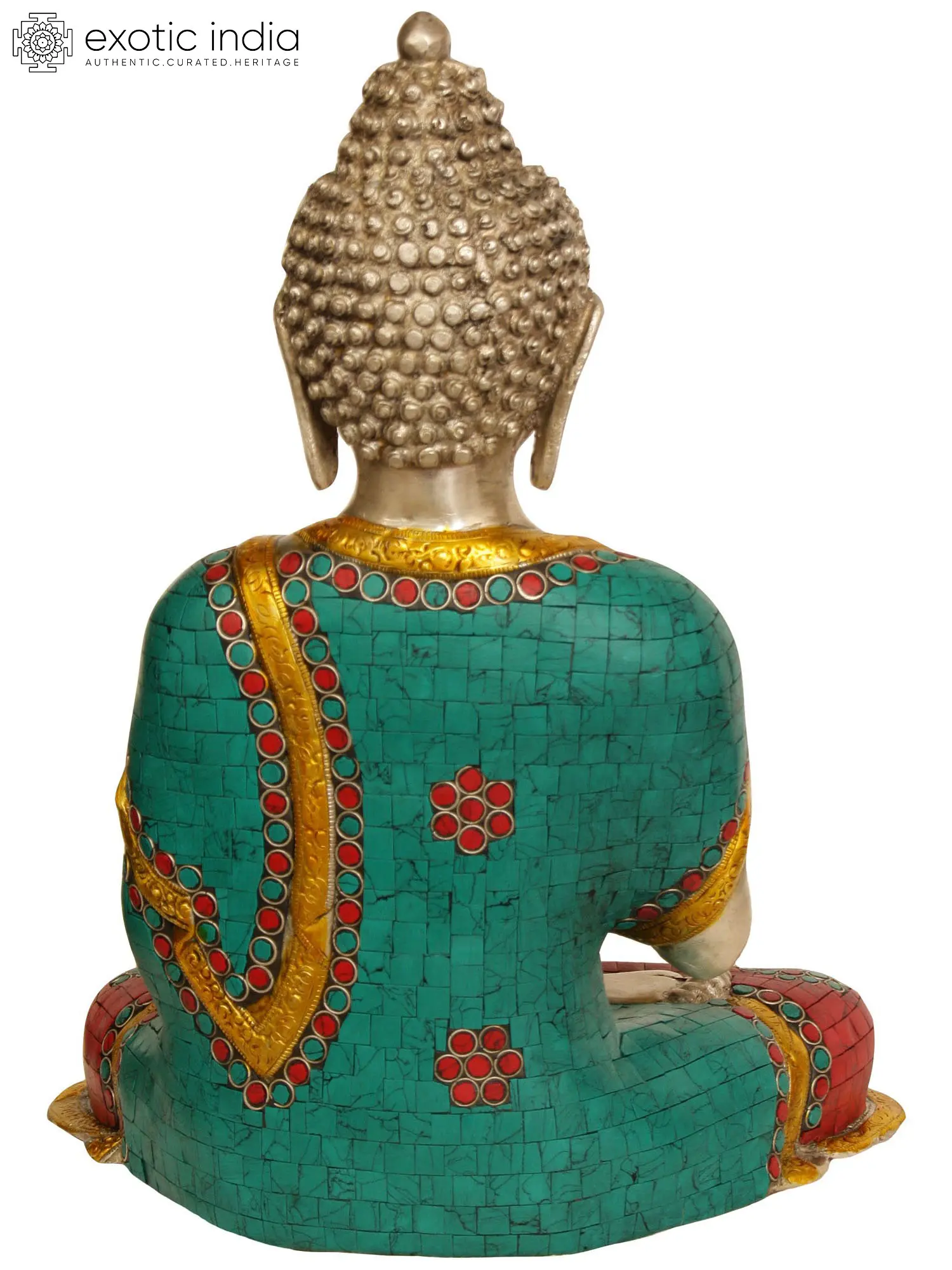 This magnificent piece is a testament to the enduring legacy of Indian craftsmanship. Each sculpture is meticulously handcrafted by skilled artisans who have inherited their trade through generations. The process involves a deep understanding of metallurgy, intricate carving techniques, and a profound respect for the subject matter. The careful selection and placement of each inlaid stone, the patient polishing of the brass, and the final artistic touches all contribute to the creation of a unique and spiritually significant artifact. Originating from India, the birthplace of Buddhism, this sculpture carries with it the authenticity of its cultural heritage, offering a tangible connection to the ancient traditions and profound philosophies that continue to inspire the world. Its substantial size and the richness of its adornments make it a commanding presence, perfect for enhancing any sacred space, meditation room, or as a distinguished centerpiece in a collection of spiritual art.