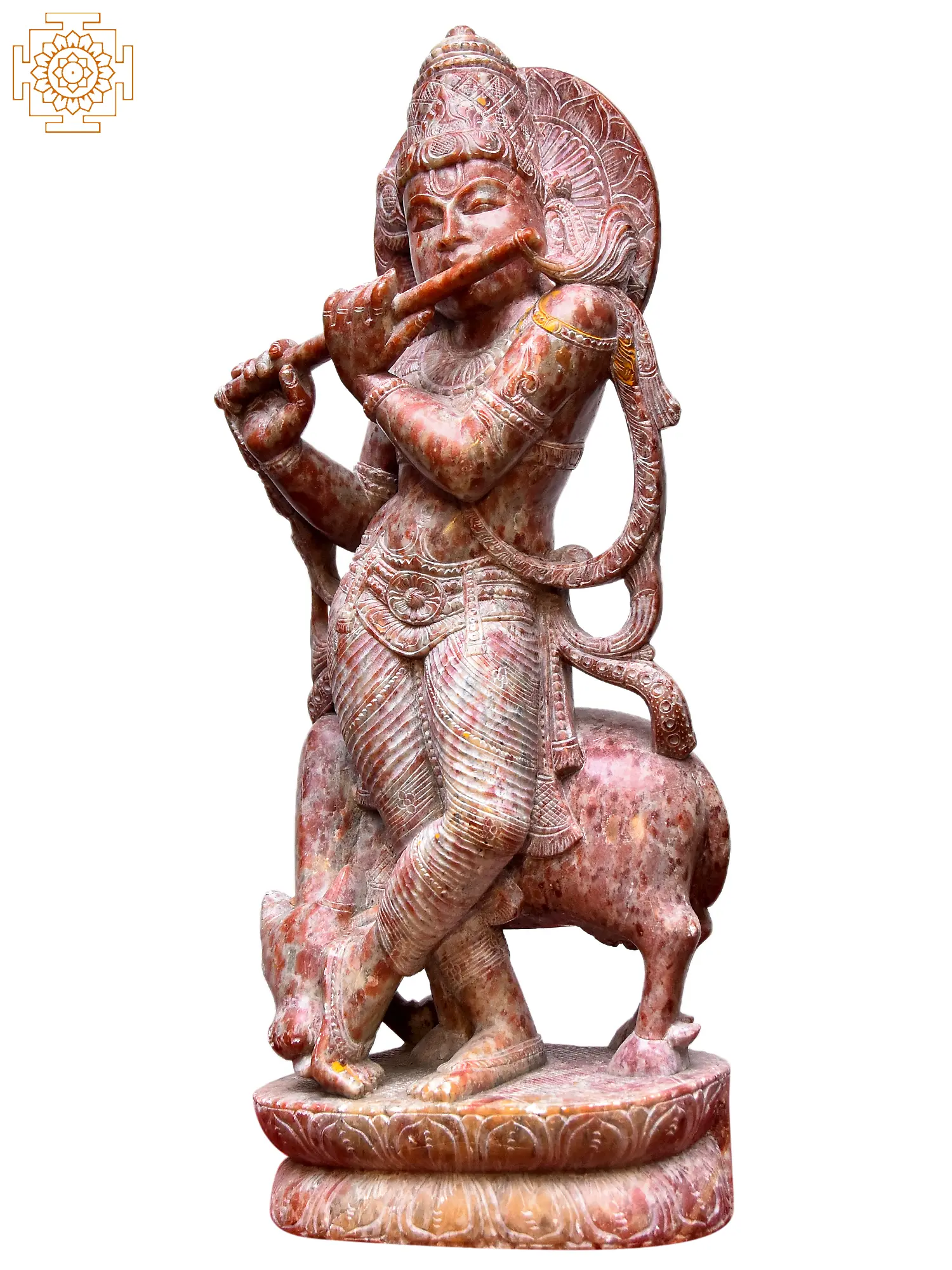 47" Lord Krishna Playing Flute | Orissa Stone Statue with Base | Exquisite Handmade Indian Art