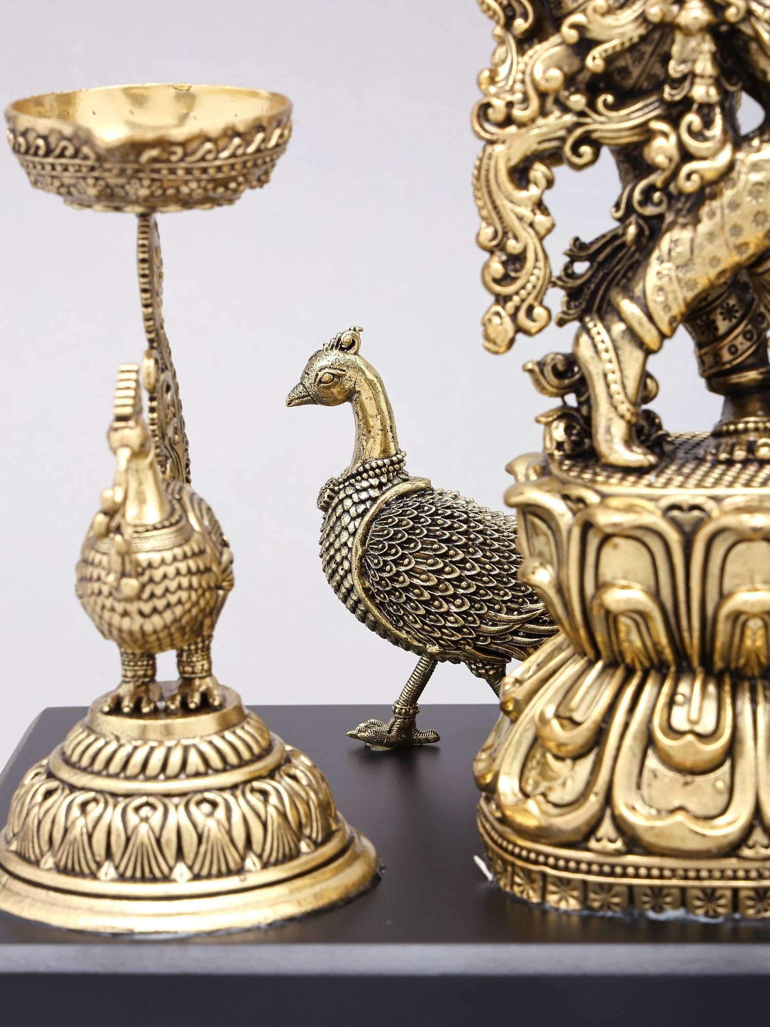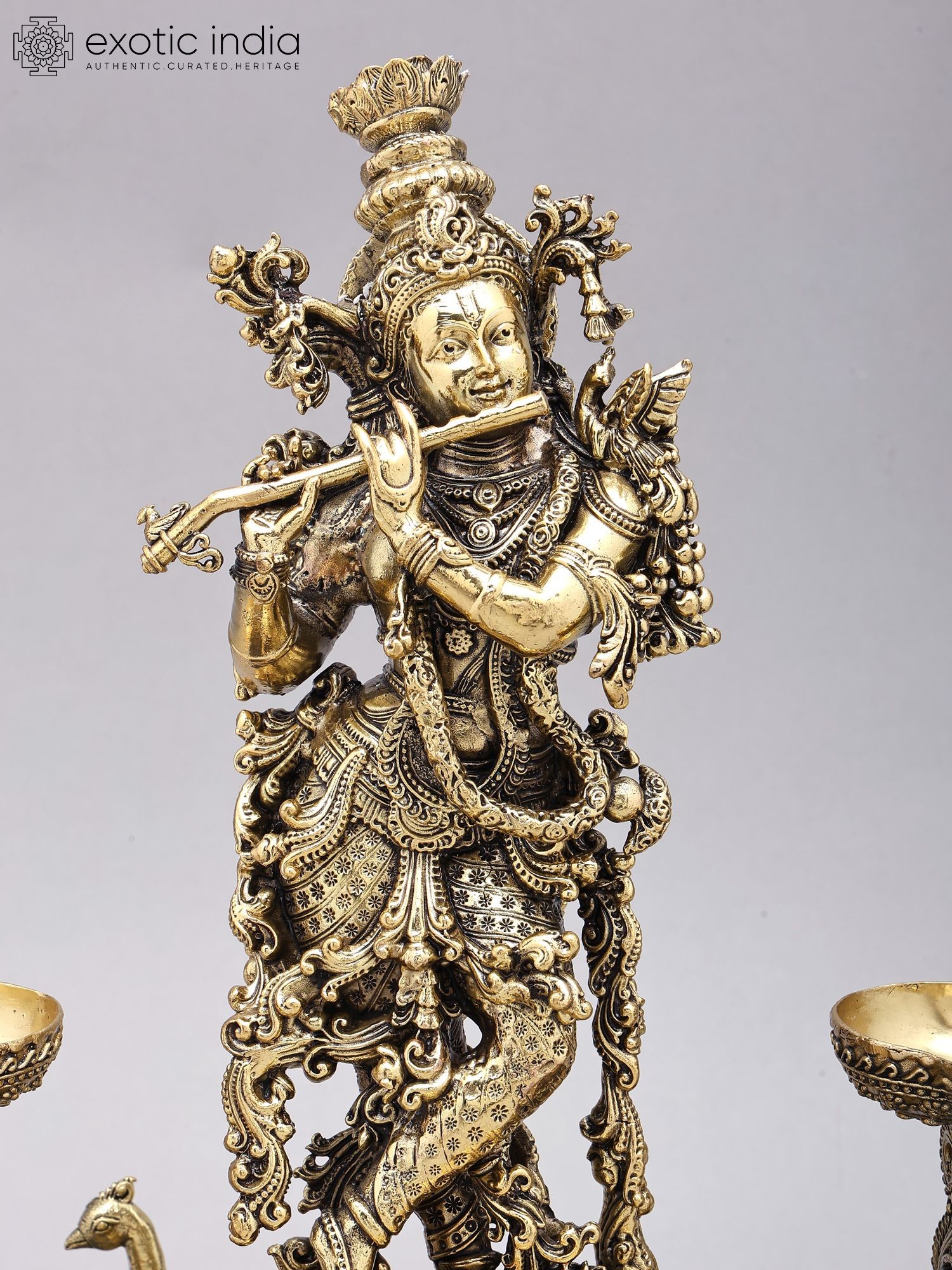 27" Large Fluting Krishna Lamp in Brass | Exquisite Handmade Craft | Authentic Indian Art