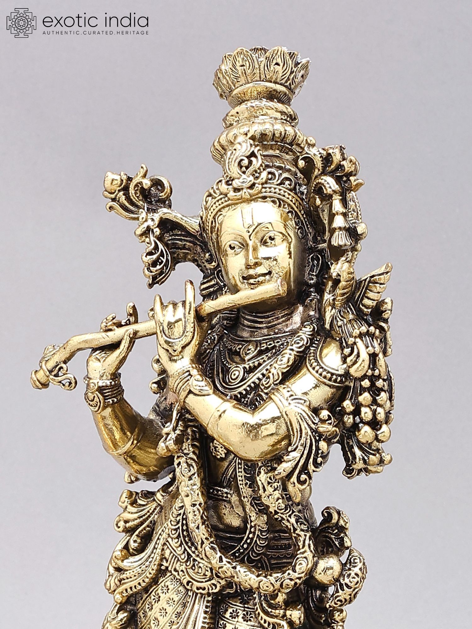 18" Brass Fluting Krishna | Handmade