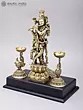 6" Brass Dattatreya Statue with Cow and Dog on Wood Base