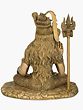 Supremely carved trishul and an attached damaru stand erect on the right, symbolic of consciousness and cosmic energy respectively that creates and destroys the world. The aesthetic carvings of this sculpture aptly depict Shiva as Mahadeva blessing the devotees and spreading vibes of spirituality and protection.