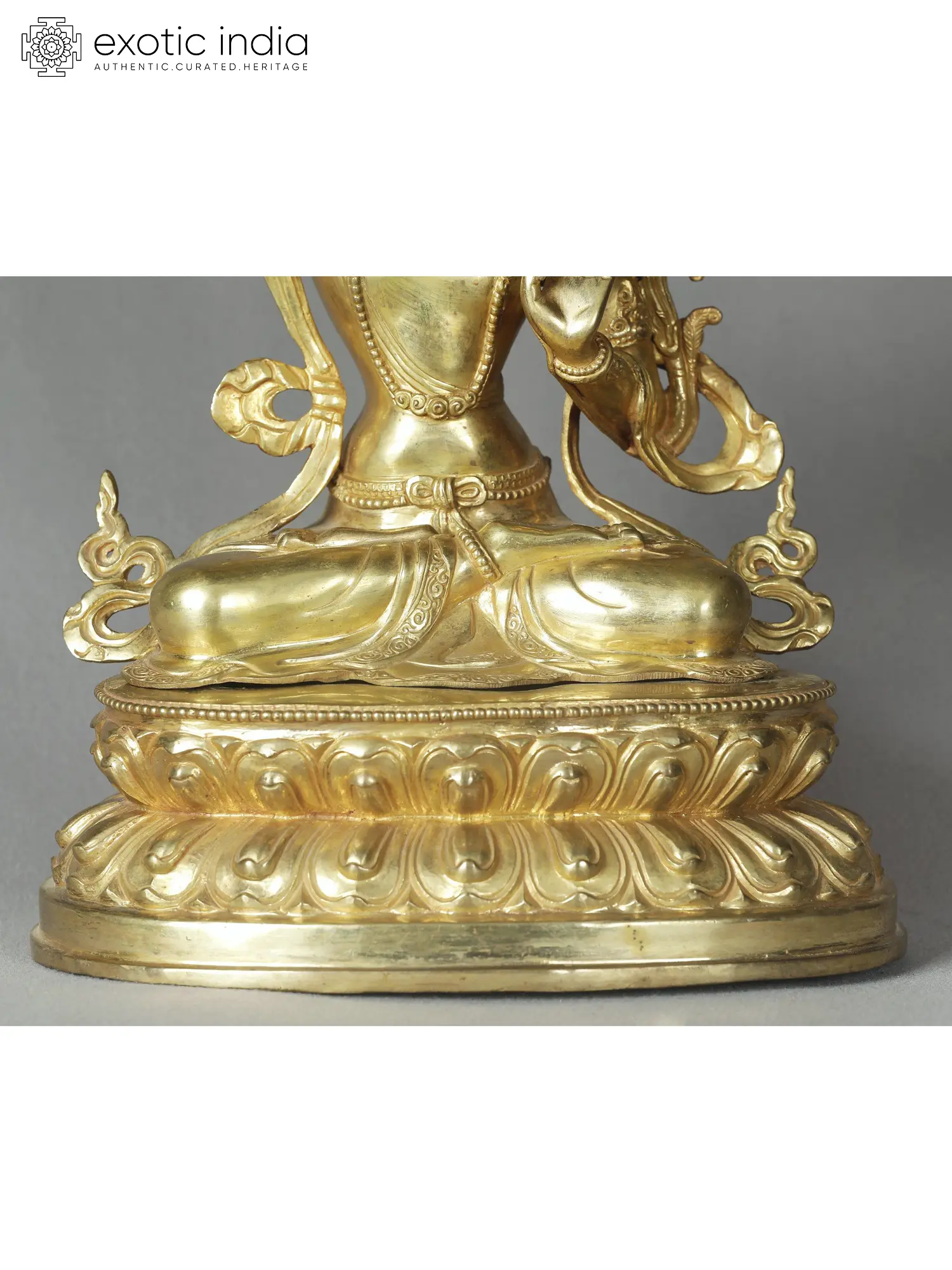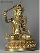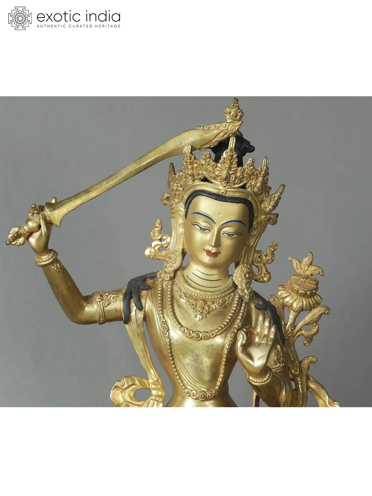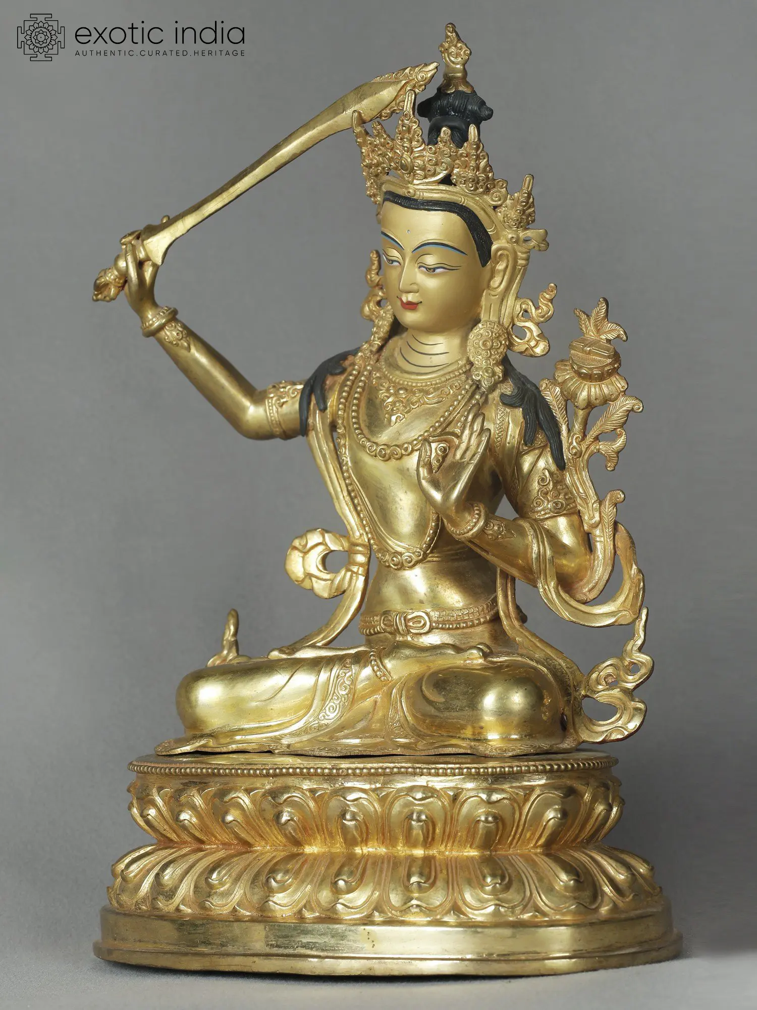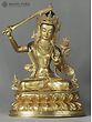 Manjushri embodies the wisdom essential for attaining Buddhahood. In a distant era, he reigned as the king of Kamjung Sangpo before forsaking his realm and worldly pursuits. He embraced bodhisattva vows, nurturing the awakening mind within him. The luminous rays emanating from his golden form symbolize his diverse methods of guiding individuals toward wisdom.