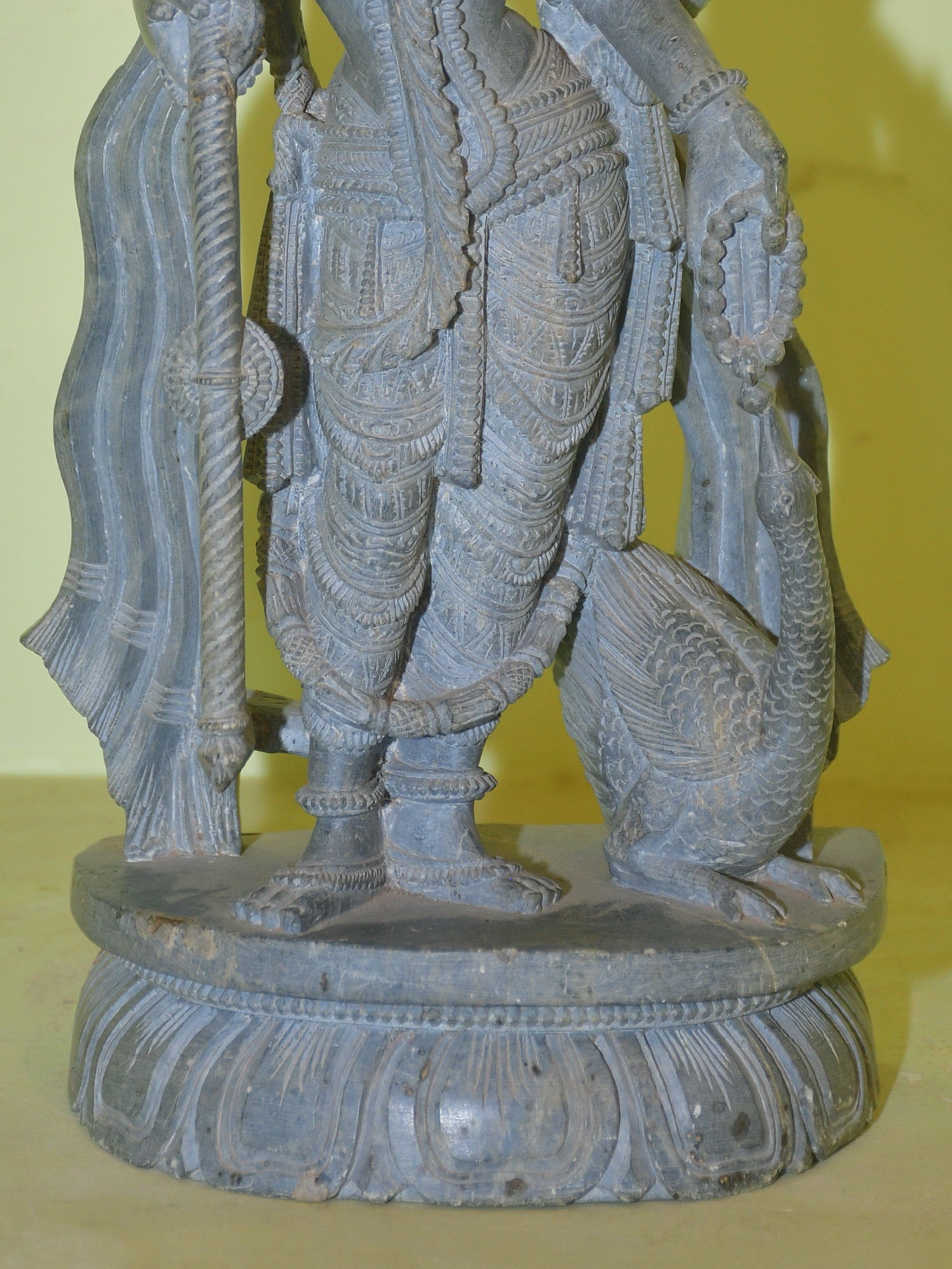 11" Lord Krishna Standing with Cow Playing Flute | Hand Carved Orissa Stone Statue | Excellent Indian Art