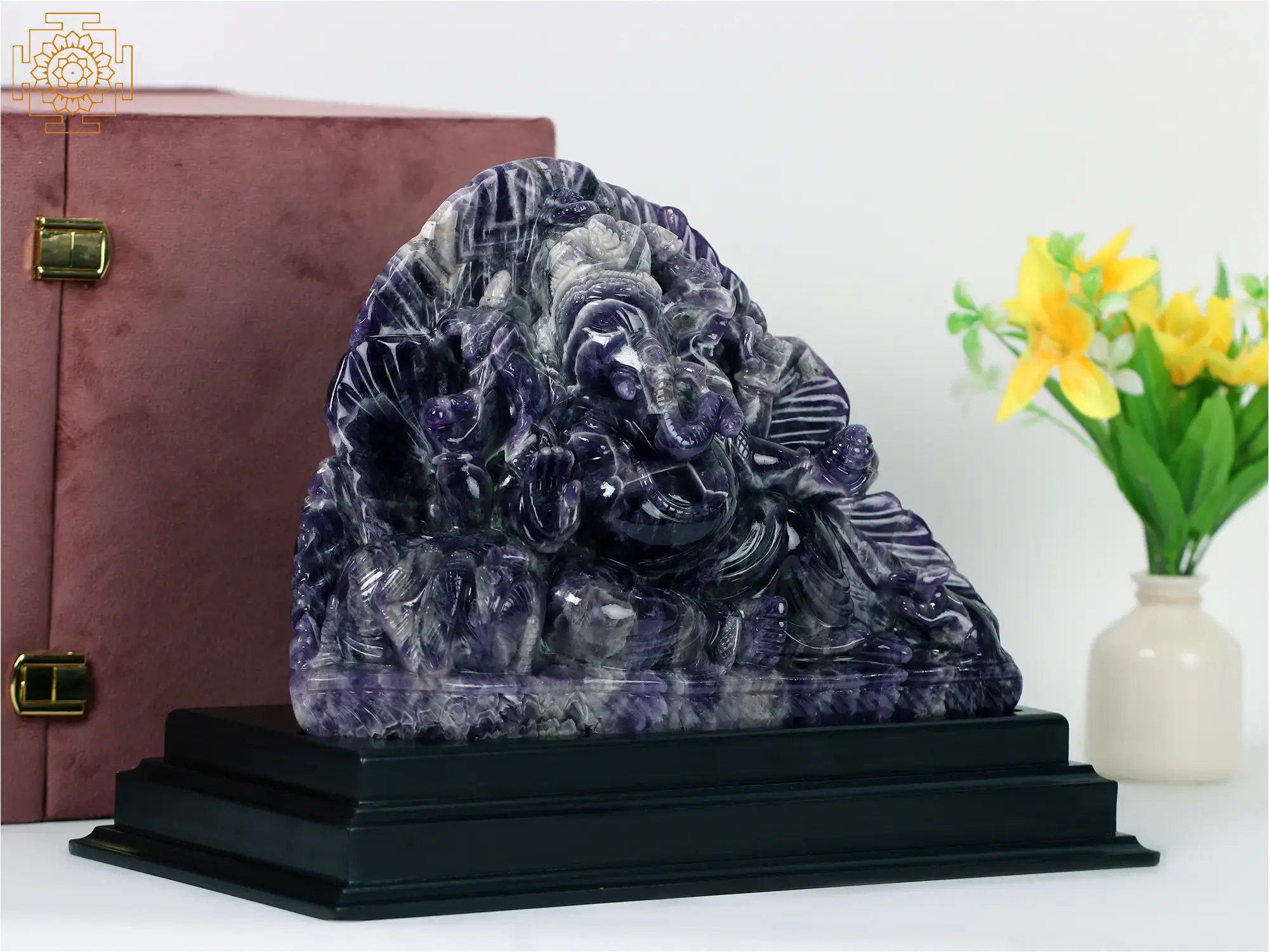 26" Chaturbhuja Lord Ganapati with Mushaka | Granite Stone Statue