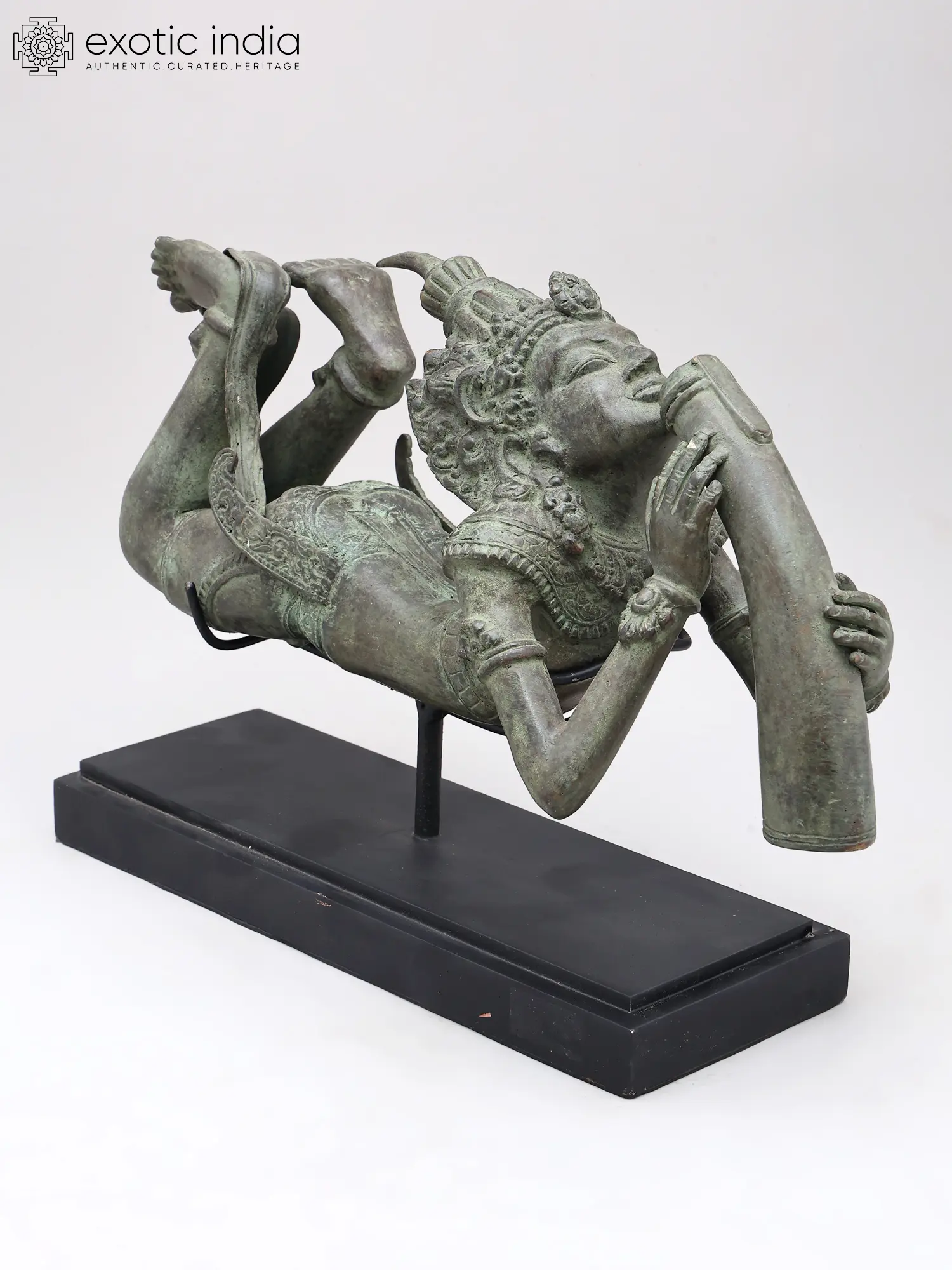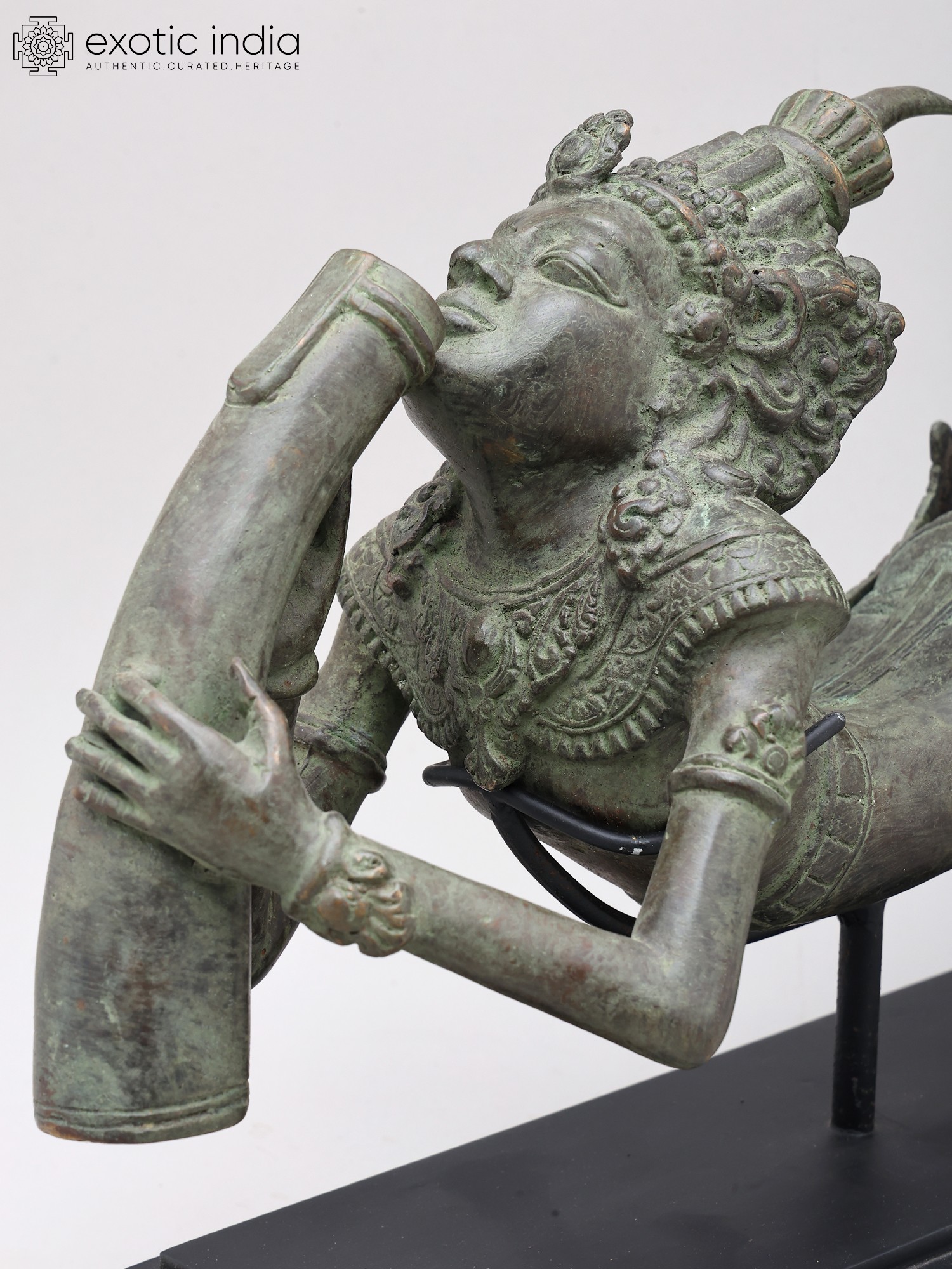 46" Large Goddess Parvati Bust on Wood Base | Balinese Brass Statue