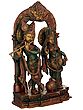 Each detail of this sculpture speaks volumes about the skill of the artisans who brought it to life. The intricate carvings on their garments, the delicate rendering of their jewelry, and the expressive faces all highlight the meticulous craftsmanship. The brass material lends a timeless quality to the piece, its warm, earthy tones enhancing the spiritual aura. The archway behind them, adorned with symbolic motifs, adds to the grandeur of the composition, framing the divine couple as if on a sacred stage. This sculpture is a perfect embodiment of the artistic traditions that have flourished in India for centuries, passed down through generations of skilled craftspeople. Bringing this piece into your home is akin to inviting a piece of Indian artistry and spirituality into your sacred space. ––––––––––