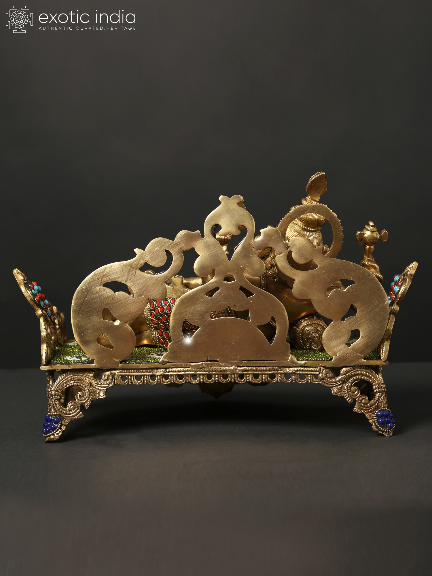This representation expands the understanding of Ganesha beyond the usual active forms, offering a contemplative aspect, reflecting the deity's multifaceted nature, and imparting a message of inner serenity amidst life's complexities. This Relaxing Lord Ganesha Brass Statue with Inlay Work is a tribute to the benevolent and calm image of Lord Ganesha. The beautiful inlay work enhances the look of the statue and it is believed that placing the statue at home brings peace and tranquility.