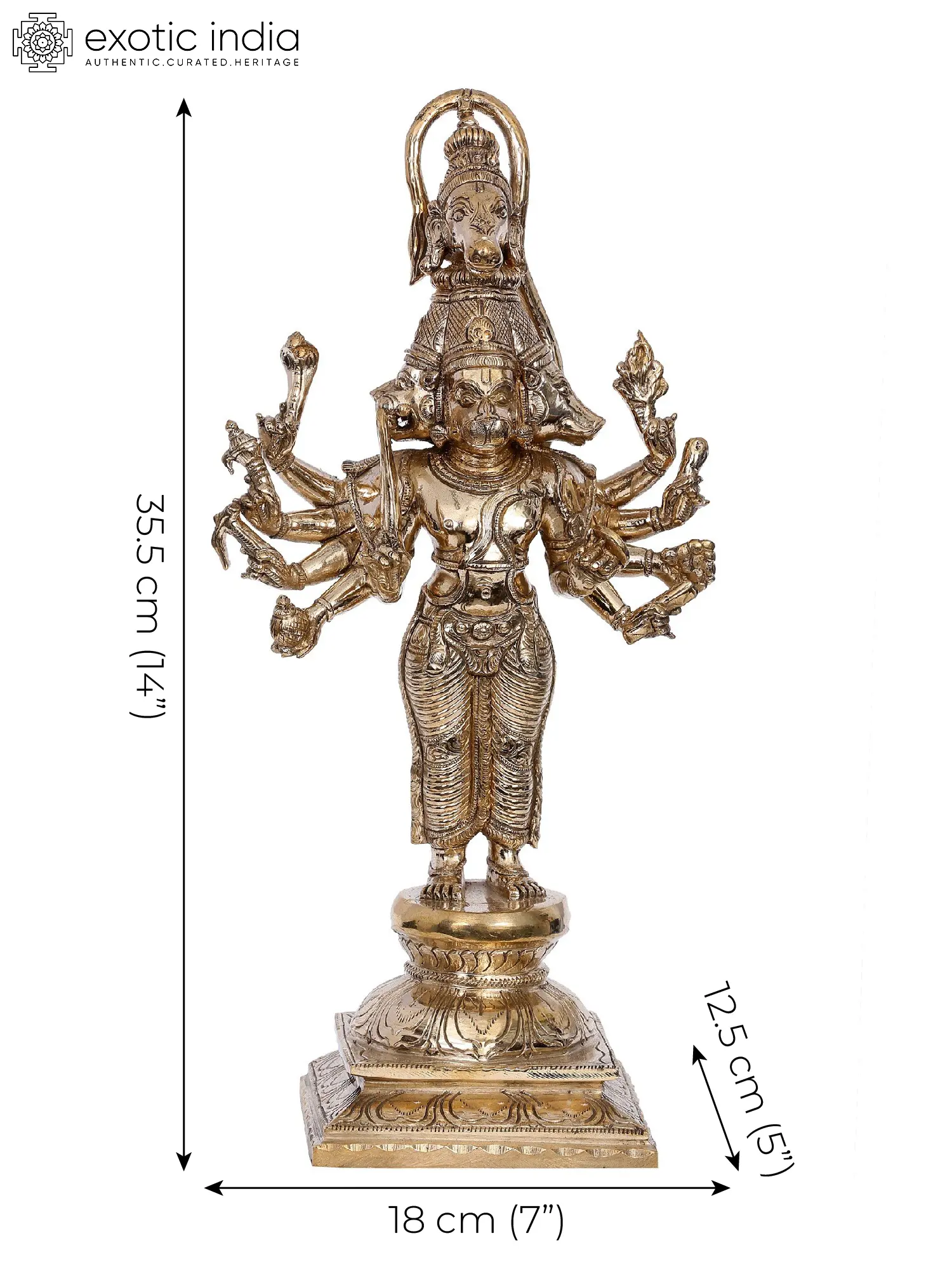 14" Bronze Standing Panchamukhi Hanuman Idol | Handmade | Madhuchista Vidhana (Lost-Wax) | Panchaloha Bronze from Swamimalai