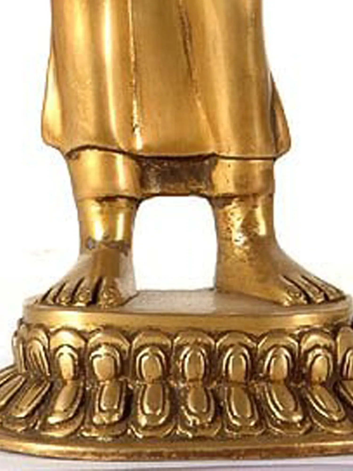 14" Standing Thai Buddha In Brass | Handmade | Made In India