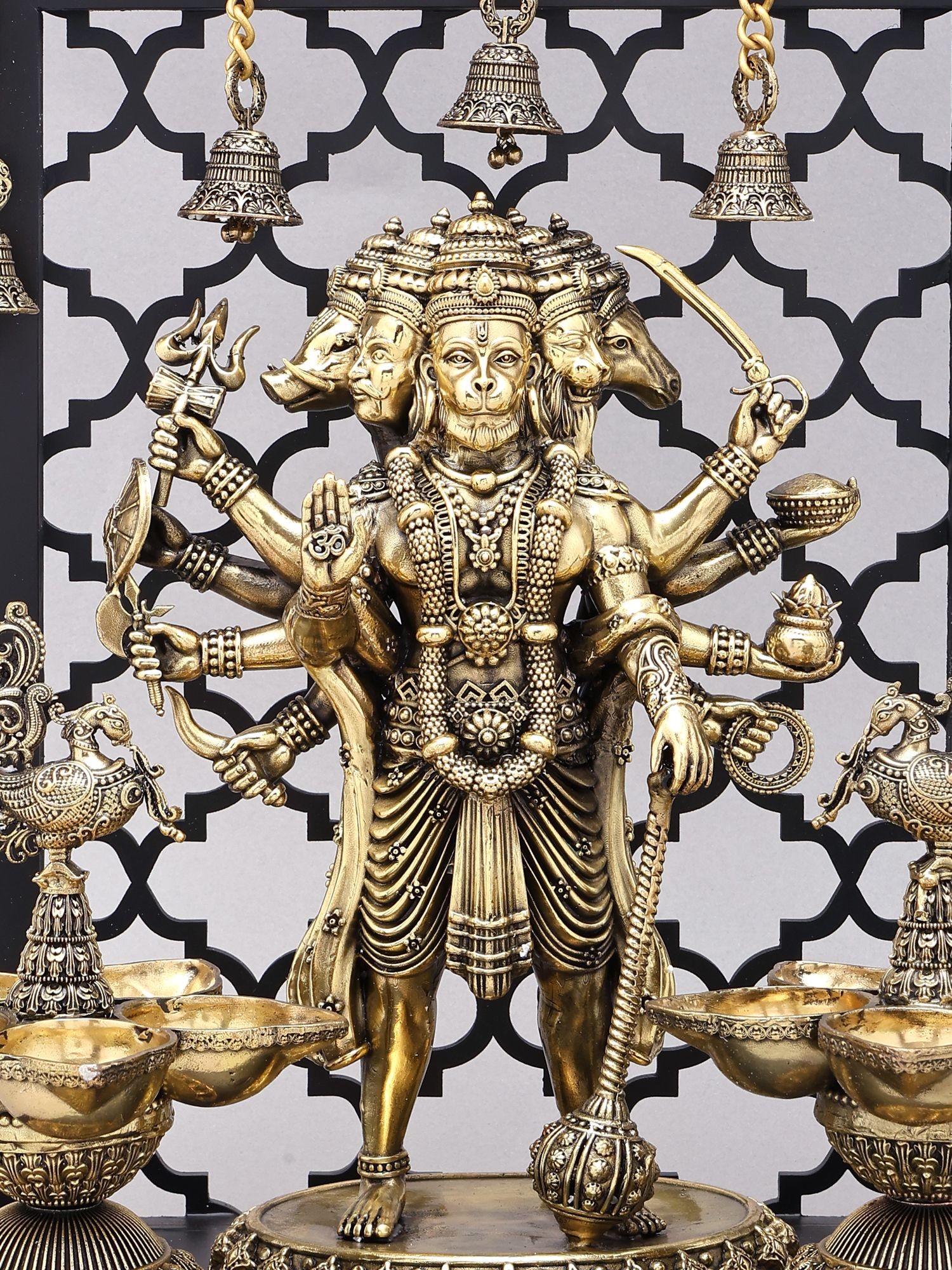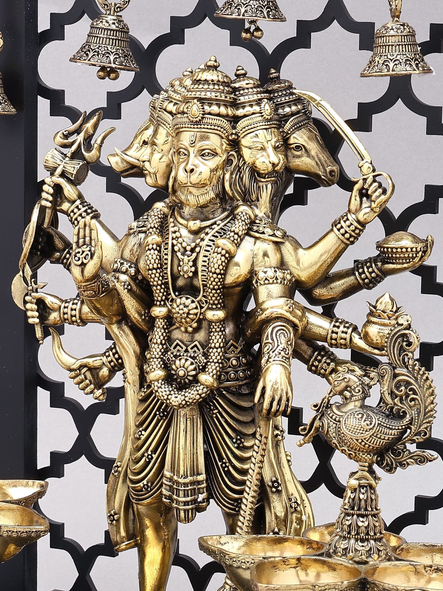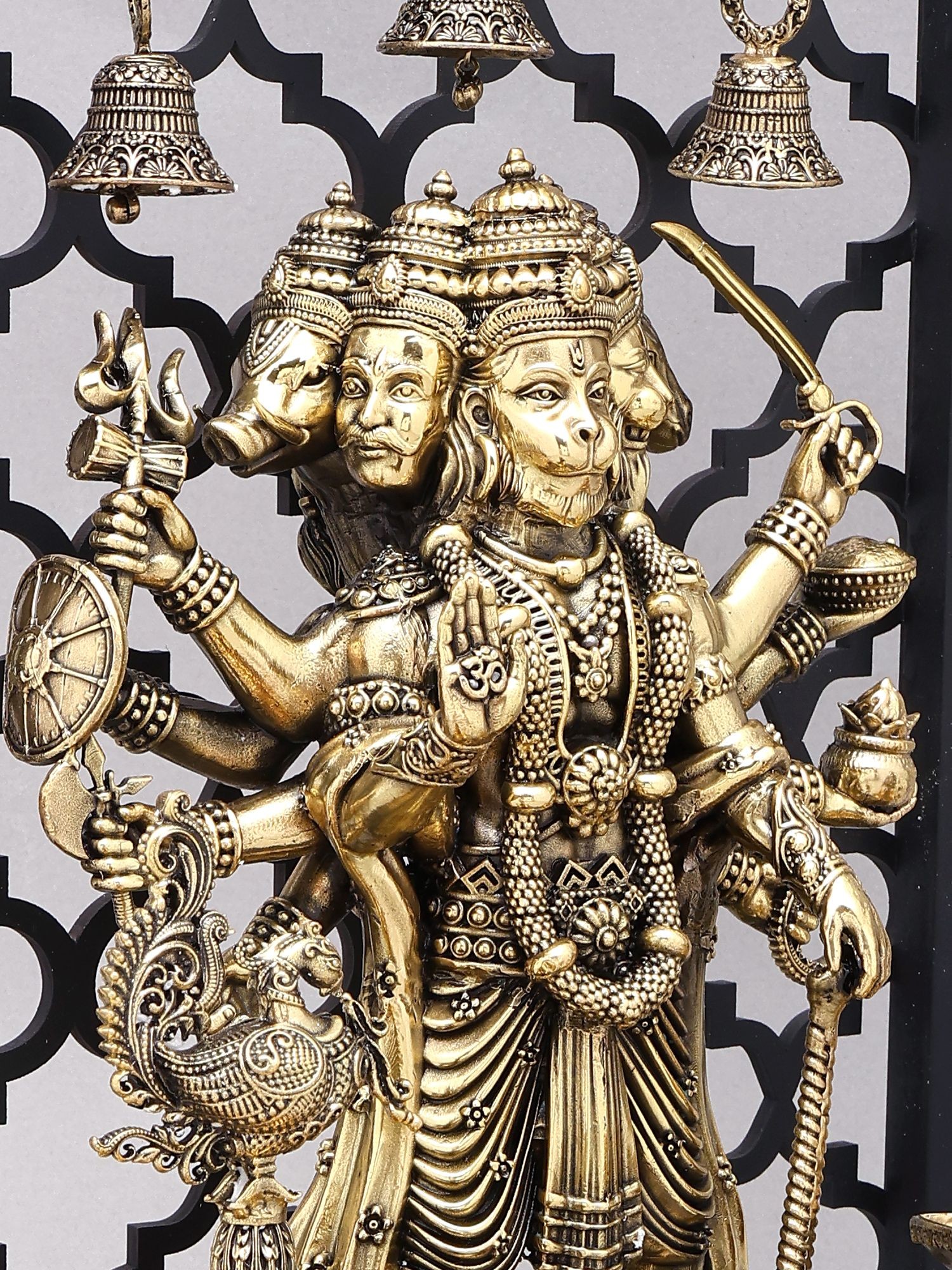 Divine Panchamukhi Hanuman Brass Wall Hanging with Bells