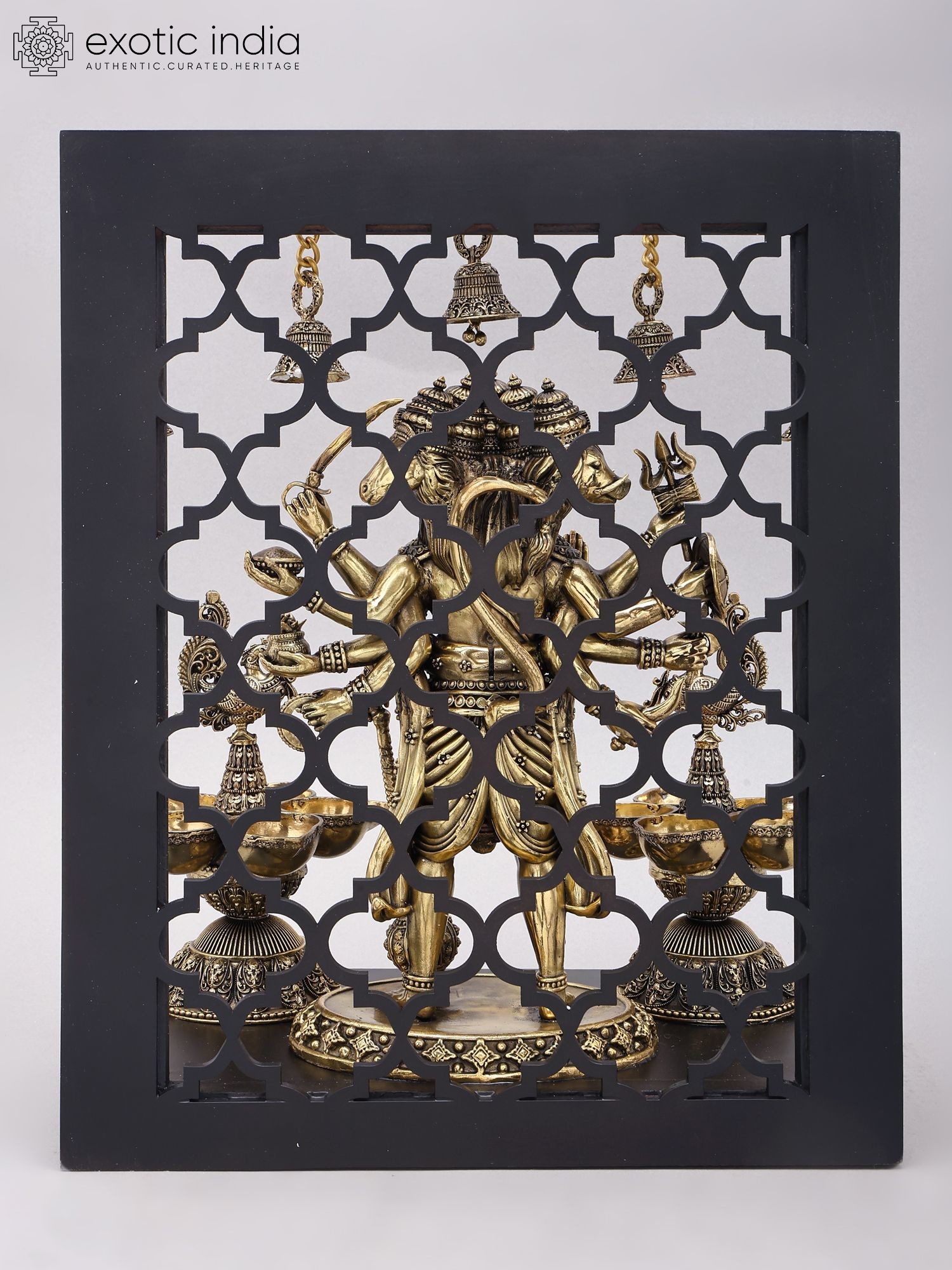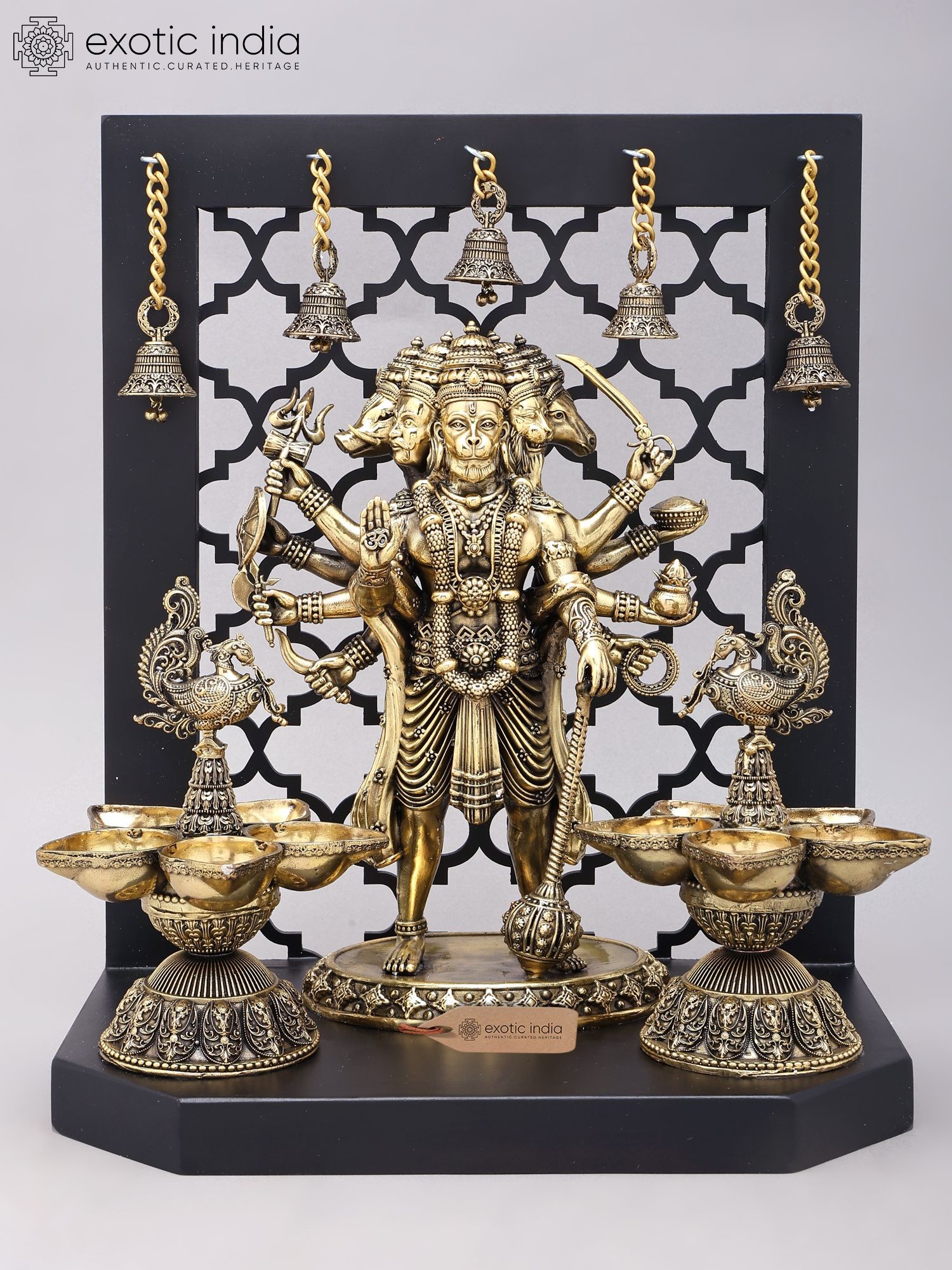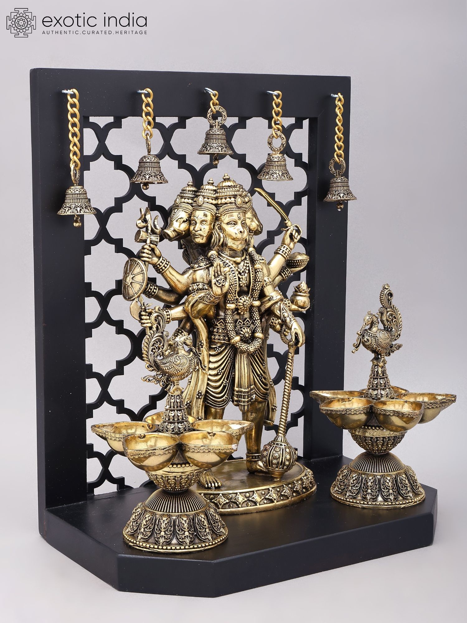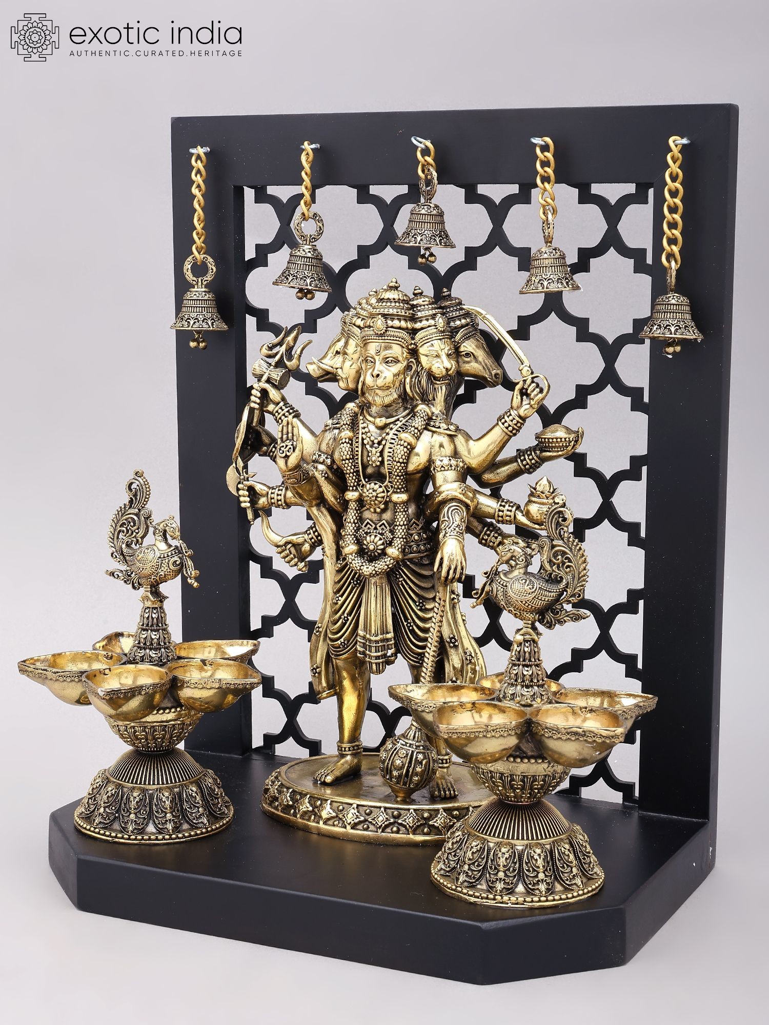 Divine Panchamukhi Hanuman Brass Wall Hanging with Bells