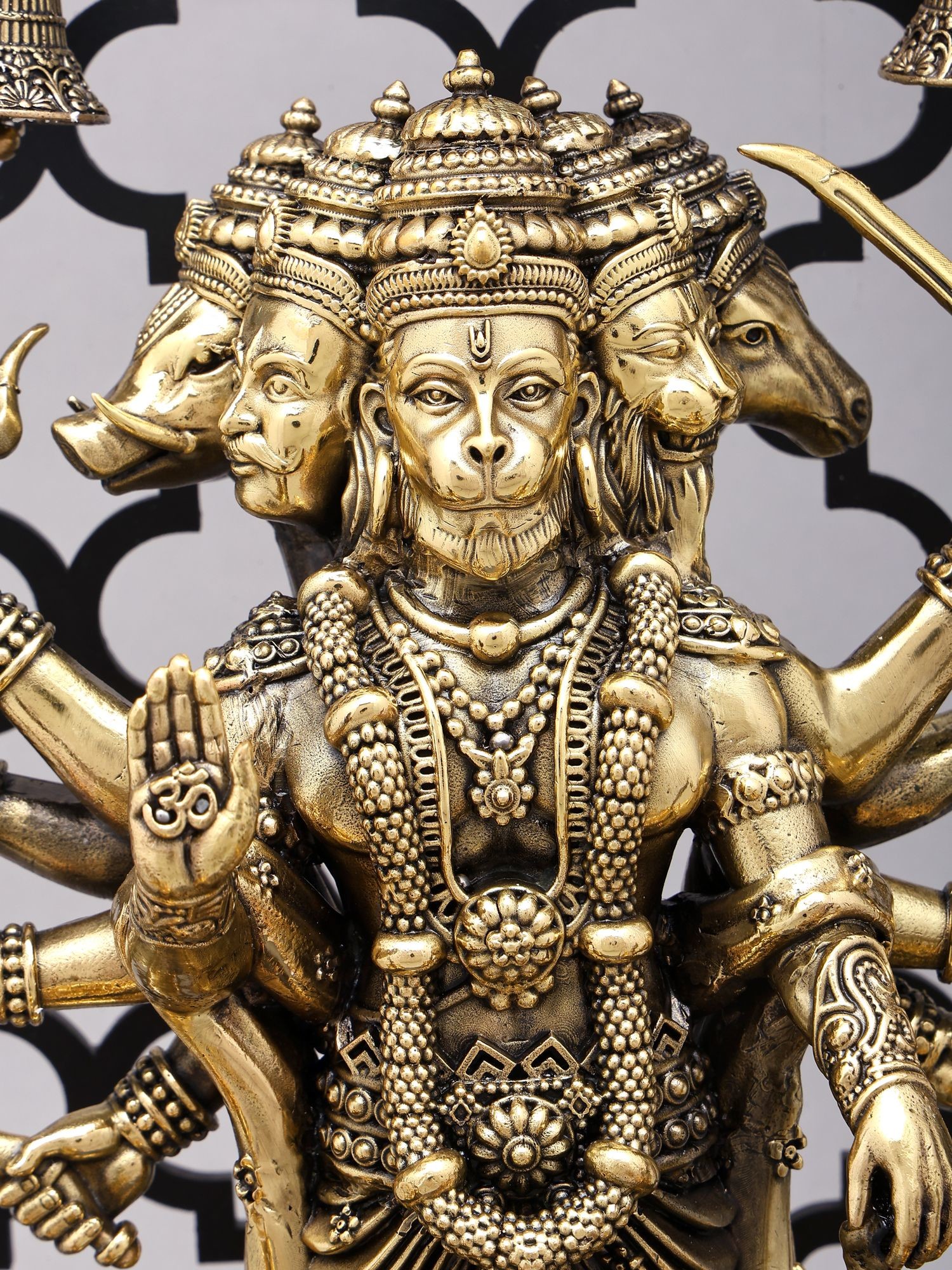 13" Panchamukhi Hanuman Brass Sculpture | Handmade Statue | Made in India
