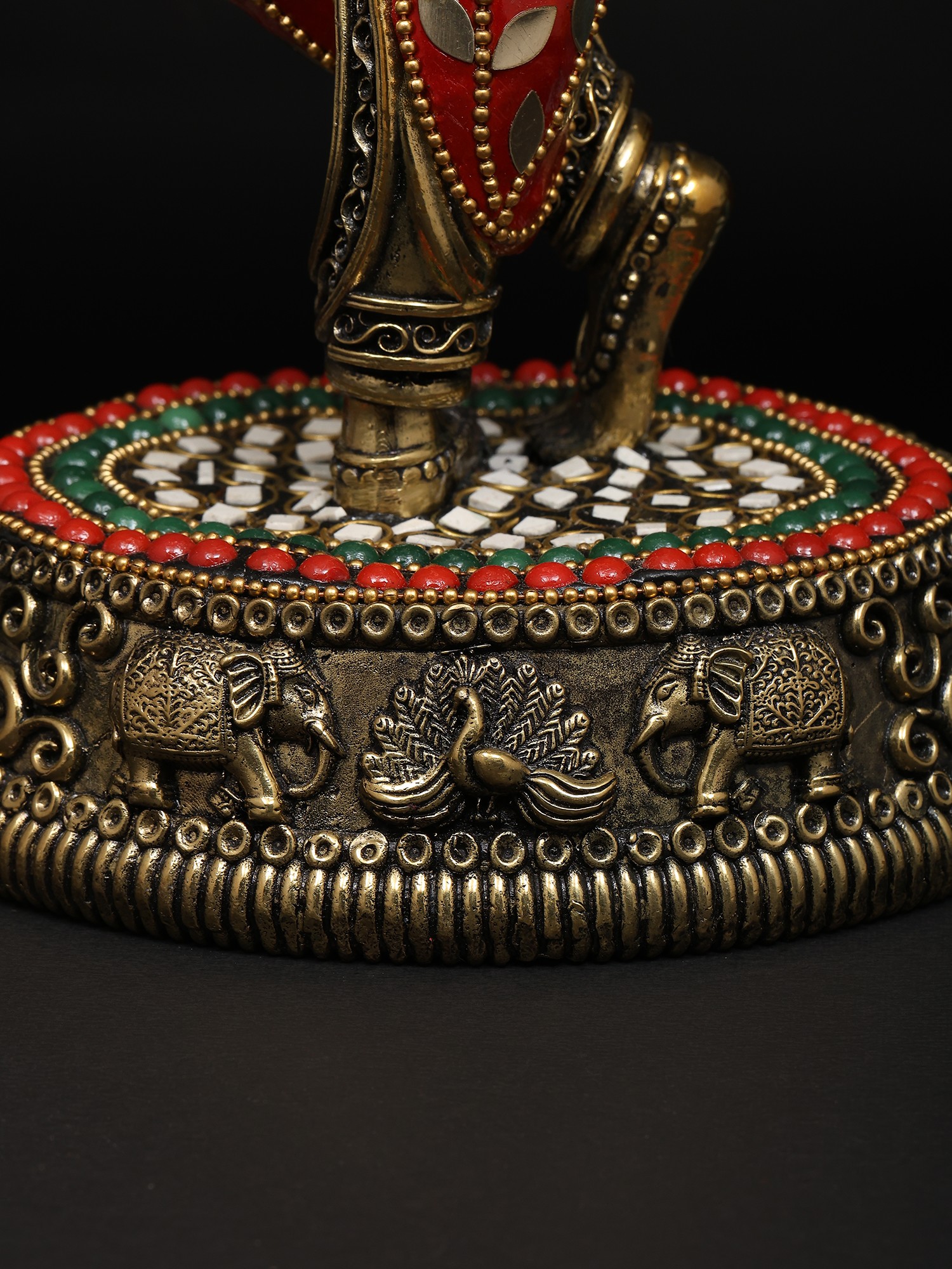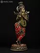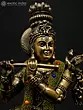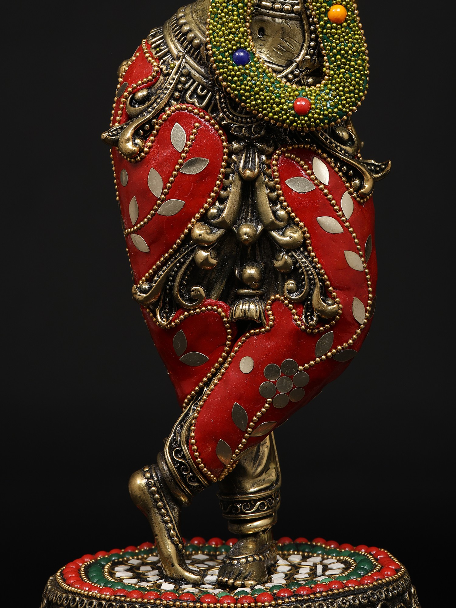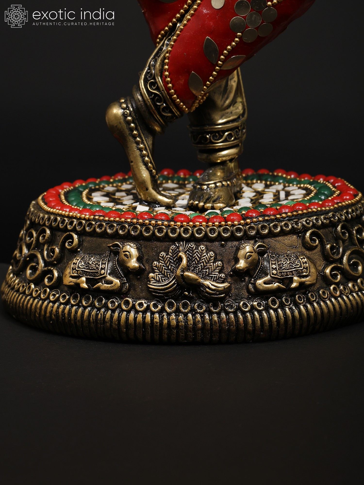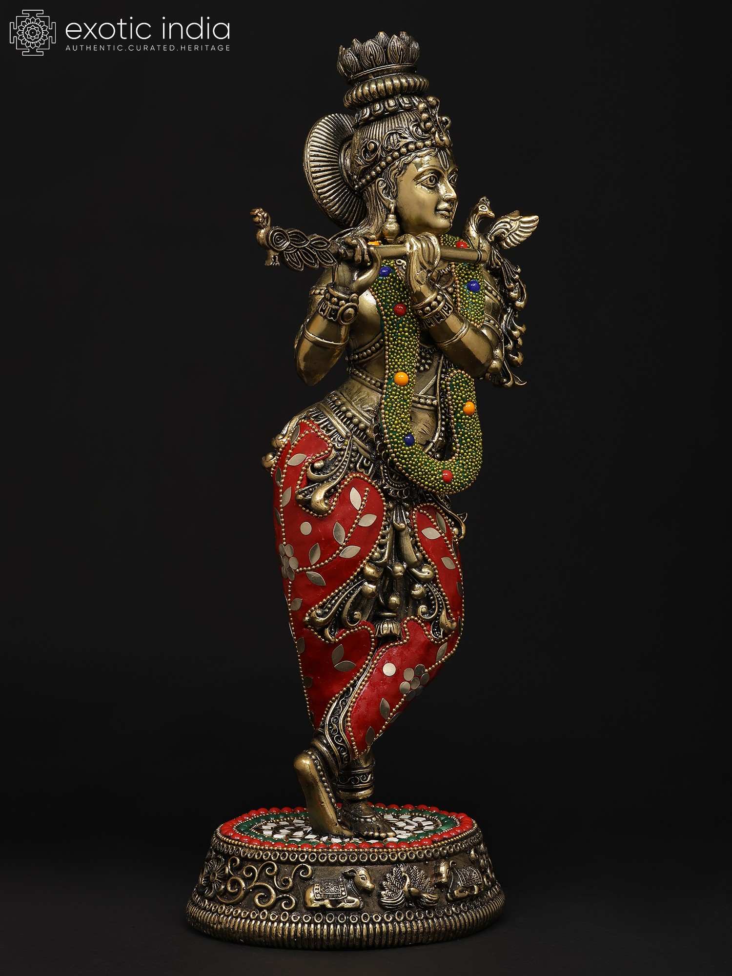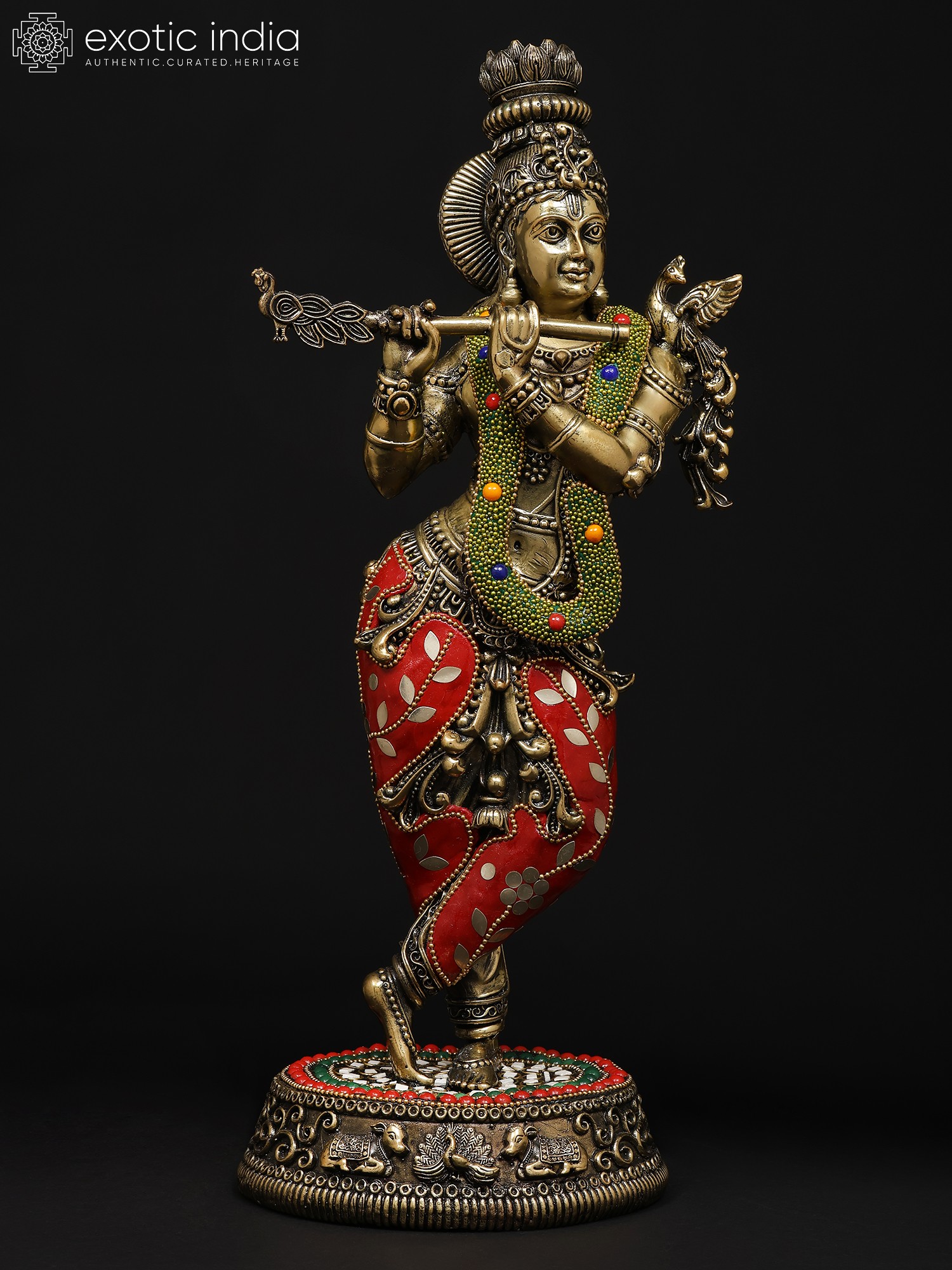 17" Brass Lord Krishna Playing Flute on Lotus Pedestal