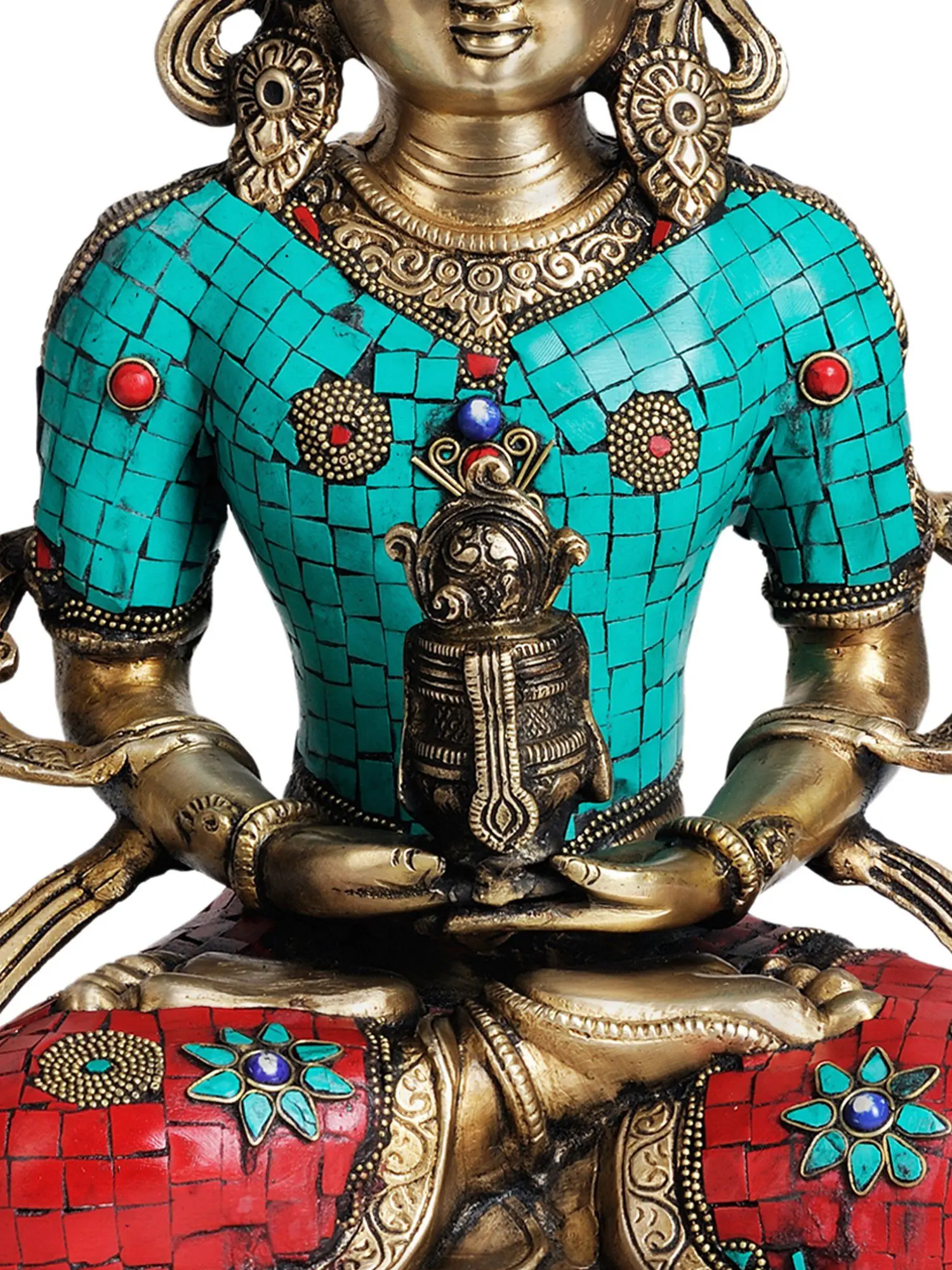 14" Tibetan Buddhist Deity- Amitabha Buddha (with inlay Work) In Brass | Handmade | Made In India