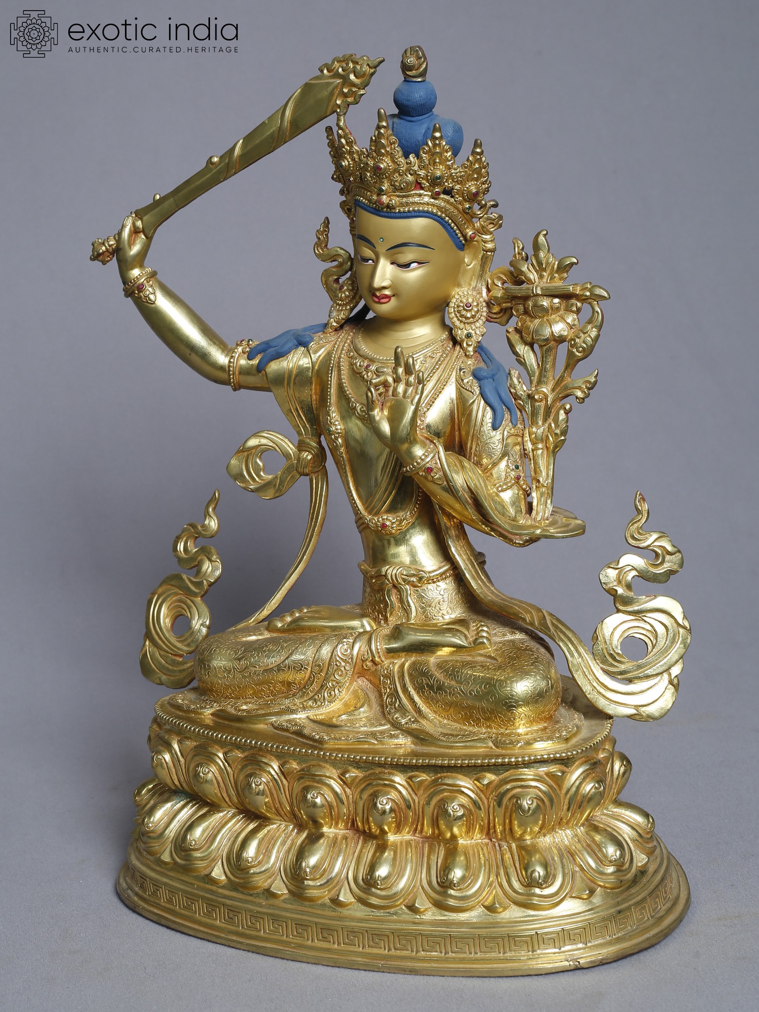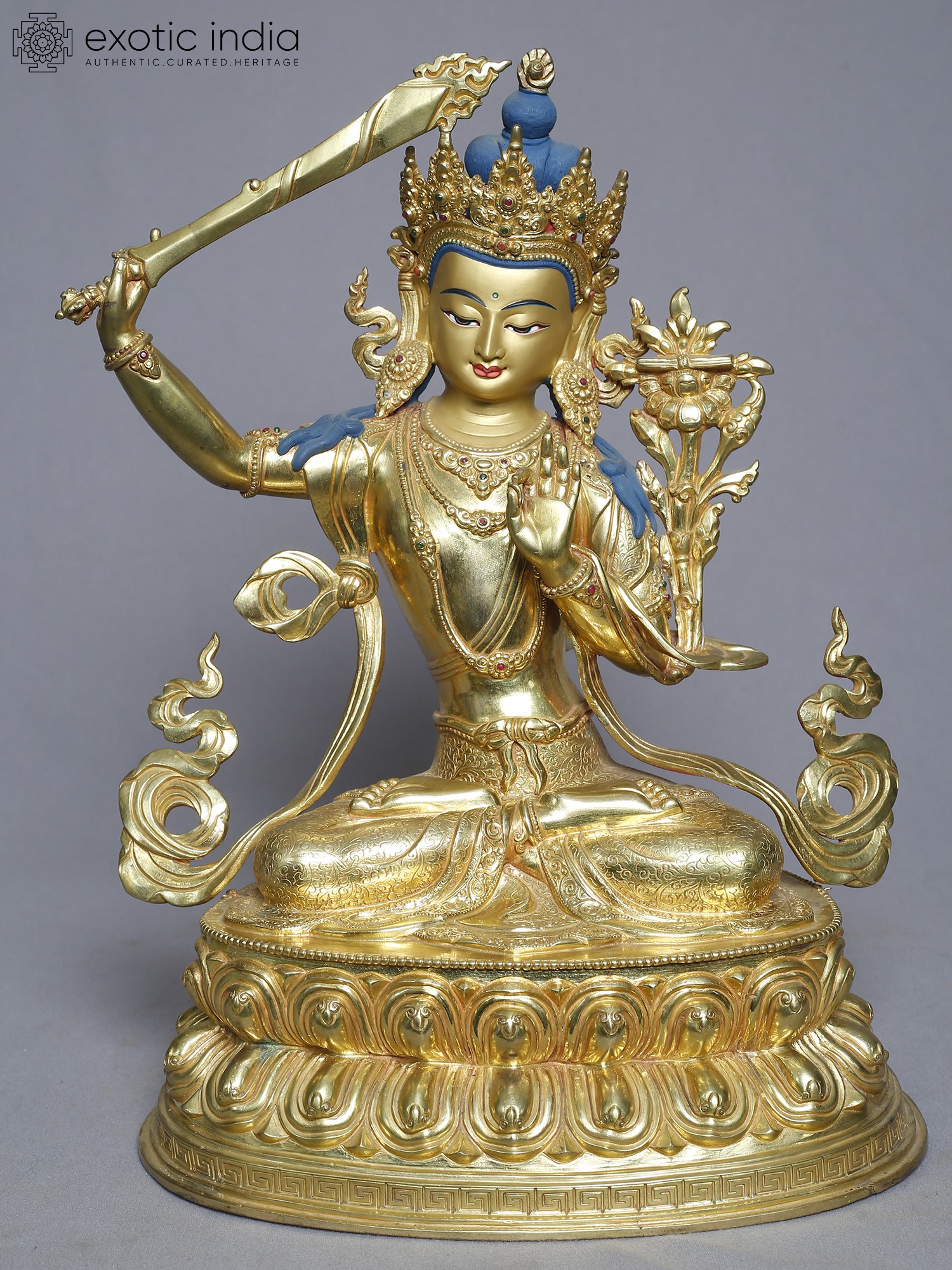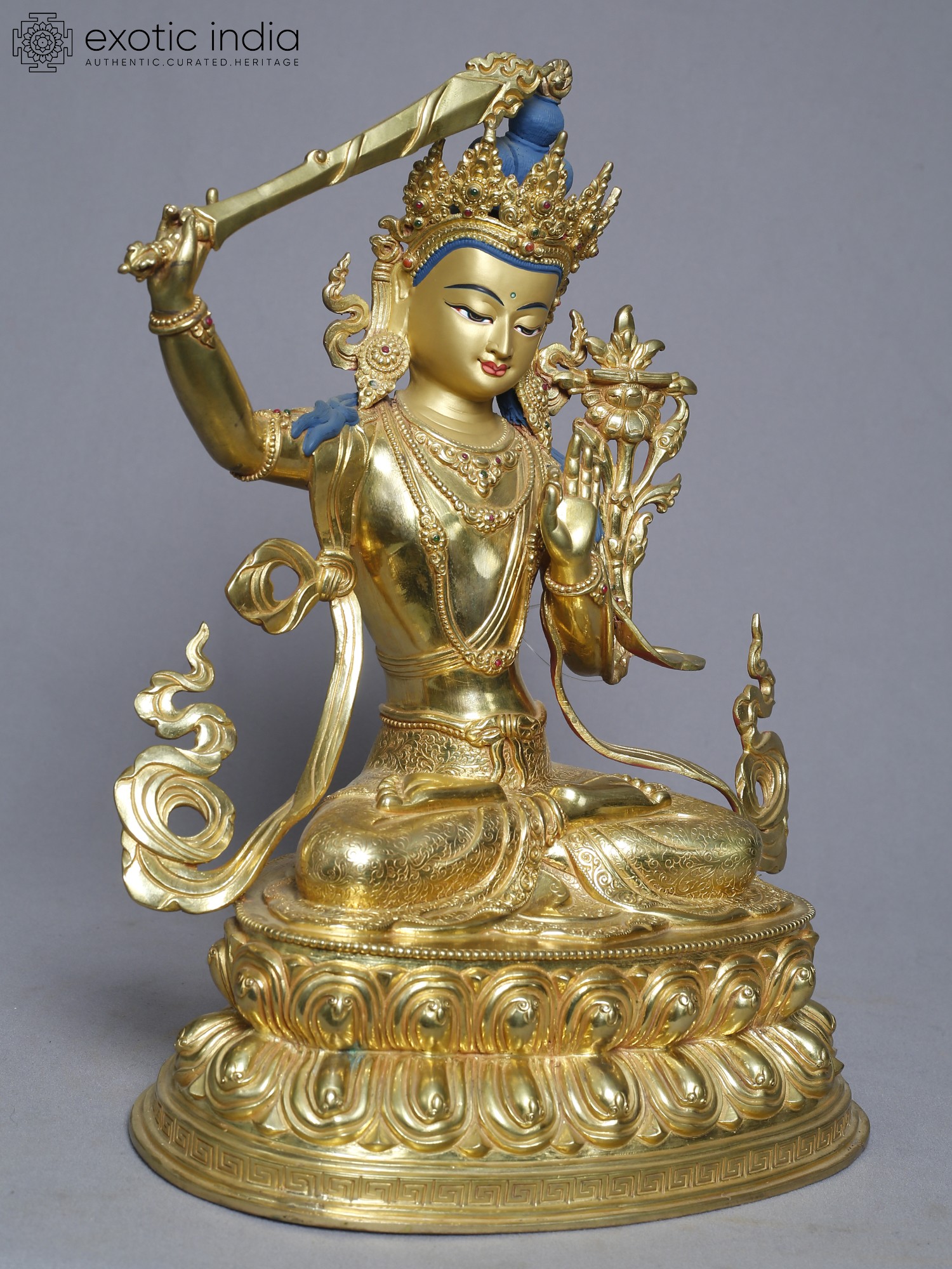 13" Manjushri Copper Statue from Nepal | Tibetan Buddhist Deity Idols