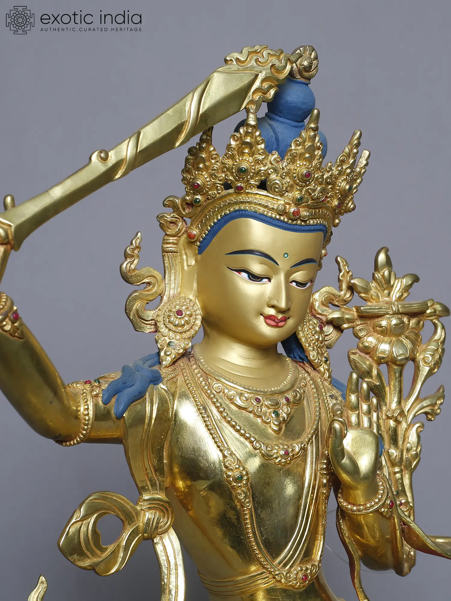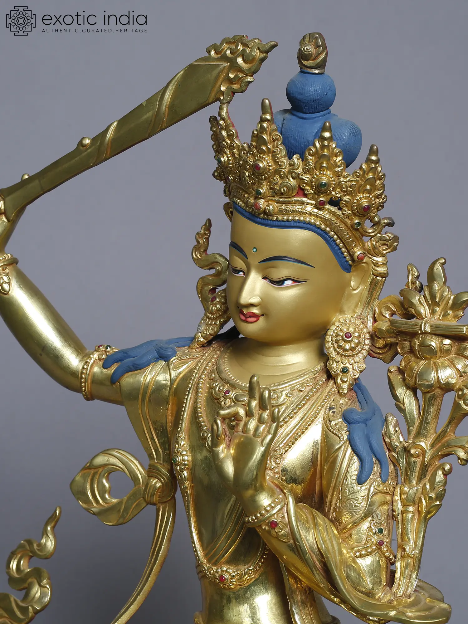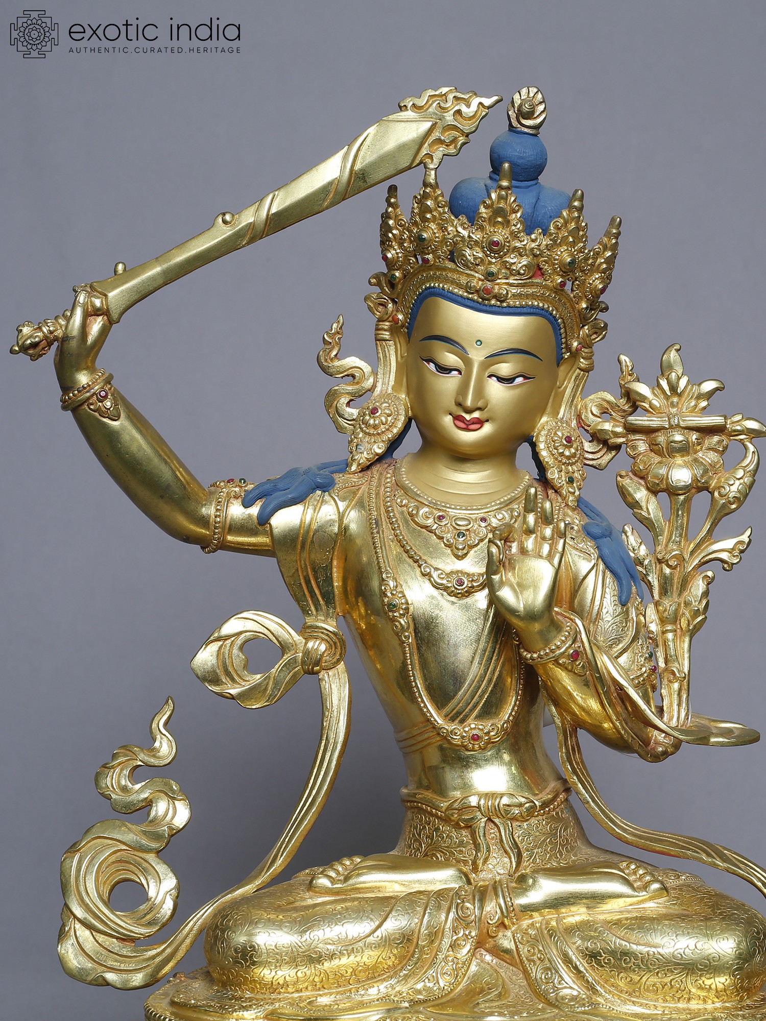 13" Manjushri Copper Statue from Nepal | Tibetan Buddhist Deity Idols