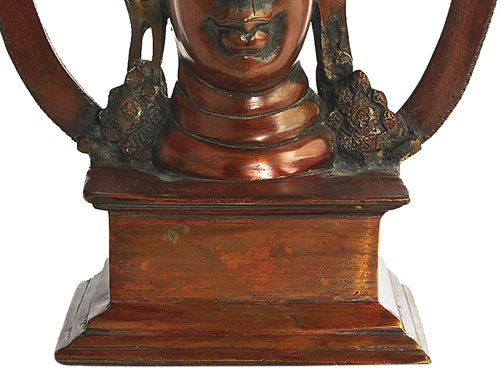 Handmade in India by skilled artisans, this sculpture is a testament to the rich tradition of brass craftsmanship. The attention to detail is evident in the carefully sculpted features, the intricate details of the headdress, and the smooth, polished finish that highlights the natural luster of the brass. The face is serene, reflecting the inner peace and wisdom associated with Shiva. The piece radiates a sense of profound spirituality and artistic dedication.