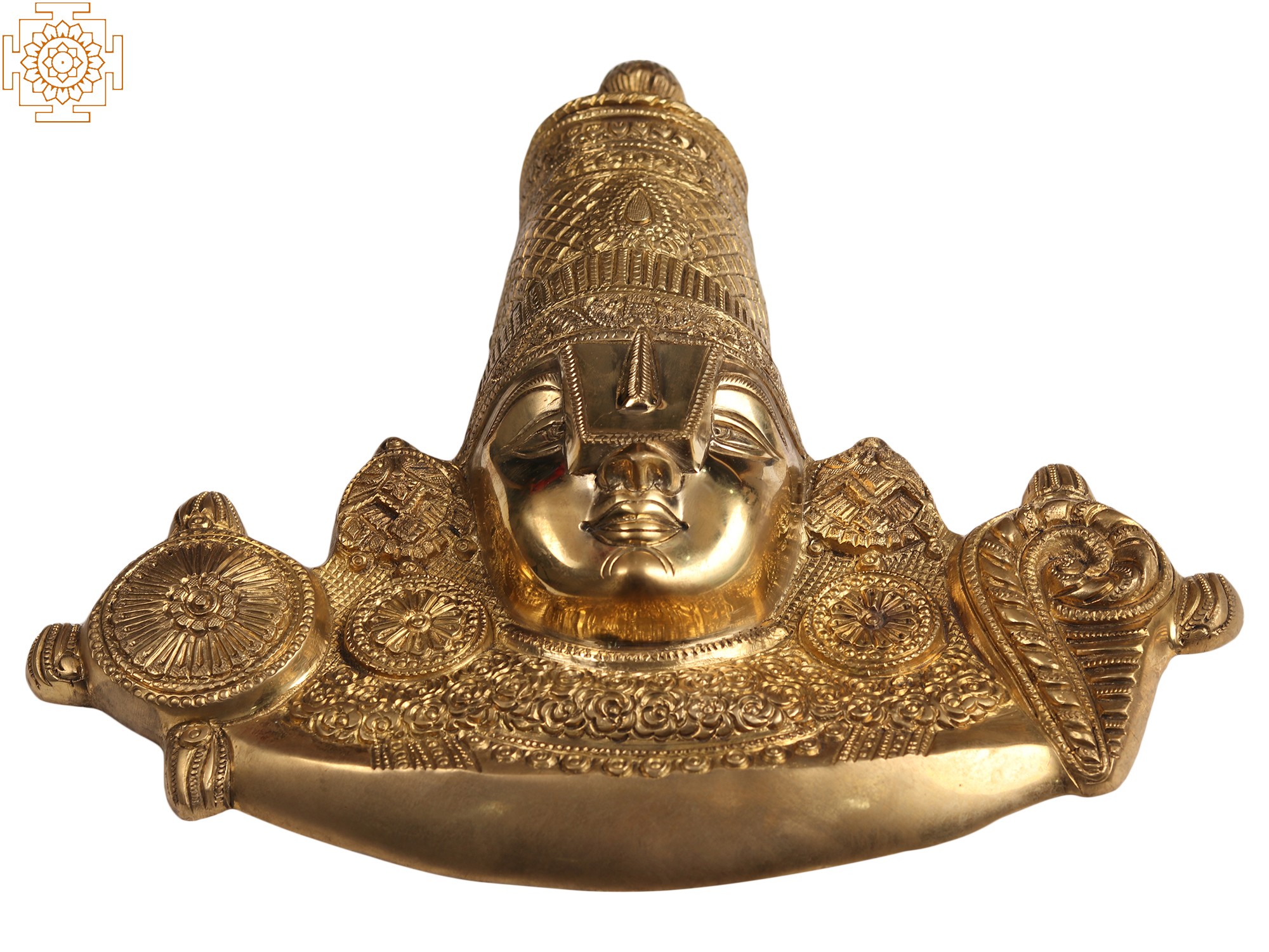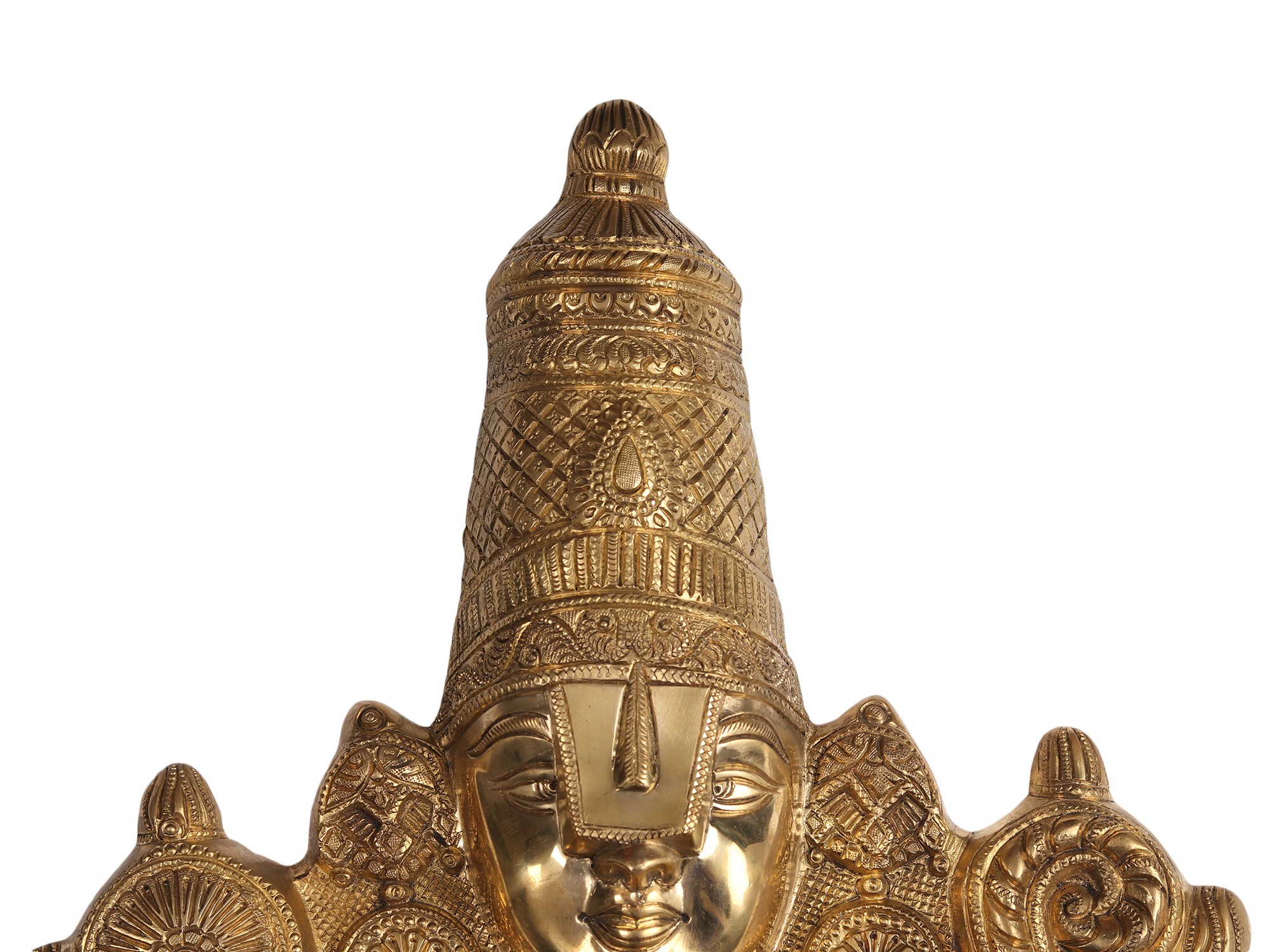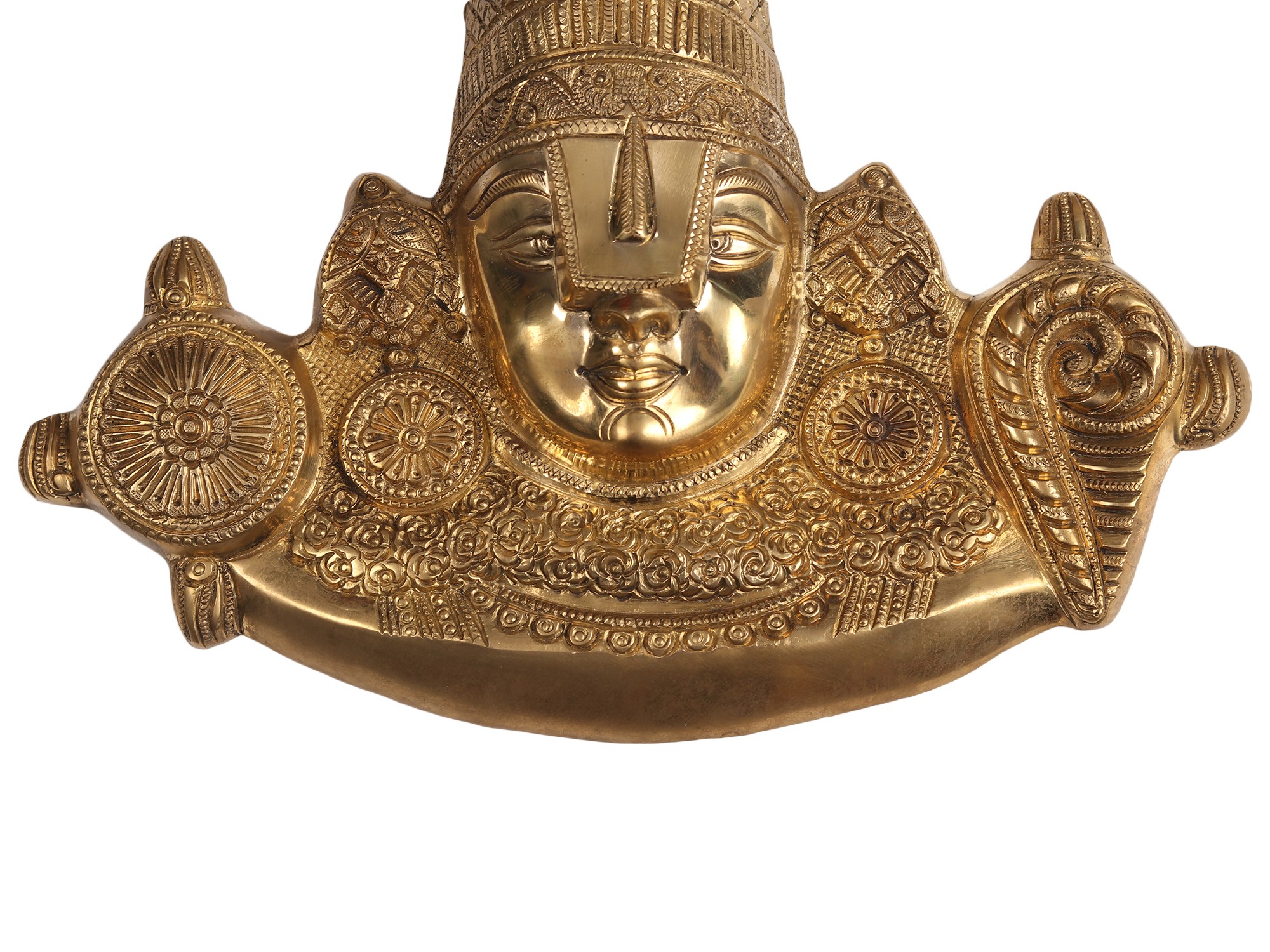 The beautiful transcendental form of Lord Venkateshwara Balaji is unique in so many ways. He stands bearing four arms holding a conch shell (Panchajanya) and a disc (Sudarshan Chakra) in His upper hands. While His lower arms are in different mudras to bless His devotees. He is elaborately decorated with several ornaments that look immensely beautiful. But there is something very interesting about His eyes. His forehead bears a white huge mark or Tilak known as Urdhva Pundra that covers most parts of His eyes. The reason behind this is often given that the devotees who come to take the Darshan of Lord Balaji cannot withstand the effulgence coming out of His glorious eyes and therefore the white mark or mask covers His eyes.