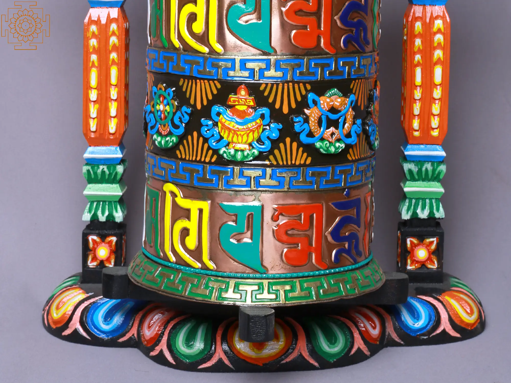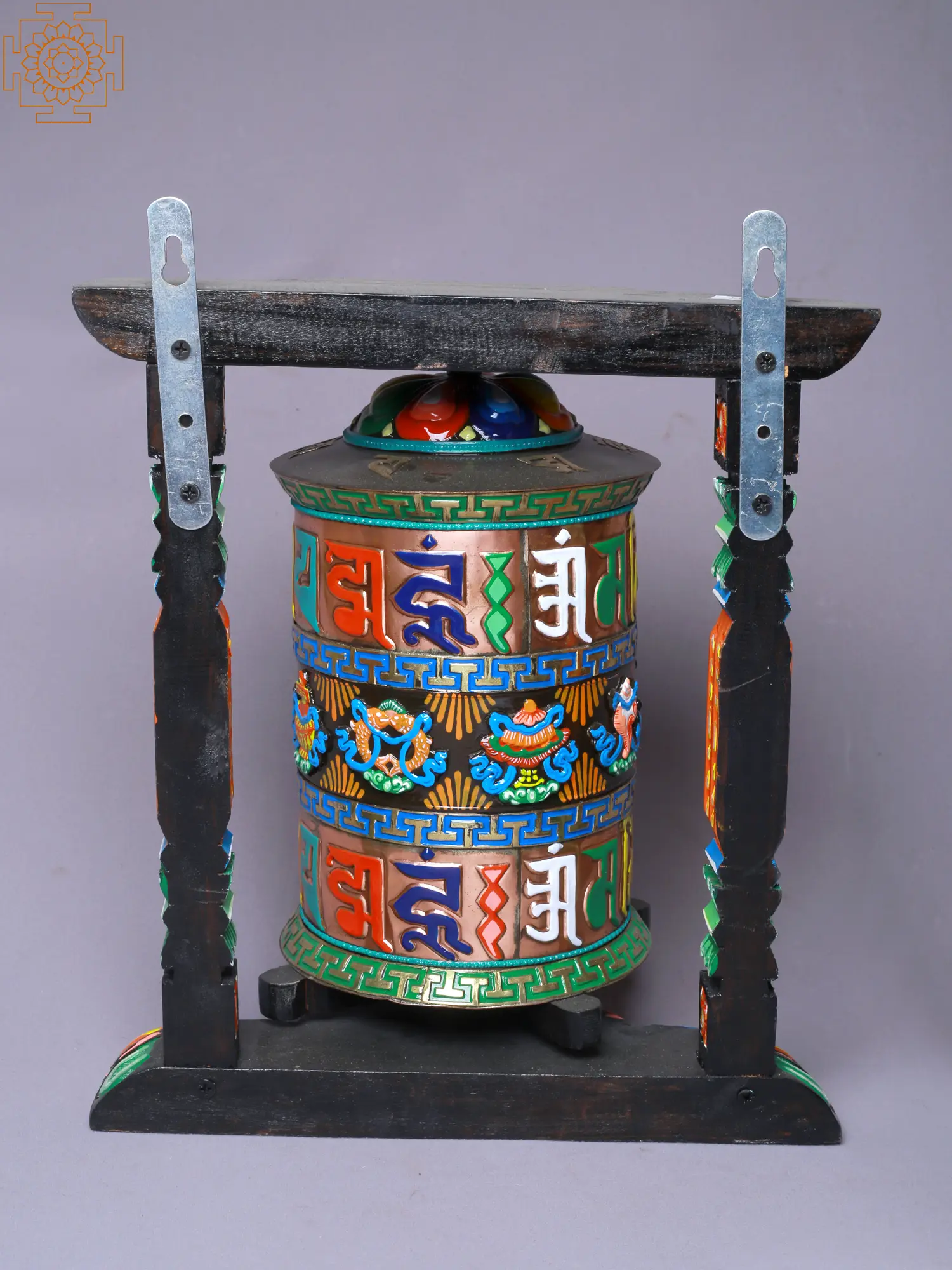 7" Brass Prayer Wheel with Dharma-chakra (Ashtamangala) | Handmade | Made in India