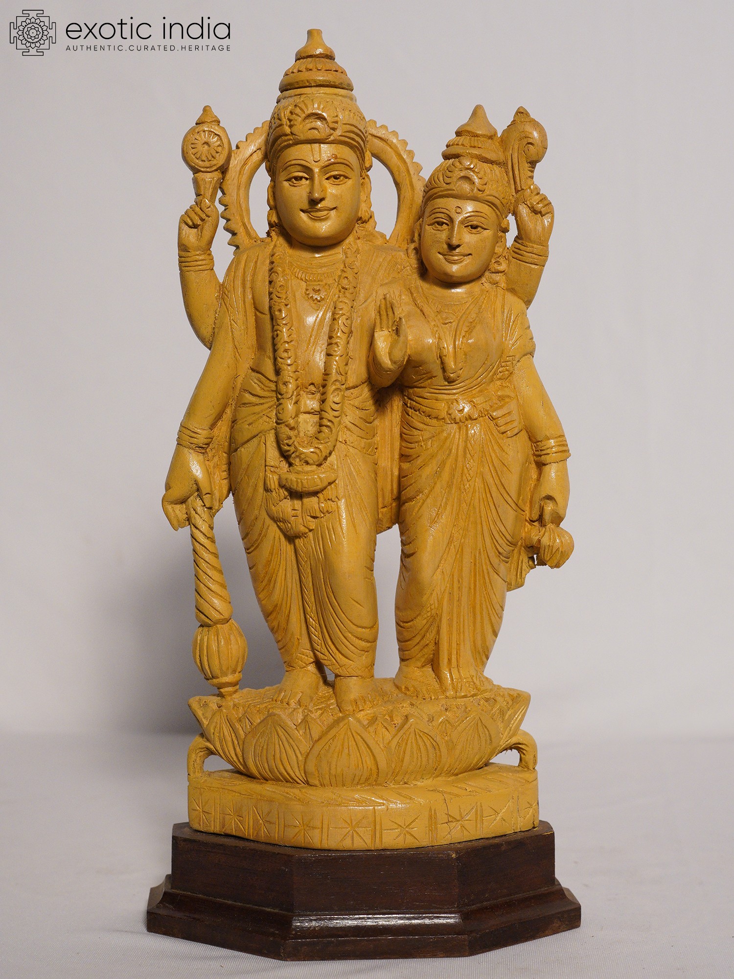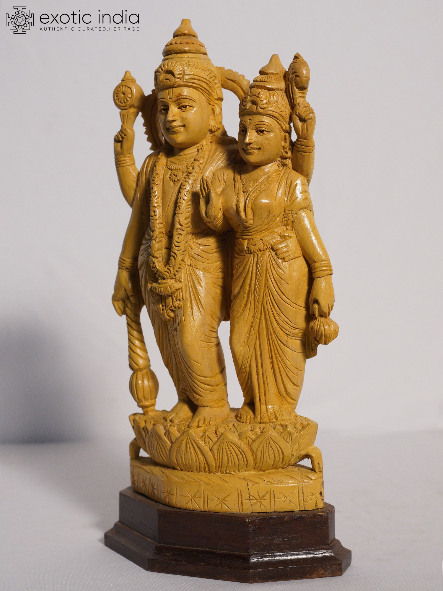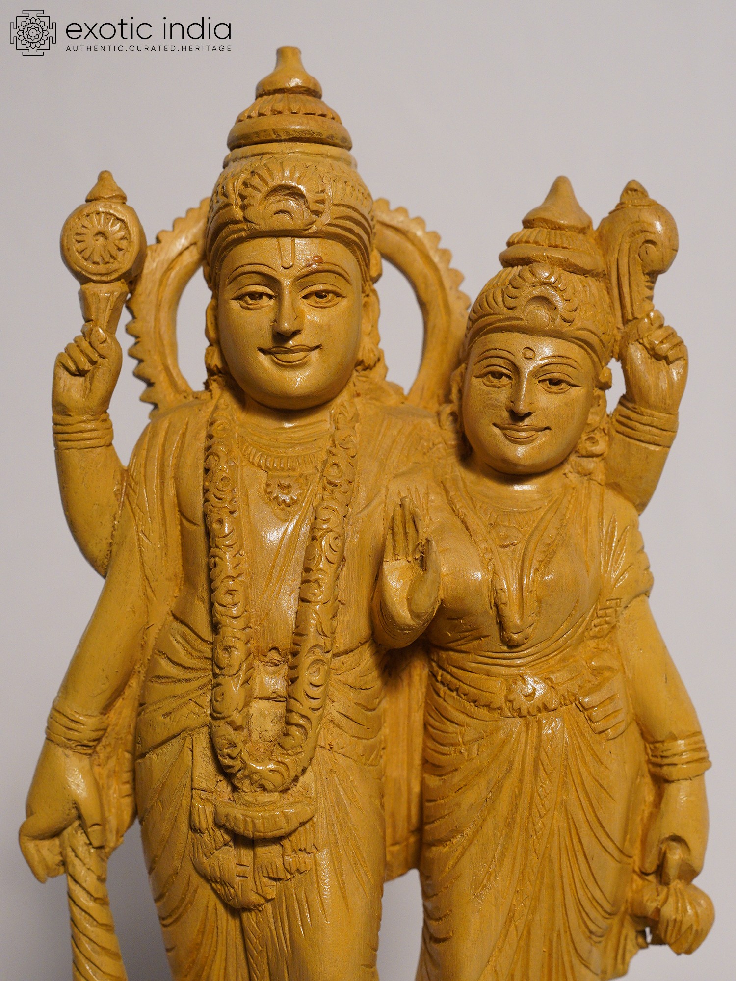 16'' Lakshmi Narayana Seated Together | Wooden Statue
