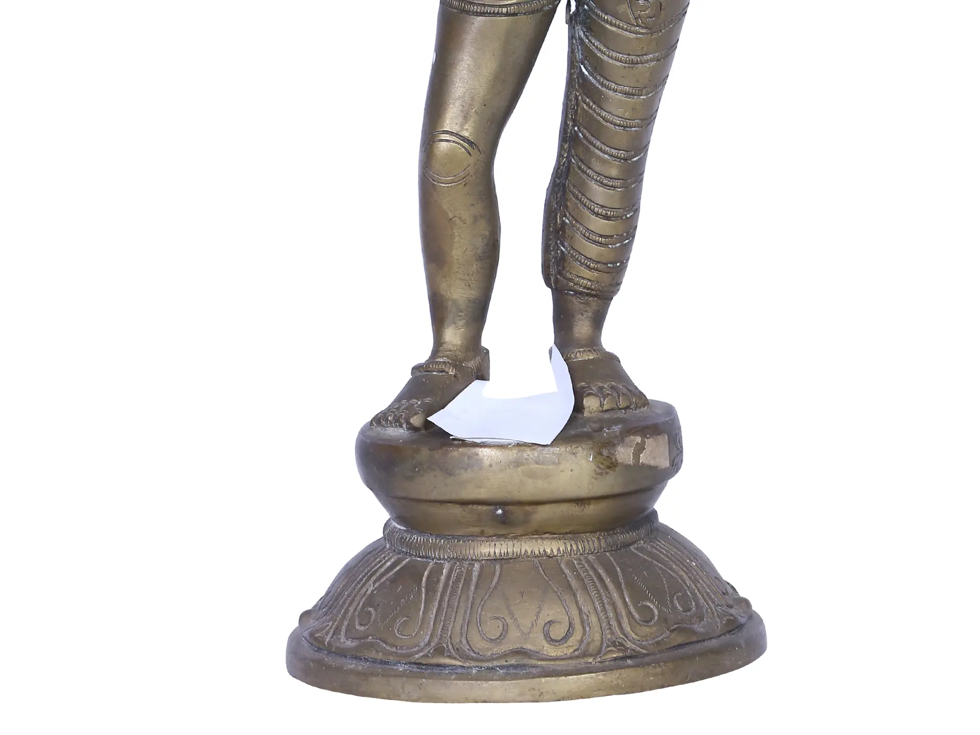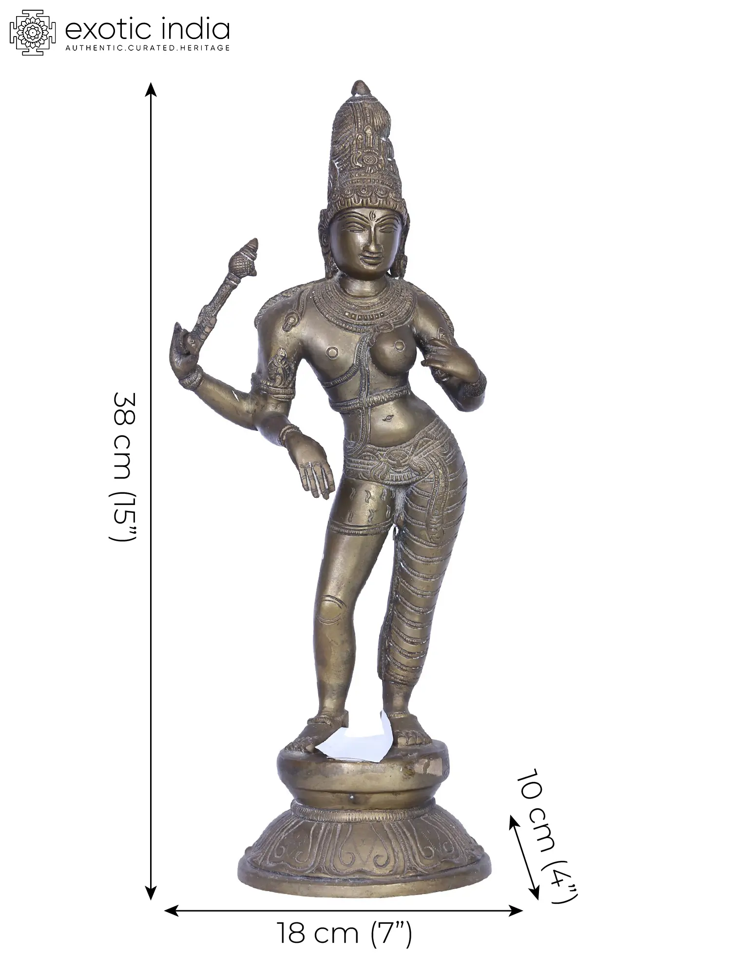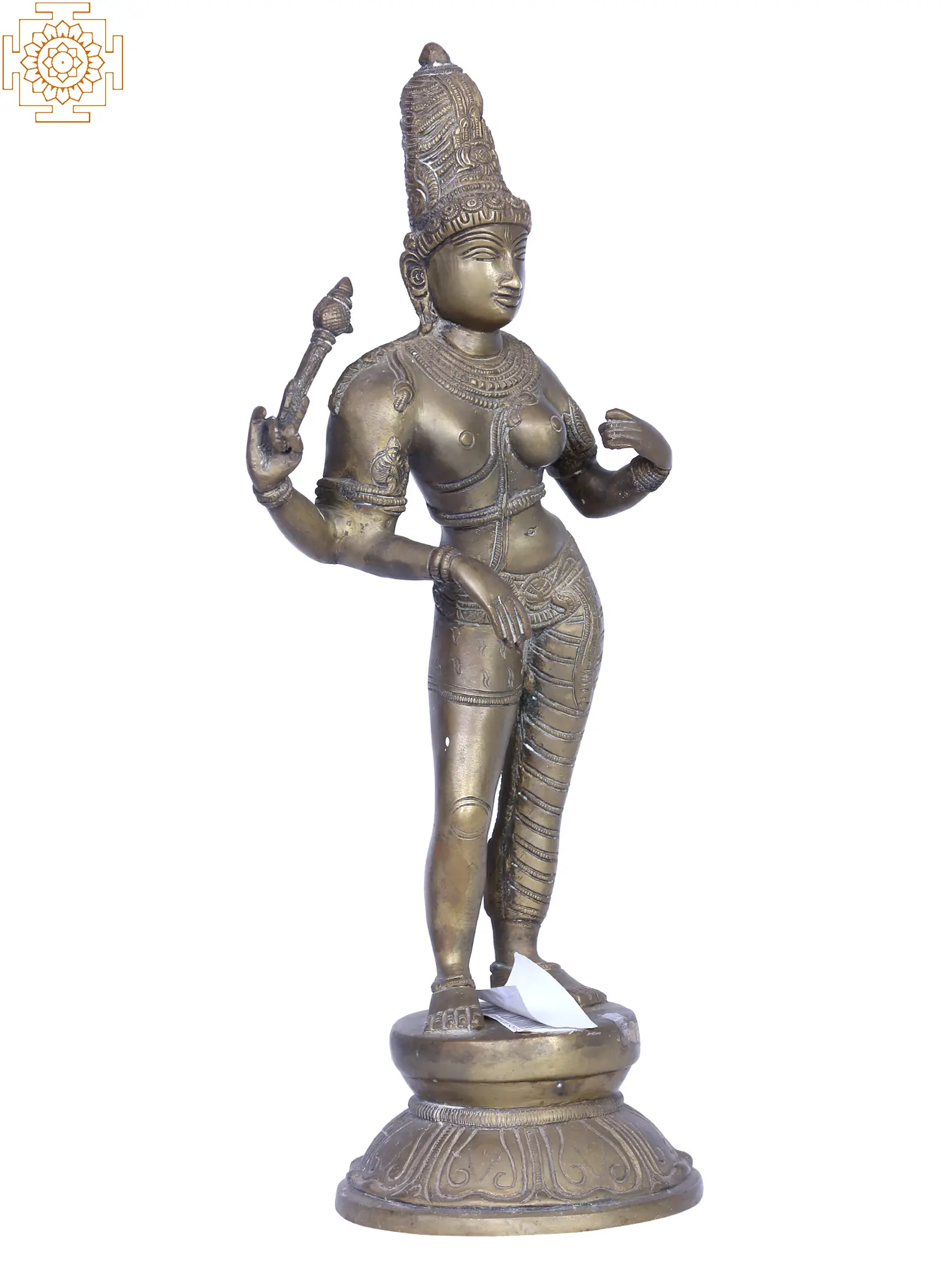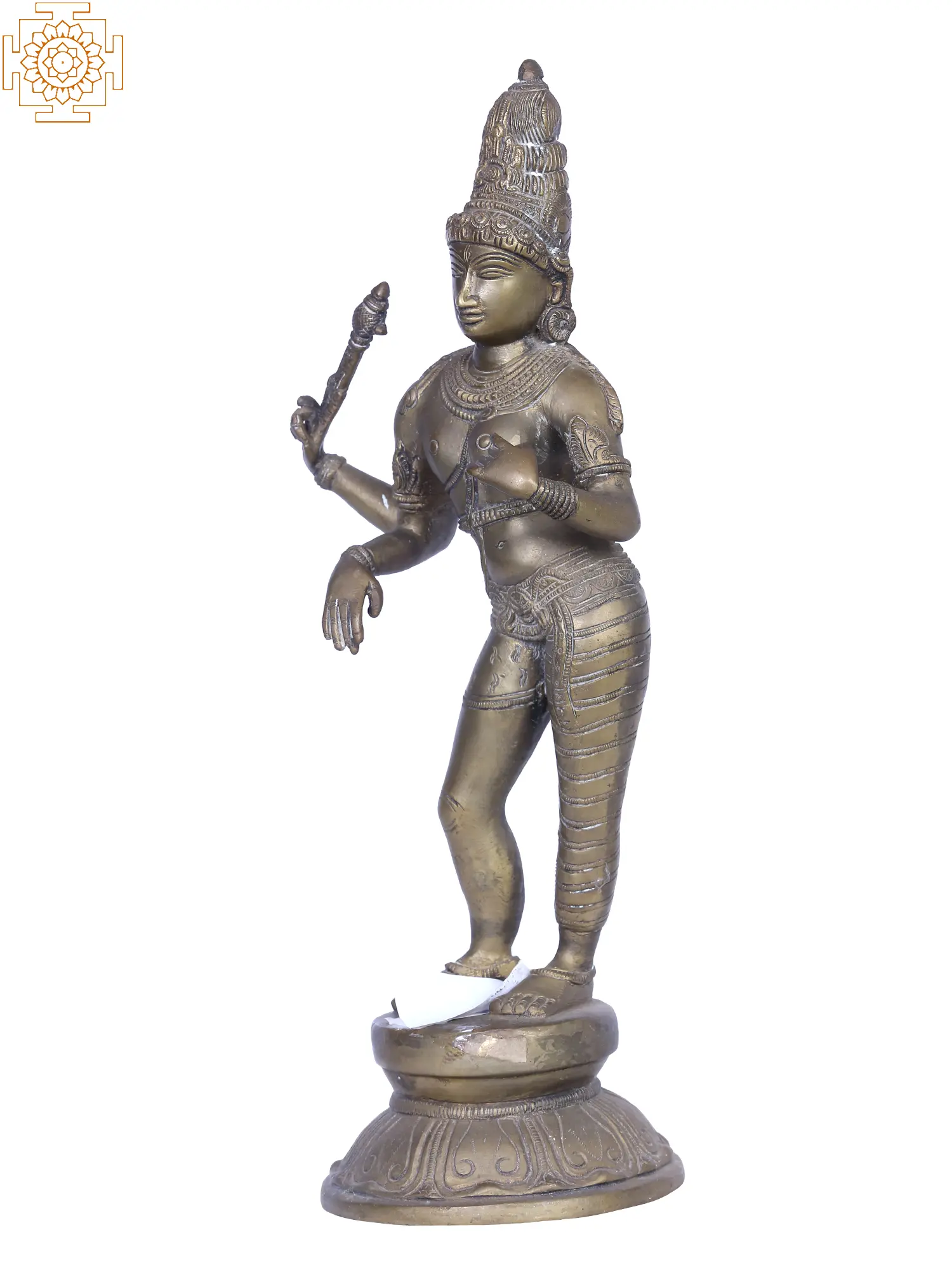 Ardhanarishvara, “the half-female lord”, embodies the divine synthesis of masculine and feminine energies within a singular, harmonious form. In this ethereal embodiment, the right half dons the majesty of “Lord Shiva”, while the left, a sublime expression of “Goddess Parvati”. Bound together, they form a harmonious symphony, echoing the cosmic union of masculine and feminine energies. Adorned in regal splendour, A royal crown perches atop this androgynous deity, symbolising an inseparable union transcending gender boundaries. In one hand, a “goad” commands cosmic order, while a benediction gesture radiates blessings. The receiving left hand beckons seekers into the profound mystery, encapsulating the eternal dance of creation and dissolution in a captivating, divine choreography.