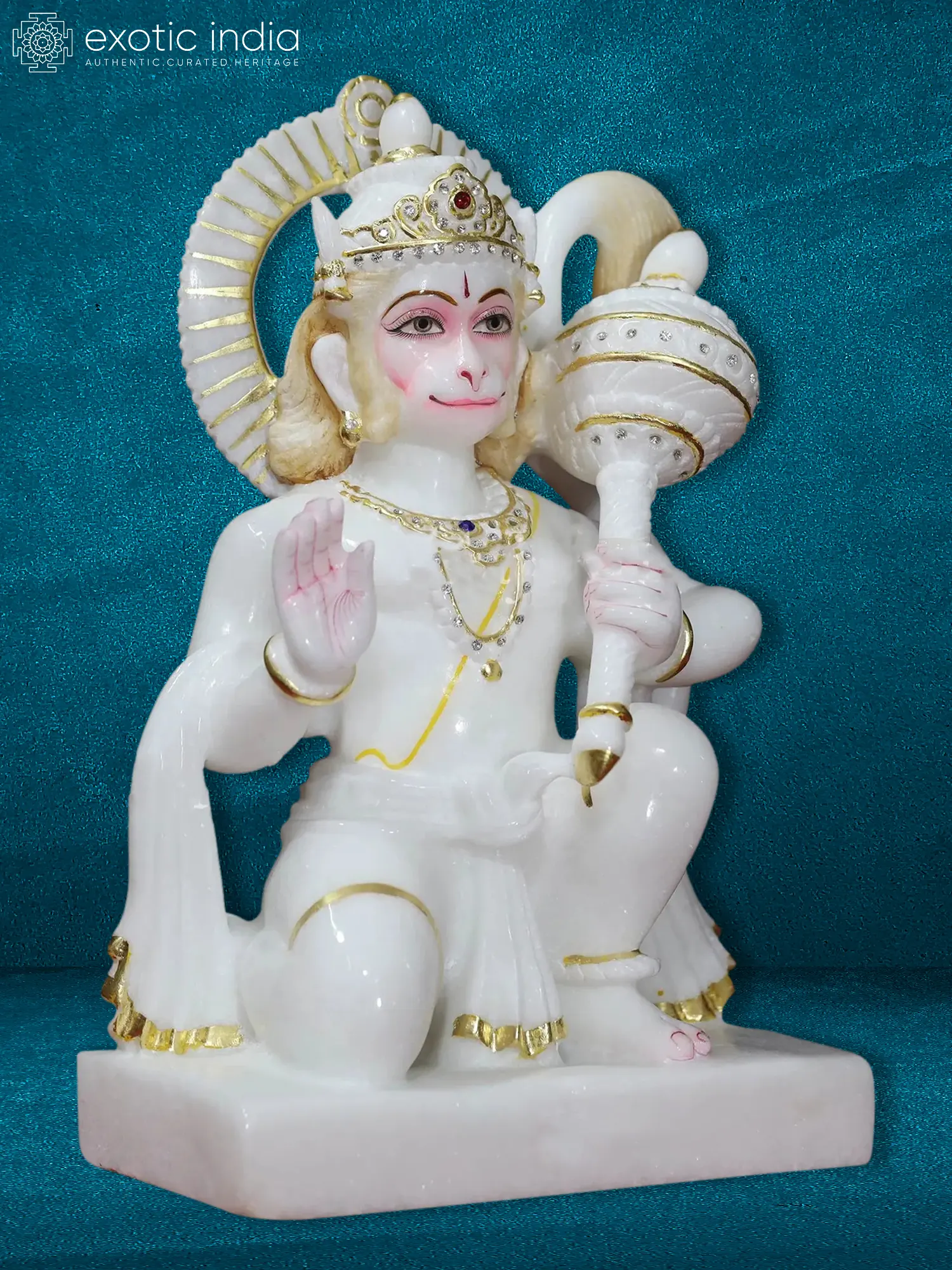 24"Ashirwad Position Hanuman With Gada | White Makrana Marble Statue
