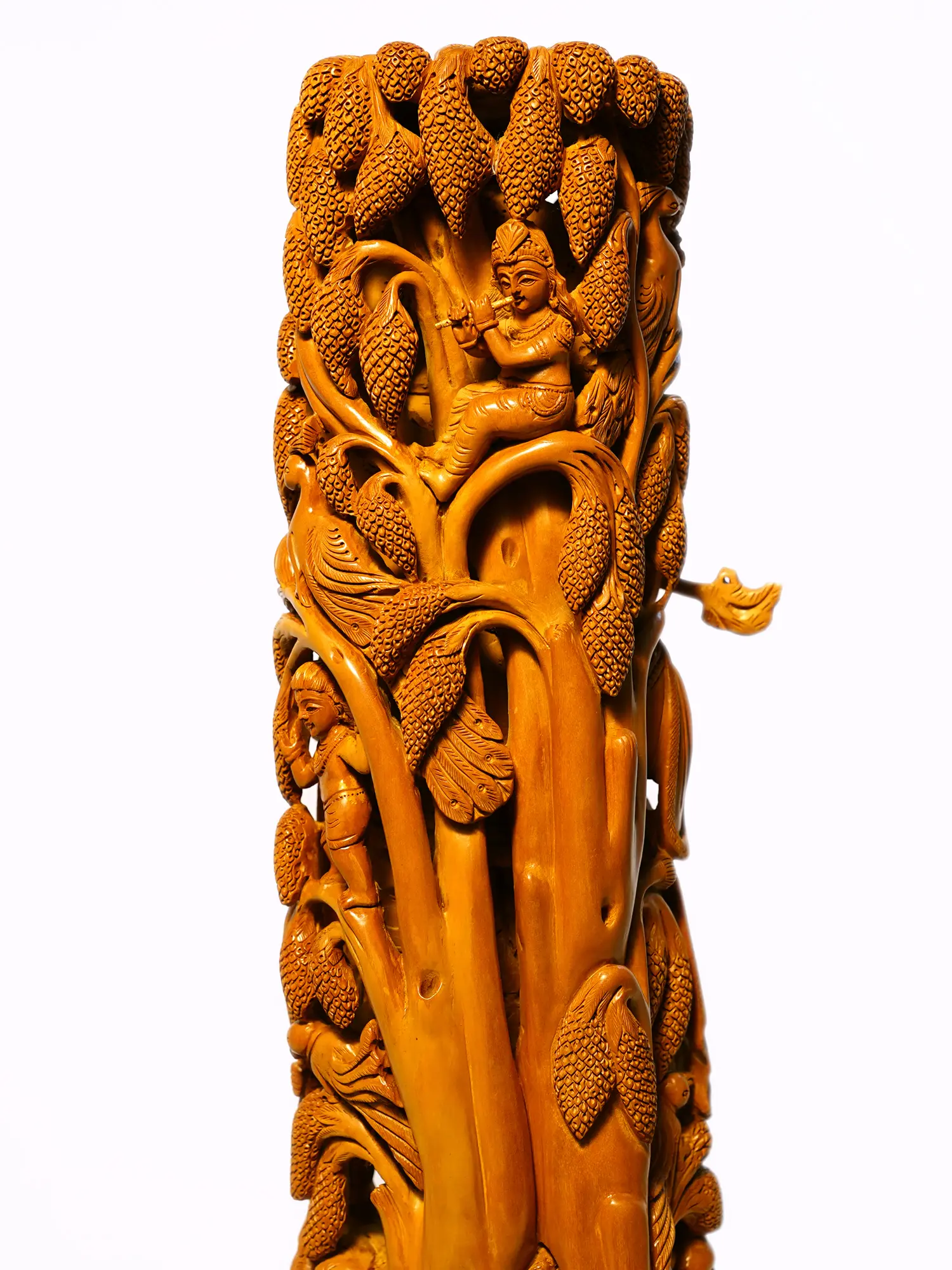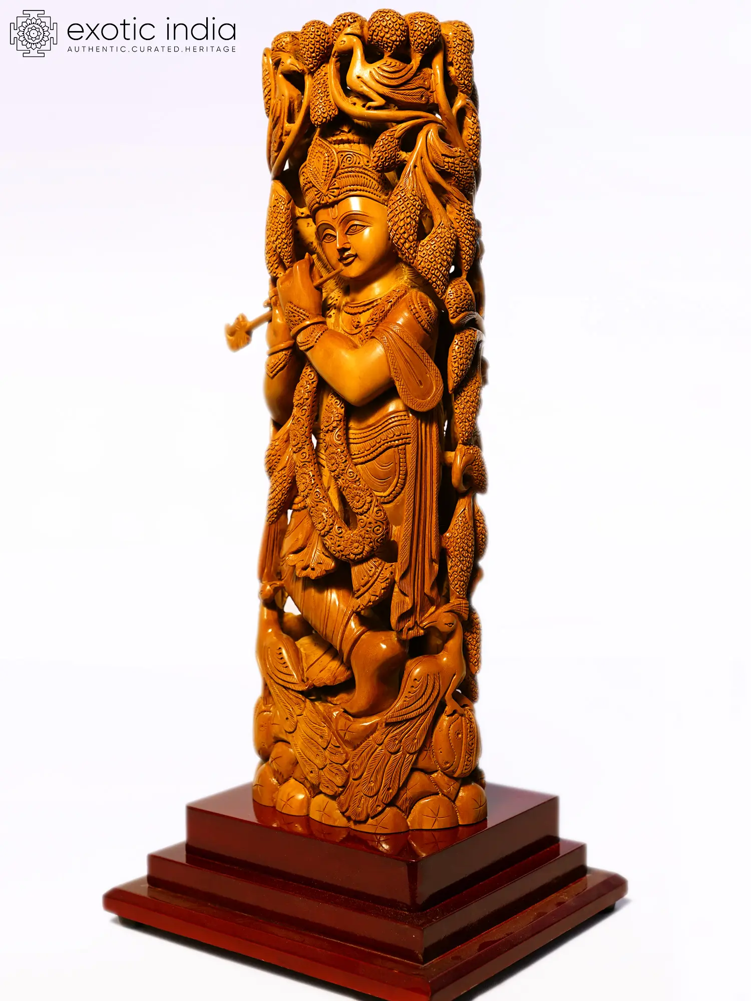 79" Super Large Murli Krishna Idol Adorned with Long Scarf | Handmade Brass Statue