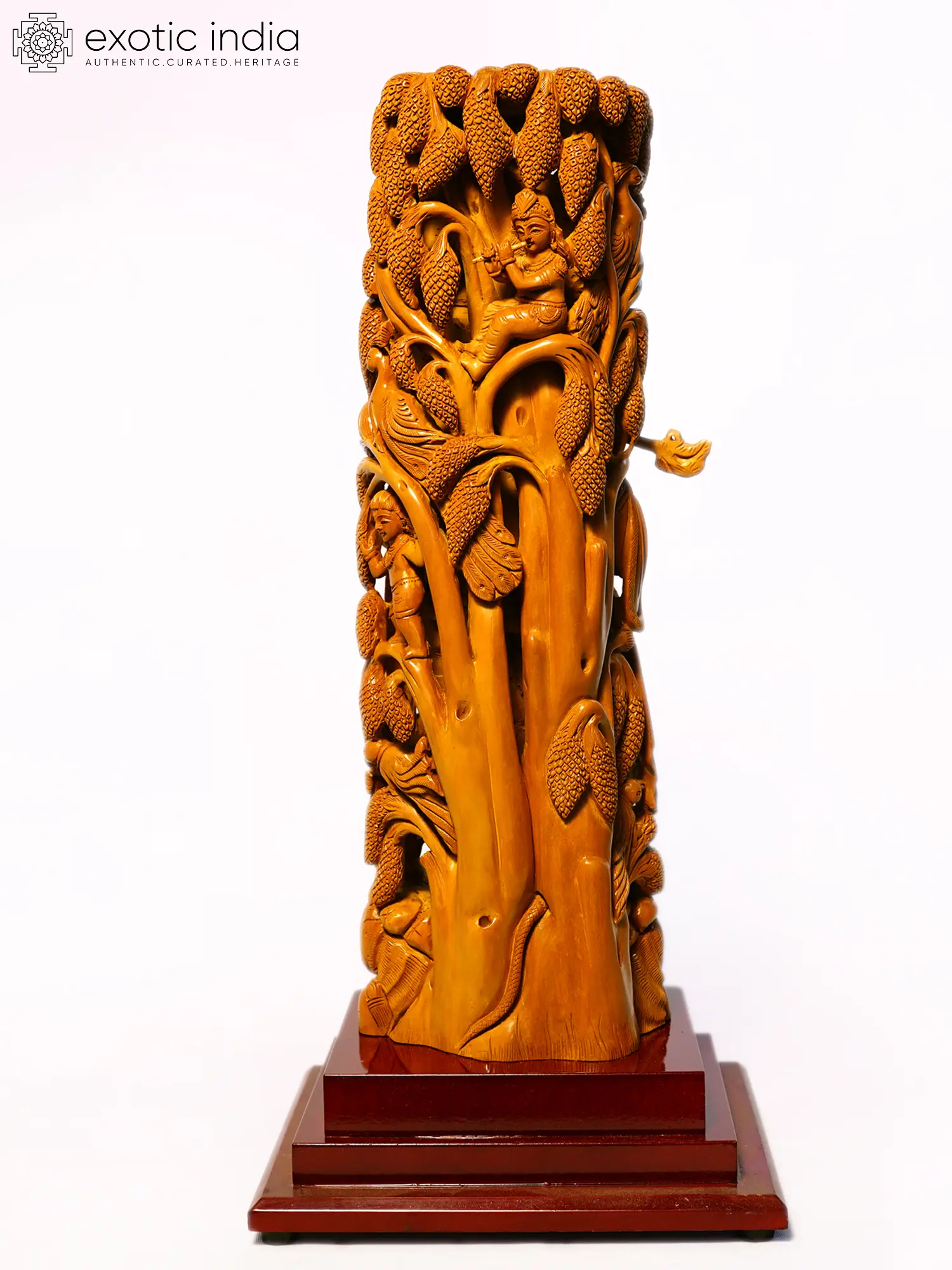 3" Small Statue Of Fluting Krishna With Beautiful Carving