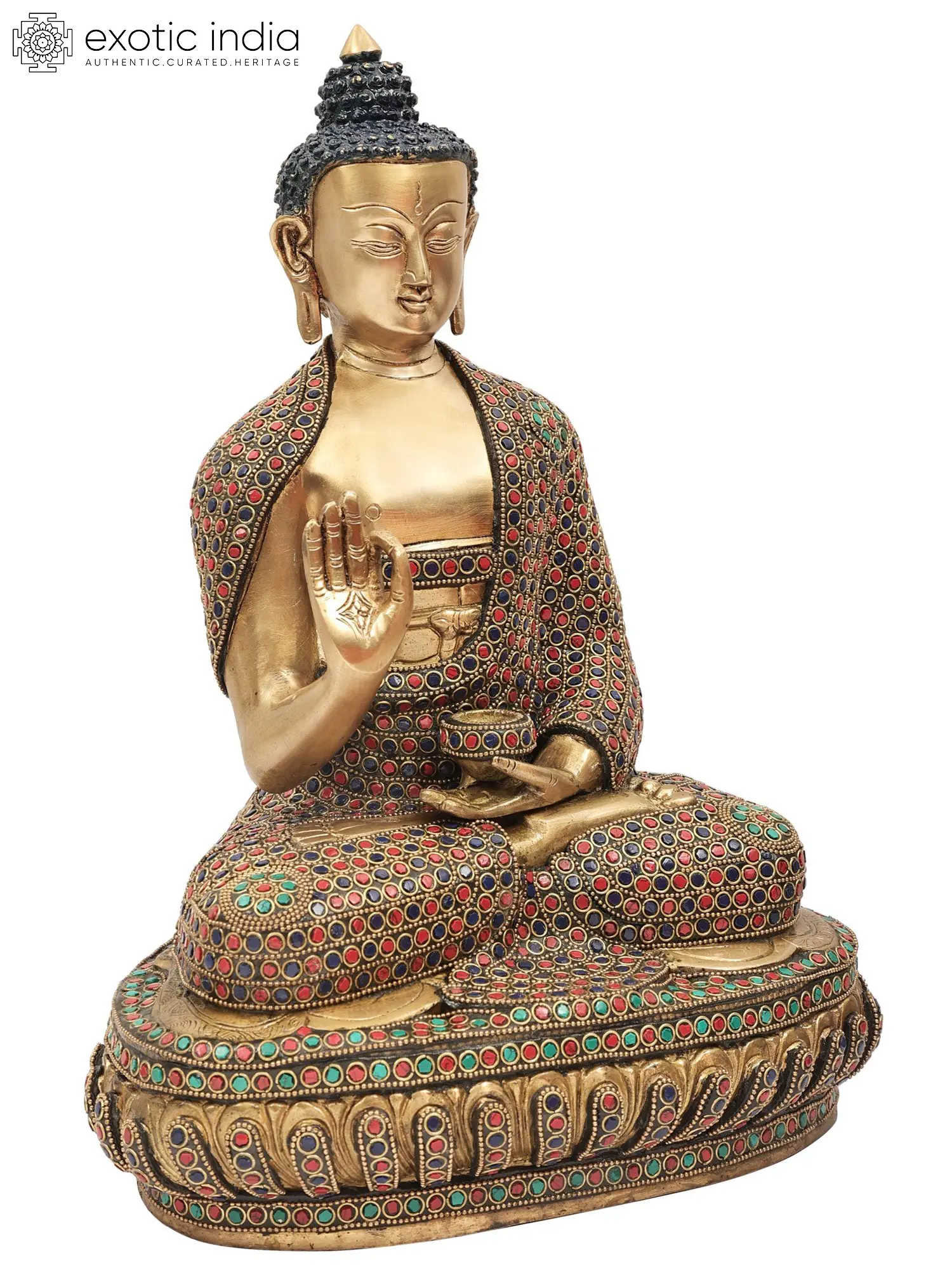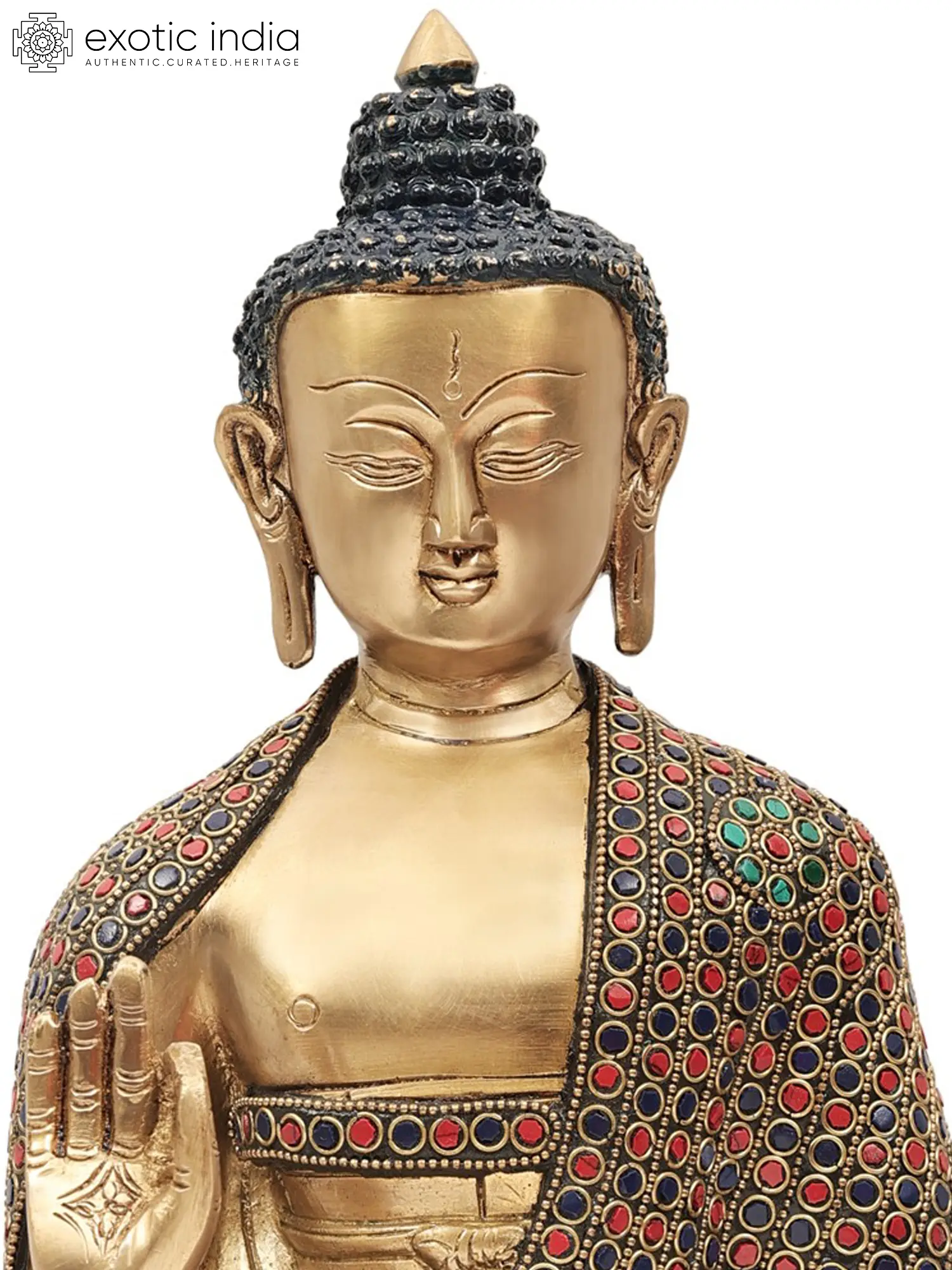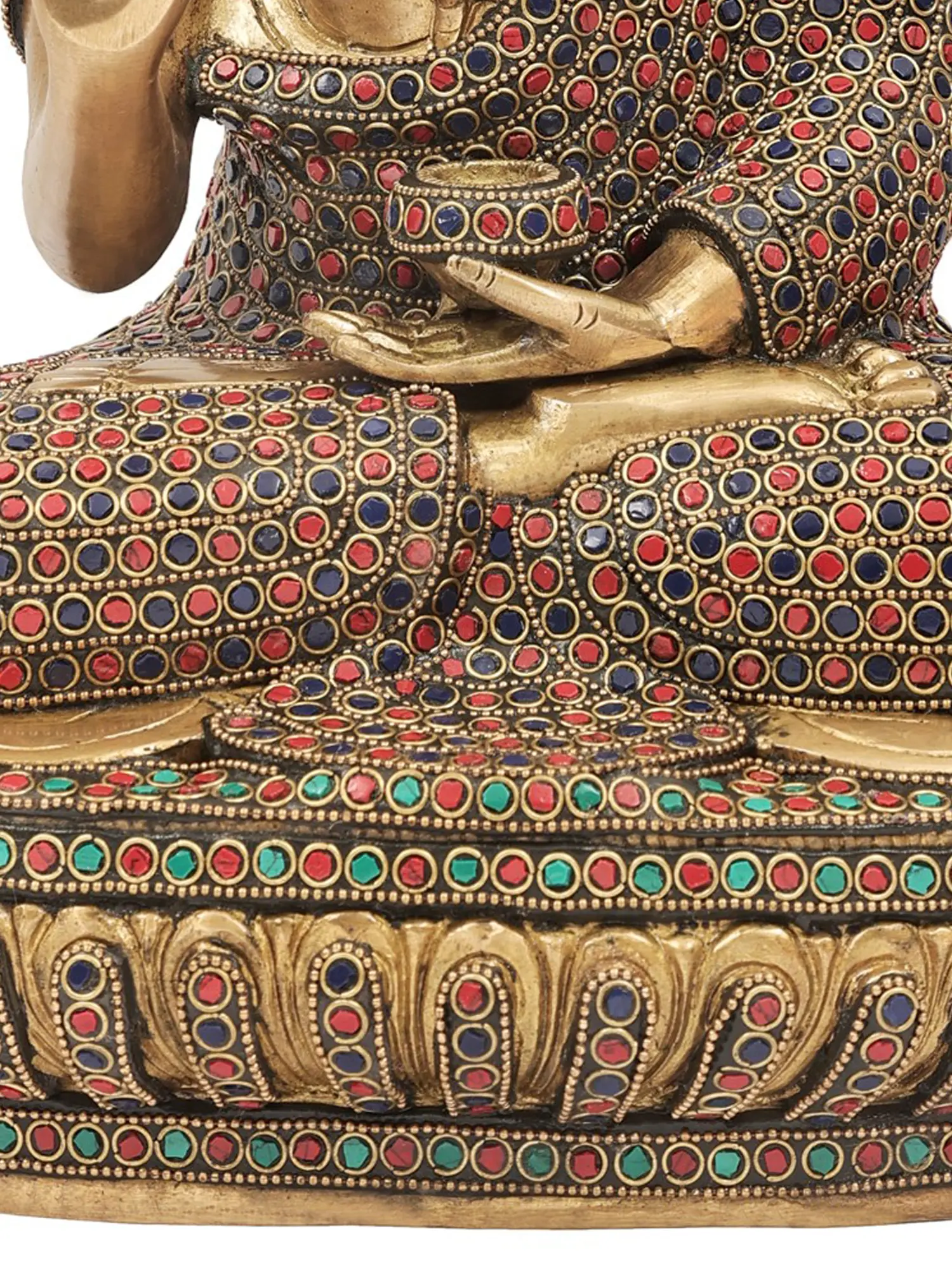 15" Blessing Lord Buddha With Colorful Inlay Work In Brass | Handmade | Made In India