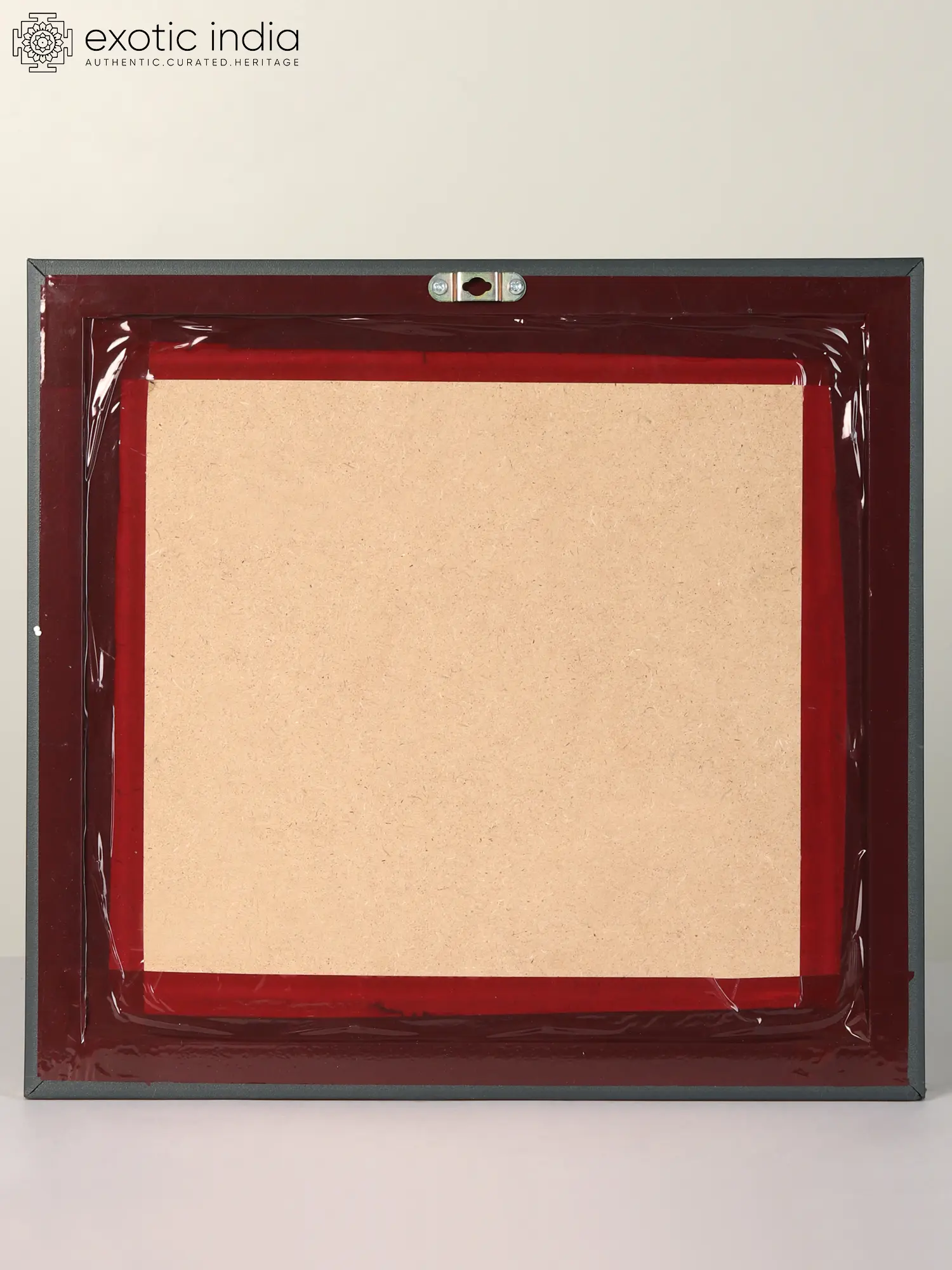 This Brass Lakshmi Narayana Idol in Wooden Framed exemplifies the allure of minimalistic elegance. The brass statue of Lakshmi Narayan, placed on a regal brown dotted fabric, radiates simplicity and grace. This masterpiece is elevated by a white plain cloth framed structure, highlighting a harmonious blend of brown, white, and wood tones.