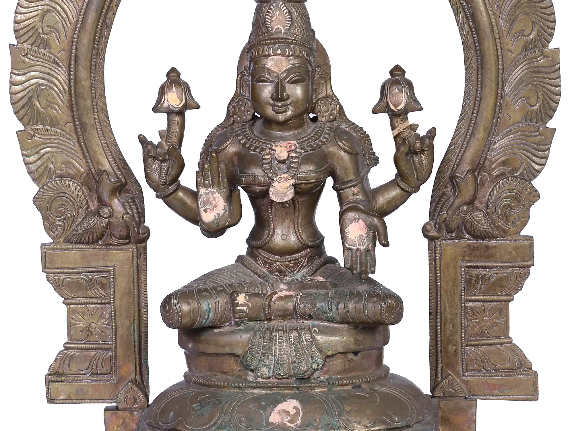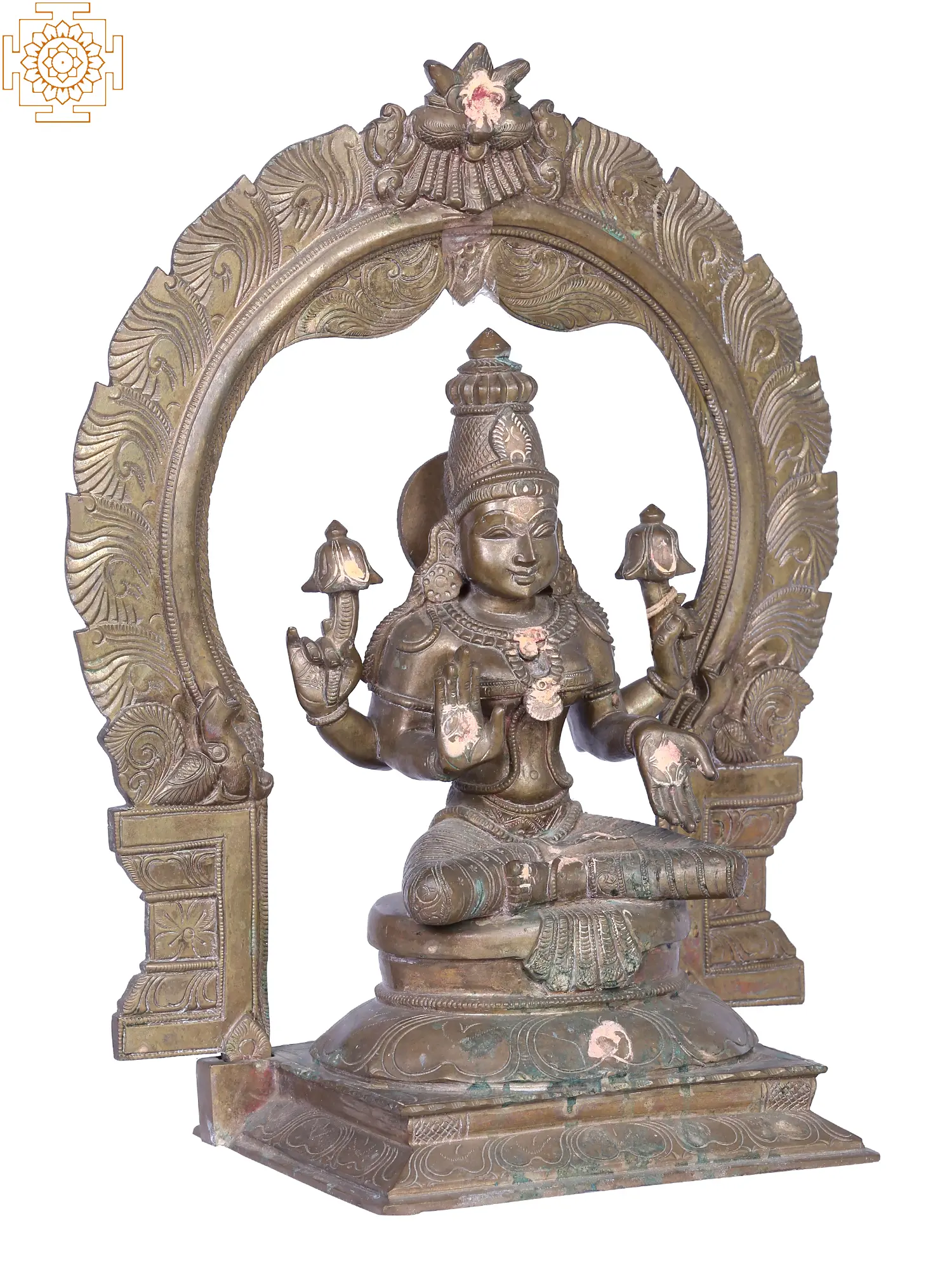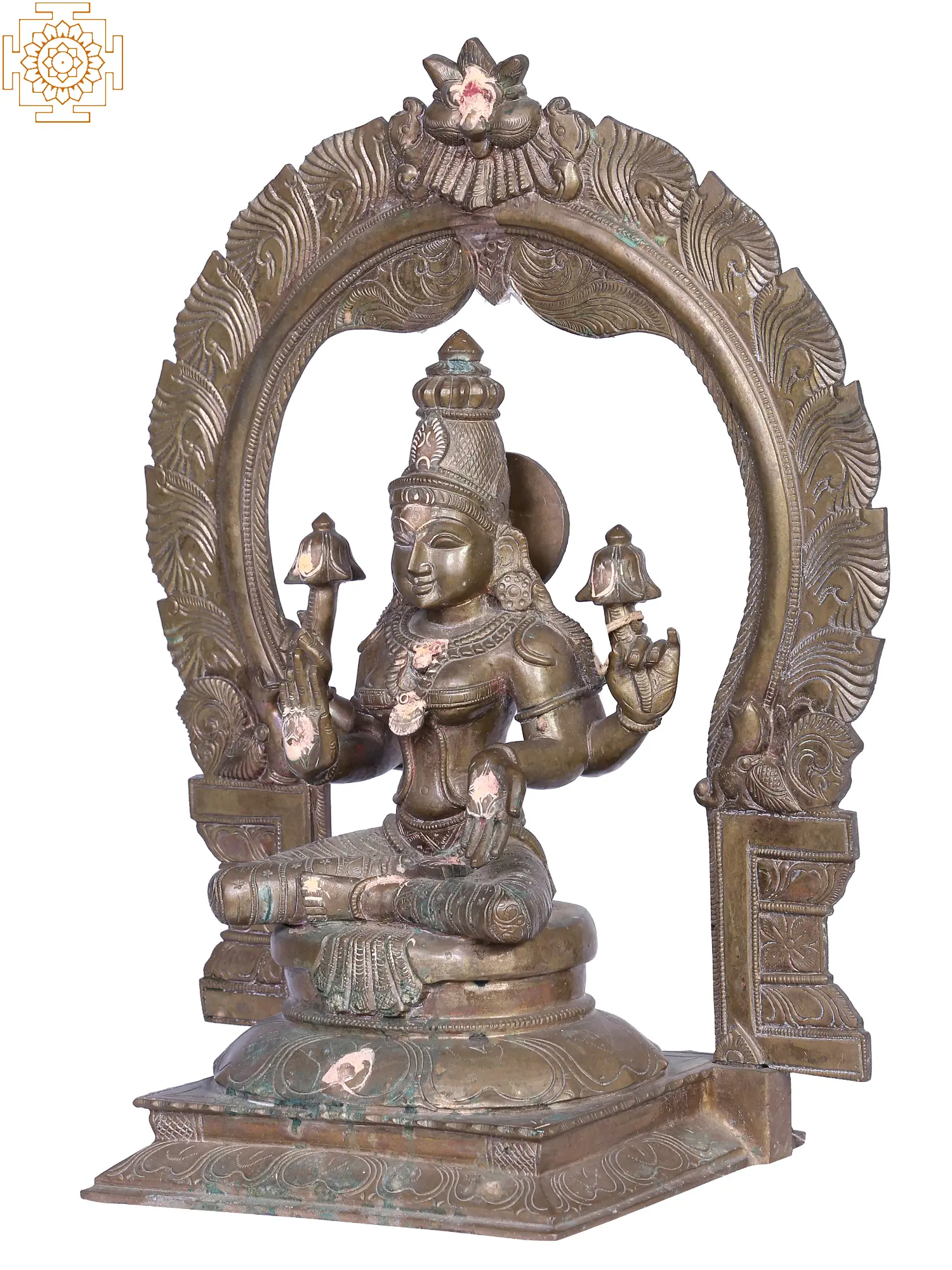 13" Chatubhujadharini Devi Lakshmi Poised Within A Network of Vines | South India Bronze Statue