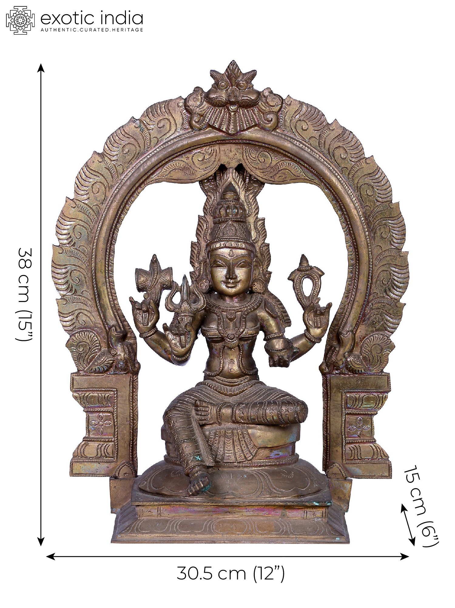 15" Bronze Goddess Mariamman (Durga) Statue with Kirtimukha | Madhuchista Vidhana (Lost-Wax) | Panchaloha Bronze from Swamimalai