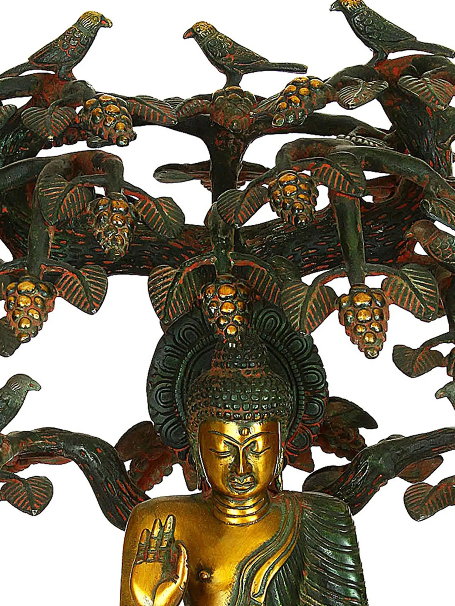 15" Buddha Under Bodhi Tree In Brass | Handmade | Made In India