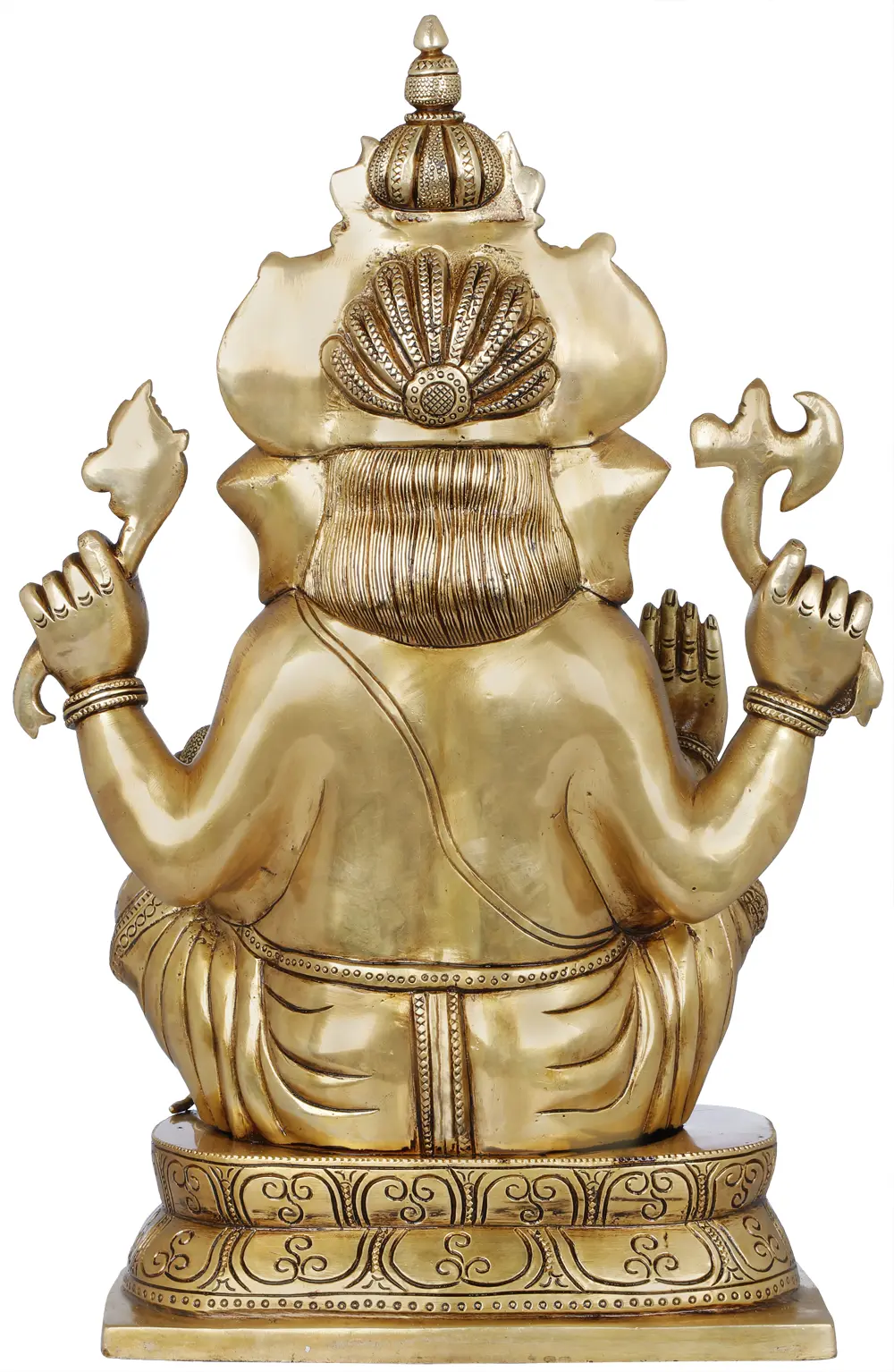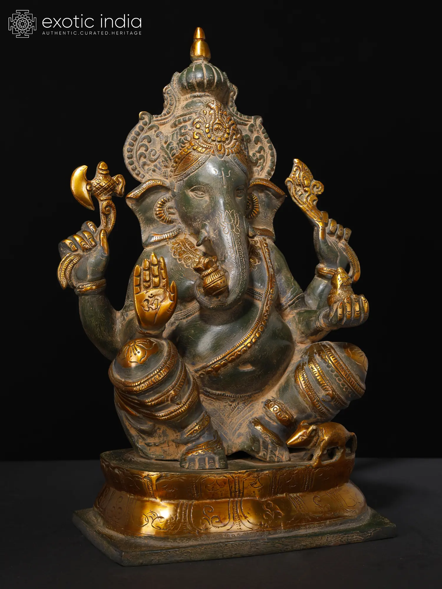 15" Chaturbhuja Ashirwad Ganesha Wearing a Majestic Crown In Brass | Handmade | Made In India
