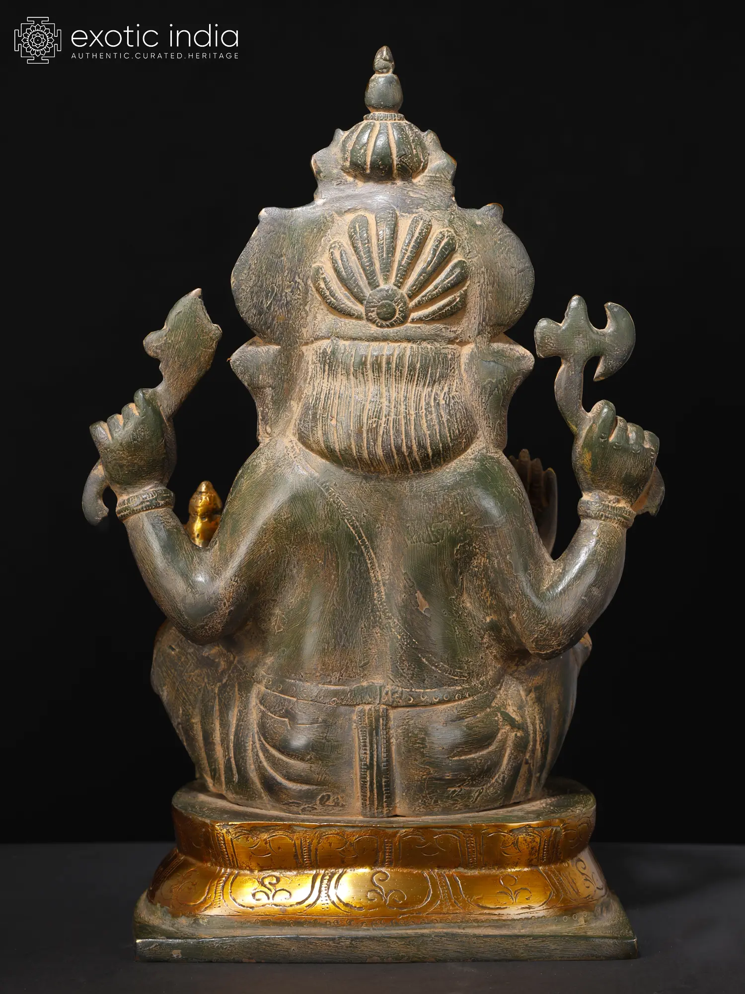 This statue is a testament to the enduring skill of Indian artisans. The rich brass, with its subtle patina, is a tribute to the traditional methods employed in its creation. Each curve, each intricate detail, is hand-carved, showcasing the dedication and talent of the artist. The contrast between the dark green and gold accents enhances the statue’s visual appeal, adding depth and vibrancy. Its substantial size, 15.7 x 10.2 x 5.7 inches, makes it a truly commanding presence, whether displayed on a mantle, a shelf, or as a focal point in your meditation space. The statue’s base is meticulously detailed, enhancing its overall aesthetic appeal and adding a sense of completeness and stability. The weight of the statue reflects its quality and solid construction.
