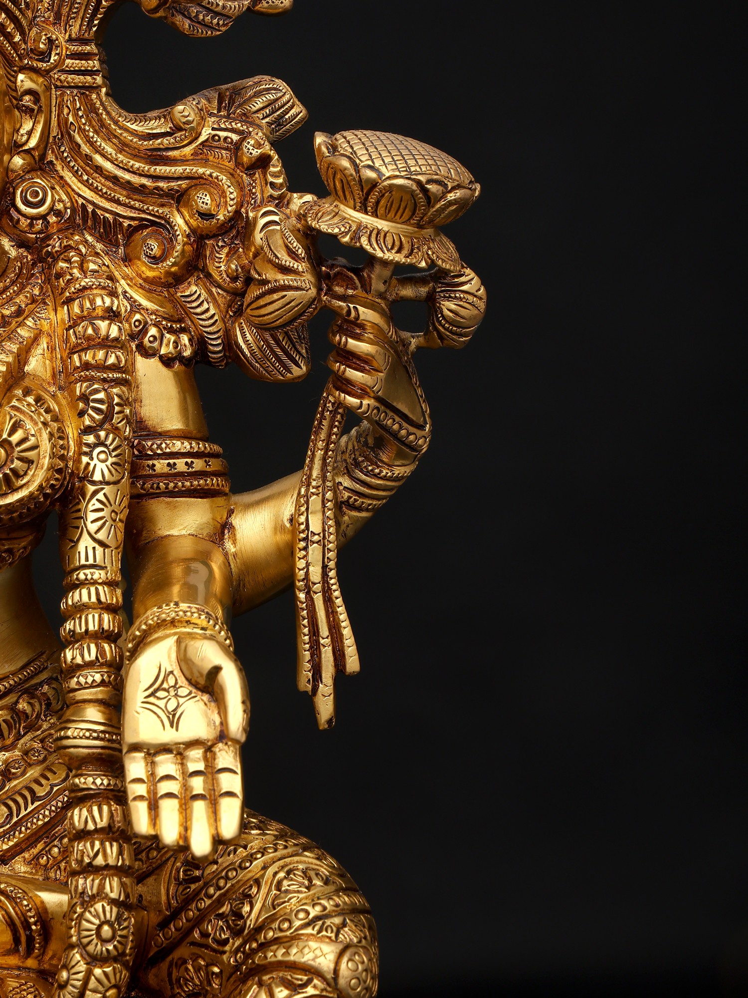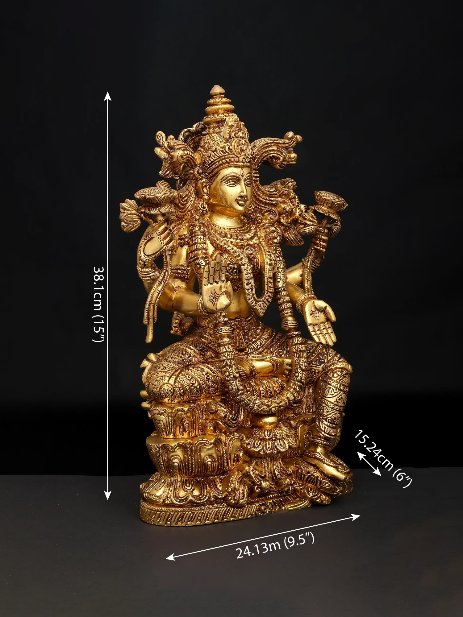 17" Superfine Lakshmi Ganesha Saraswati | Wood Framed Brass Sculptures | Wall Hanging